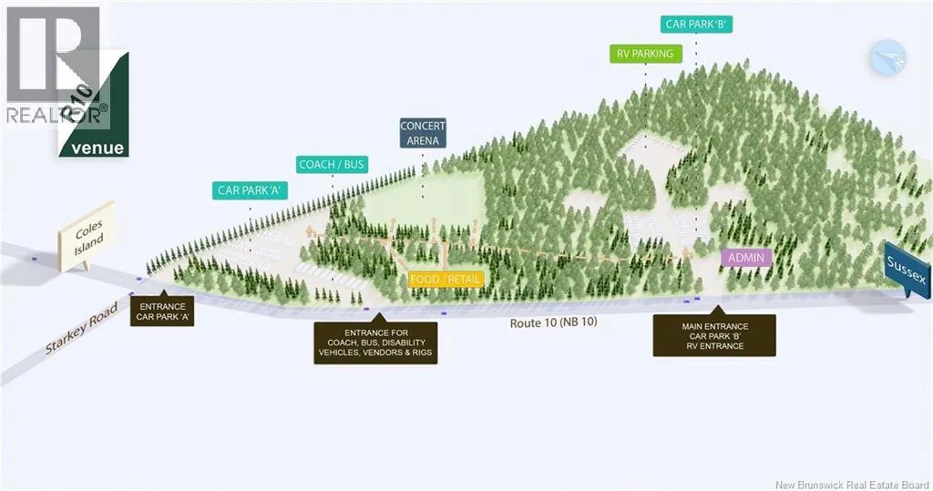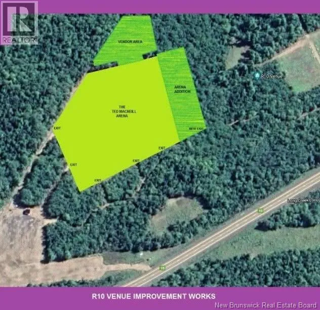 Continue on Route 10 until you reach 11761. Introducing R10 Venue a turn-key commercial event property set in the serene forests of Long Creek.Purpose-built for high-capacity,multi-format events,R10 is fully permitted for 35,000 attendees in its main concert arena,with multiple entry and exit points for safe crowd flow.Surrounded by nature,the site offers exceptional acoustics likened to Glastonbury.Four additional arenas and an Artisan Village support smaller performances,festivals,and markets.The venue includes a 1,000amp per phase,3-phase power supply with full distribution and backstage setup, permanent access roads for buses and rigs, two administration outbuildings,4+ acres of parking,and designated camping and RV areas for glamping or long stays.R10 has undergone extensive infrastructure,including land clearing(while preserving natural forest character),trail and road engineering,utility installation,and safety access planning.The venue has hosted major acts such as Blackberry Smoke,Easton Corbin,and Chris Lane.Strategically located with road frontage and central access to all major New Brunswick cities.The property is suitable but not limited too: music or cultural festivals,corporate events,weddings,sporting competitions,and hospitality ventures like eco-resorts or hotels,with development potential for residential or mixed-use expansion.Whether youre seeking an established concert venue,a development opportunity,or a high-capacity tourism/residential destination, R10 delivers the foundation and the future. (id:27476)