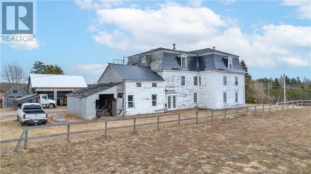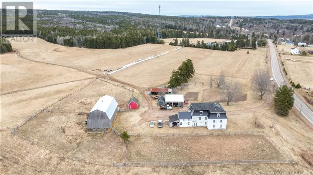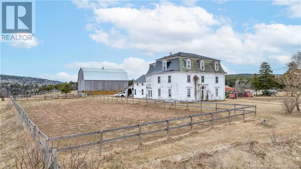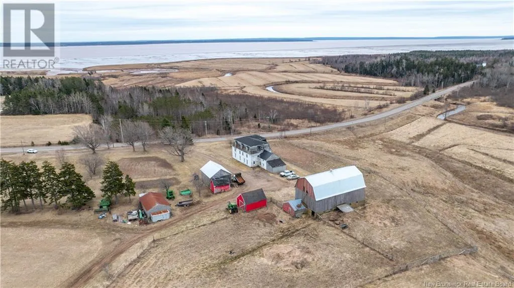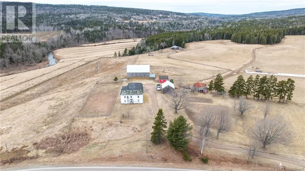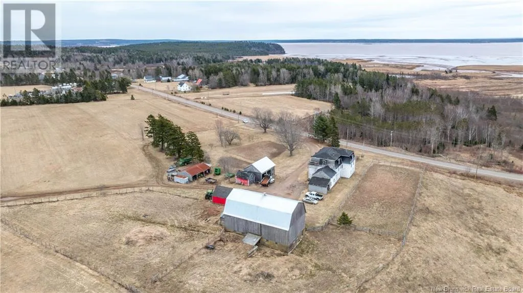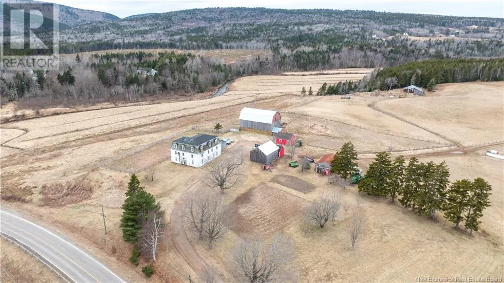 This property is unique and full of potential! Located on Route 114 halfway between Fundy Park and Moncton, it offers amazing views of both the Fundy coast and the mountains behind it. Only 5 minutes from Hopewell Rocks and 25 minutes to Riverview, this property could be used as a multi-family homestead, a tourist destination, income property or more! The large barn has been used for horses and still has straight and box stalls, ready for use. The hayloft holds over 6,000 bales and has a new roof. There are 2 riding rings, one sand and one grass jumping ring. There are several outbuildings as well for storage. The home-built in 1841-was once a grand stagecoach stop and family home but has fallen into major disrepair and needs either torn-down or an extensive, complete renovation. There is metal roofing already purchased and comes with the sale. The home has a whopping 12 bedrooms on 3 floors and several bathrooms and fireplaces; this would make the perfect vacation rental, bed and breakfast or eco-tourism escape with the proper investment. The land is a combination of fields, perfect for livestock, and mixed forest (including maple trees which can be tapped, along with fruit trees) and a tidal creek running through the entire property (there is land on both sides of the road). There are trails throughout the property for hiking, ATV-ing and more. Please see attached photos for all land plots included, there are approximately 388 acres, +/-. Your coastal country oasis awaits! (id:27476)