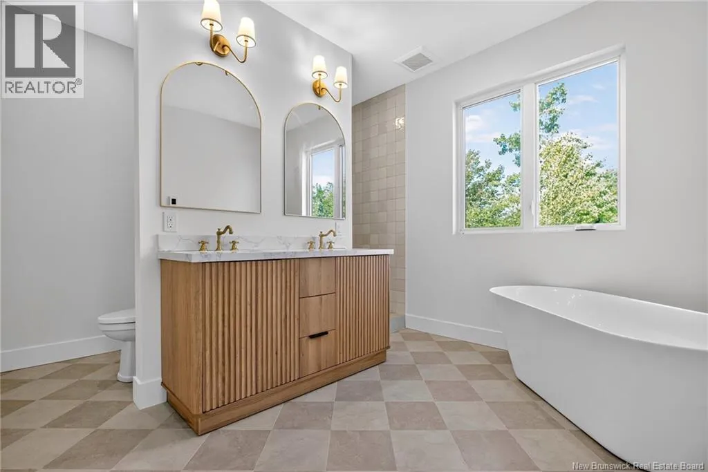 From Hillsborough road, turn on Niagara Road. then turn left on petersfield street. at the end of the street, turn right on Maefield street. the home will be on your right MORE PHOTOS COMING SOON - Executive Walk-Out Bungalow in White Birch Estates Just Minutes from Moncton & Riverview. Expected completion: Jan 2026 Engineered hardwood floors, quartz & porcelain countertops, tiled bathrooms, and a walk-out basement backing onto permanent greenspace, this executive bungalow combines luxury finishes with a serene natural setting. Enjoy direct access to ATV trails along with the convenience of a neighborhood childrens play park just steps away., All just 12 minutes from Moncton and 8 minutes from Riverview. Inside, the open-concept main living area features a vaulted ceiling reaching 13 feet, while 9-foot ceilings run throughout the rest of the home. A walk-in pantry, laundry room, and mudroom add everyday convenience, while oversized windows bring in abundant natural light. The home offers 3 spacious bedrooms and 2 full bathrooms, including a luxurious ensuite with heated floors, a soaker tub, and a tiled shower. Every surface has been carefully selected, with engineered hardwood throughout, tile in both bathrooms, and quartz countertops and Porcelain vanity tops. The unfinished walk-out basement provides endless possibilities for future living space, with direct access to a private, wooded backyard and permanent greenspace. Comfort is ensured year-round with two mini-split heat pumps, and this property comes turn-key with ALL KITCHEN APPLIANCES, washer, and dryer included. Please note: Taxes currently reflect the vacant lot. (id:27476)