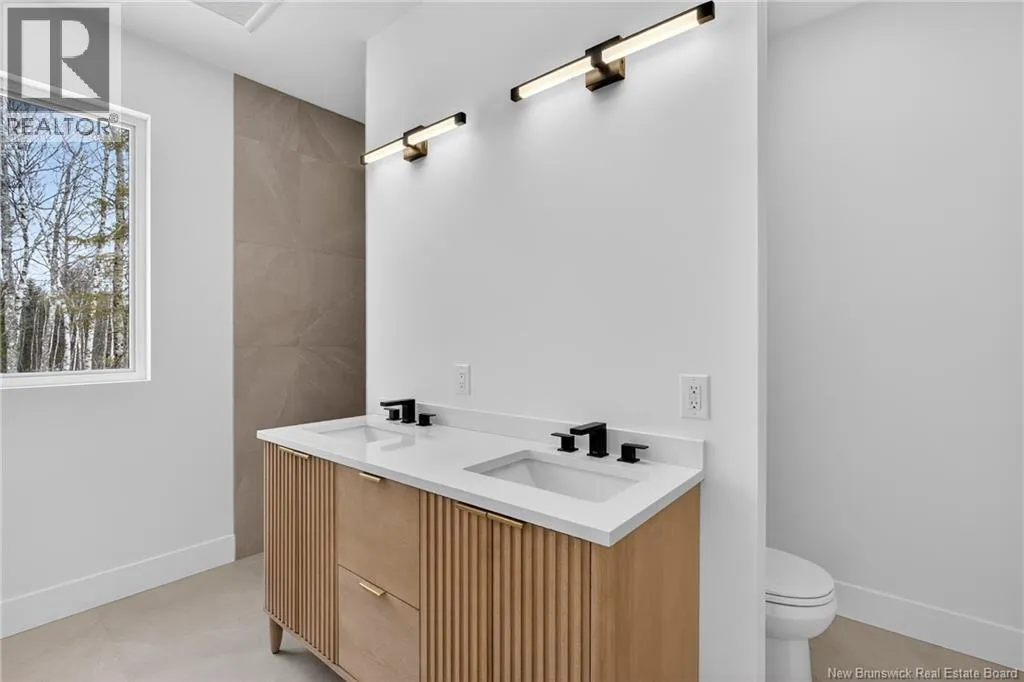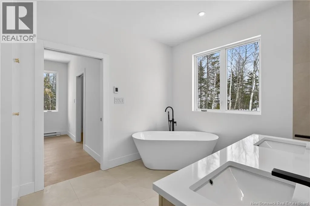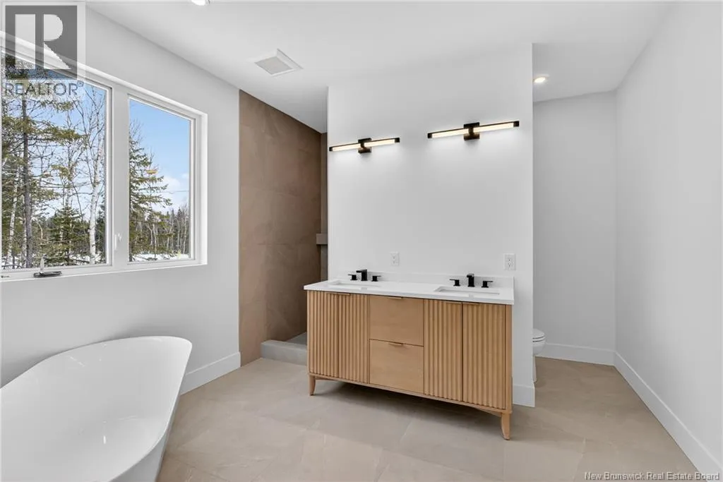 From Hillsborough road, turn on Niagara Road. then turn left on petersfield street. at the end of the street, turn right on Maefield street. the home will be on your right NOW MOVE-IN READY - Executive Walk-Out Bungalow in White Birch Estates Just Minutes from Moncton & Riverview. Expected completion: Jan 2026 Engineered hardwood floors, quartz & porcelain countertops, tiled bathrooms, and a walk-out basement backing onto permanent greenspace, this executive bungalow combines luxury finishes with a serene natural setting. Enjoy direct access to ATV trails along with the convenience of a neighborhood childrens play park just steps away., All just 12 minutes from Moncton and 8 minutes from Riverview. Inside, the open-concept main living area features a vaulted ceiling reaching 13 feet, while 9-foot ceilings run throughout the rest of the home. A walk-in pantry, laundry room, and mudroom add everyday convenience, while oversized windows bring in abundant natural light. The home offers 3 spacious bedrooms and 2 full bathrooms, including a luxurious ensuite with heated floors, a soaker tub, and a tiled shower. Every surface has been carefully selected, with engineered hardwood throughout, tile in both bathrooms, and quartz countertops and Porcelain vanity tops. The unfinished walk-out basement provides endless possibilities for future living space, with direct access to a private, wooded backyard and permanent greenspace. Comfort is ensured year-round with two mini-split heat pumps, and this property comes turn-key with ALL KITCHEN APPLIANCES, washer, and dryer included. Please note: Taxes currently reflect the vacant lot. (id:27476)