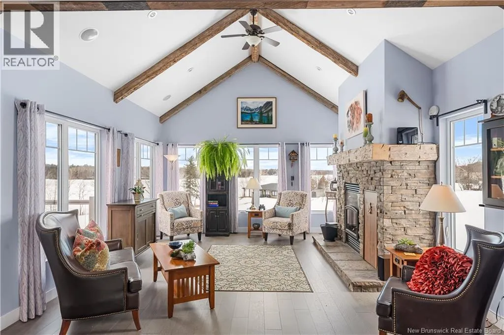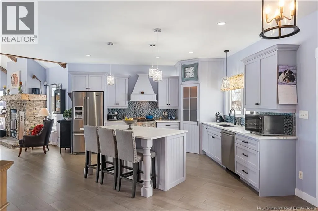From HWY 11 take exit 53 and follow 495 East toward Mundleville. . Follow Route 470 to Route 510 and continue on to Islanview Lane. Welcome to 20 Islandview with stunning views of the Richibucto River & breathtaking sunsets. Enjoy the waterfront patio & screened porch, perfect for relaxing & taking in the scenery. This 4 bedroom, 3 bathroom waterfront home with walk out basement & attached double garage with loft offers comfort, space, and quality throughout. The open concept main level features an L shaped kitchen with island that flows into the dining area and living room. The living room showcases cathedral ceilings, large windows maximizing natural light and river views, and a cozy fireplace complete with a WoodWaiter elevator that brings firewood directly from the wood room downstairs.The primary bedroom includes a walk in closet, full ensuite with soaker tub, and access to the deck and hot tub which could be negotiated to stay. A second bedroom, full bath, and convenient mudroom with laundry off the garage complete the main level. The fully finished walk out basement features two additional bedrooms, full bath, family room, utility and storage space, plus a clean and organized wood room and workshop area. Located halfway up the Richibucto River with a beautiful beach you can boat right up to. Enjoy boating, kayaking, cruising upriver, or heading downriver toward the dunes and sandy beaches. Recent updates include paint throughout, generator panel, flooring, countertops, backsplash, appliances, air exchanger, screened room glass panels, and chip sealed driveway. Efficient with central air heat pump. (id:27476)