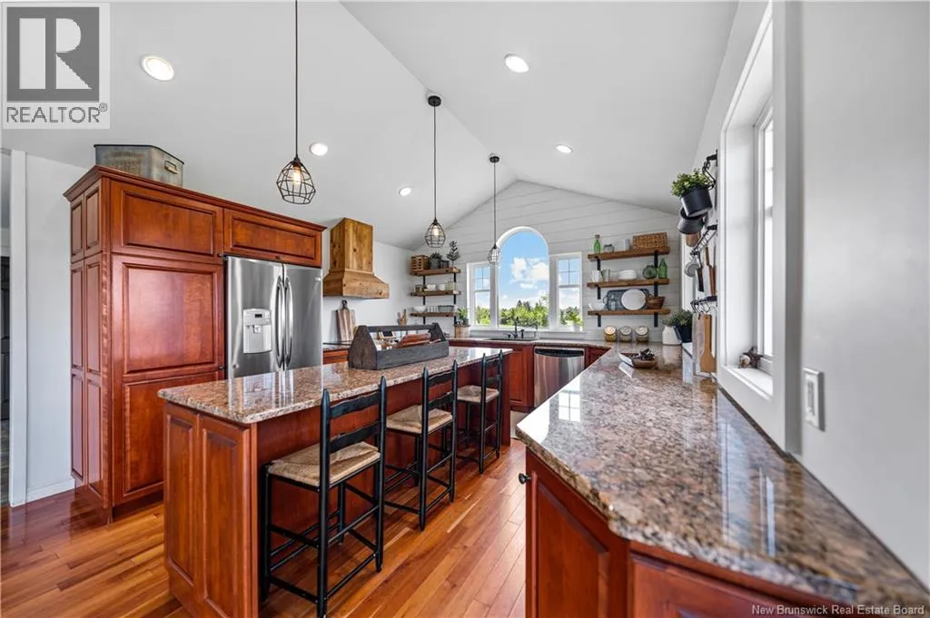 Off Highway 11, take exit 53 onto Route 134 towards Route 505. Turn left on Centennial Ave., then keep right on Route 470. Turn right onto Route 510 then a final right. Welcome to 8 Island View! Executive home on over 1.3 acres with water views and direct access to the Richibucto River. The main floor features a bright open-concept kitchen, dining, and living area with stunning water views from every window. Enjoy the large wraparound porch, perfect for entertaining. The main level also includes the primary bedroom with 5-piece ensuite and oversized walk-in closet, plus a 2-piece bath with laundry. The walkout basement offers a spacious family room with water views, 3 large bedrooms, a 4-piece bath with second laundry, separate entrance for guests or family, and plenty of storage. Additional highlights include an attached double garage (21.9 x 23), roof replaced 3 years ago, and extra parking for vehicles or recreational toys. Conveniently located just 7 minutes to Rexton, close to schools, churches, restaurants, and groceries. A must-see property book your viewing today! (id:27476)