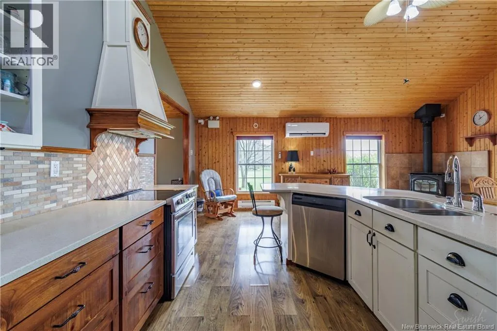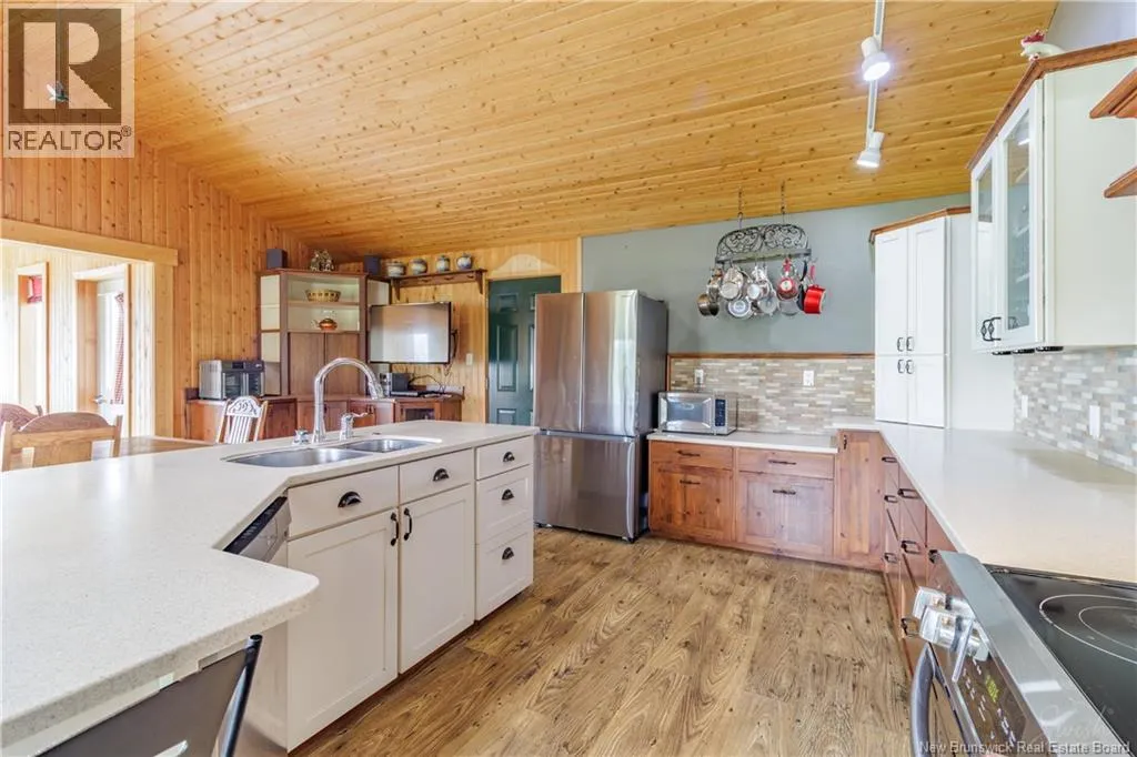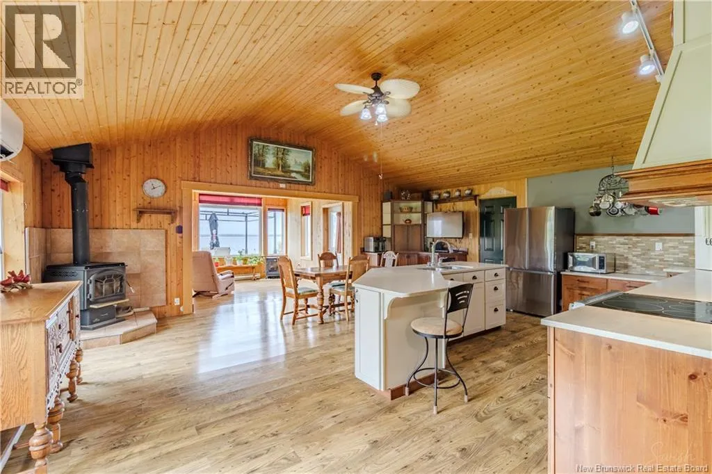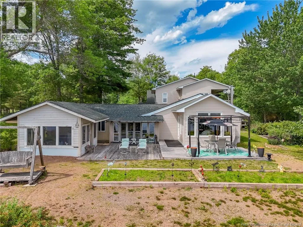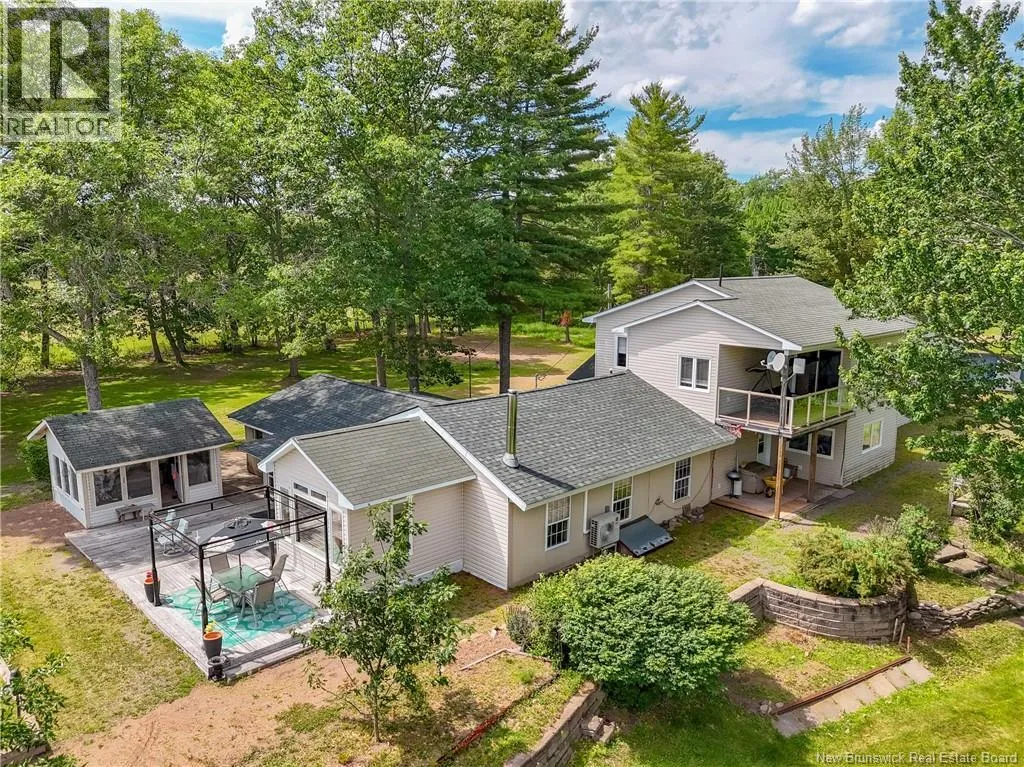 Old TCH to McGowans Corner. Turn left and go over the small bridges, take next right to Route 690 proceed to civic #870. Welcome to your dream retreat on the shores of beautiful Maquapit Lake! This lovingly maintained one owner home offers 250 ft of sandy beachfront and sits on a stunning five-acre lot, providing total privacy and tranquility. Step inside to an open concept kitchen, dining and sunroom, featuring soaring vaulted cedar ceilings, a cozy woodstove and a ductless heat pump all with breathtaking lake views. Main floor also has a large second bedroom, full bath with soaker tub and an attached laundry room. Good sized living room leads to double car garage, loft and storage area. Upstairs to the spacious primary suite, which is a true sanctuary with a large walk-in closet, private en-suite with jet tub overlooking the water, and patio doors that open to a cozy sundeck, perfect for morning coffee or evening naps. The insulated, heated and wired double car garage includes a workshop with tons of storage and shelving. A bonus finished loft above the garage is ideal for a studio, home office or guest suite. With multiple heating options, including a ducted and ductless heat pump, woodstove and a pellet stove in the garage you will stay warm and cozy all year long. This home also features an attached small cottage great for overnight guests, 3 storage units, and an awesome enclosed gazebo for summer parties. Only 30 minutes to Fredericton, and all of your amenities. This boaters paradise has something for everybody! (id:27476)