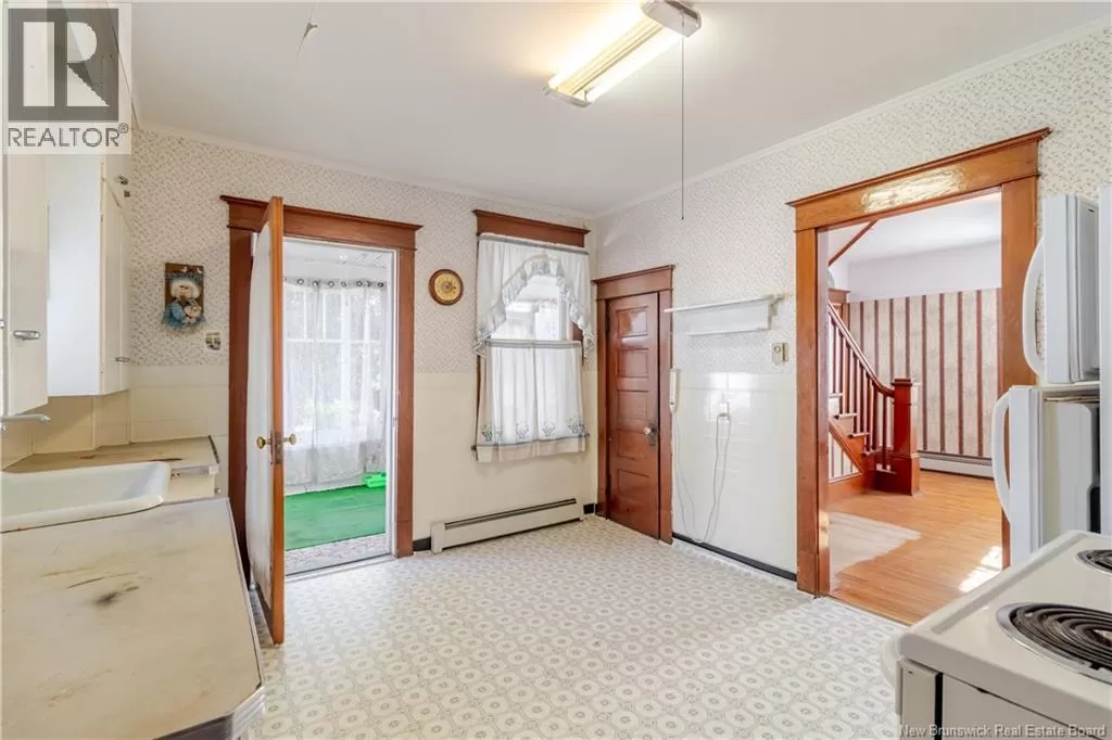 Follow Route 4 straight through town. Turn slightly towards the Nursing Home at the fork, civic #35 is on the right. Welcome to this charming two-storey home featuring a spacious foyer with a hardwood staircase. The main floor offers a bright living room, an eat-in kitchen, and a versatile dining room currently used as a laundry area but easily converted back. The back porch adds extra living space or storage. Upstairs, youll find three generous bedrooms and a large bathroom. Outside, a paved driveway leads to a double oversized garage, perfect for cards, toys, or face for hobbies, etc. all on a nice, level lot perfect for families or those who love space inside and out! Property is being sold ""As Is, Where Is"", and there is no RPDS (as seller has never lived on the property). (id:27476)