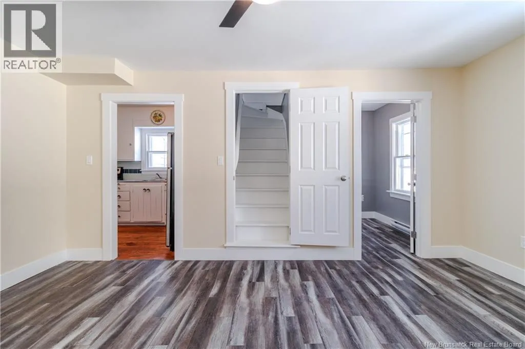 Saunders Street (between Pine St + Cherry St) to civic #67 Welcome to 67 Saunders Road in the village of McAdam. A newly renovated, affordable home, located in close proximity to all amenities has had the main floor almost completely redone to the tune of approximately $87,500! New wiring, plumbing, insulation, drywall and flooring. New main floor bathroom fixtures. The front door and 3-season sunporch leads to a wide hallway where you will step into the sunny living room with a cozy electric corner fireplace. From there, you will find a bedroom on the opposite side of the hallway, the full bathroom, a dining room, separate bright and spacious laundry, a second bedroom and a rear-facing kitchen with access to the backyard from the rear mudroom. The basement access is tucked into the corner of the kitchen and the stairway to the second floor is via a door in the dining room. Upstairs you will find two rooms and a new half bath with new flooring throughout. The entire house has been freshly painted and cleaned and is move-in ready! There is also a new air exchanger. The back deck is in need of repairs, which is reflected in the price. Close to the downtown area and only an hour to Fredericton or 35 minutes to St. Stephen. (id:27476)