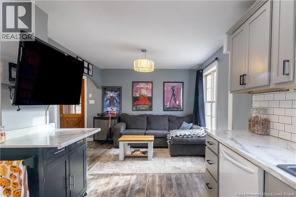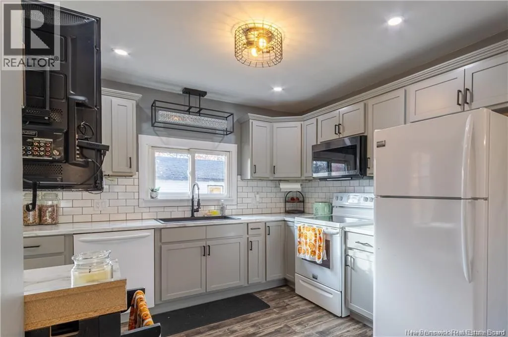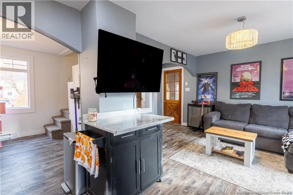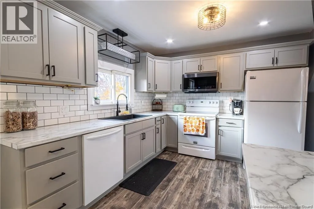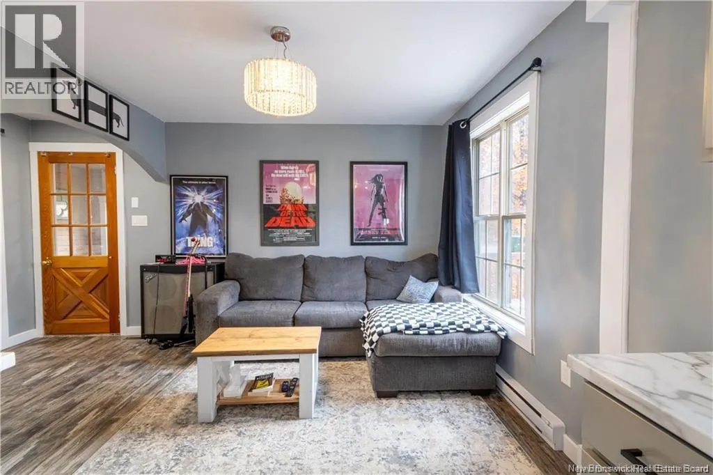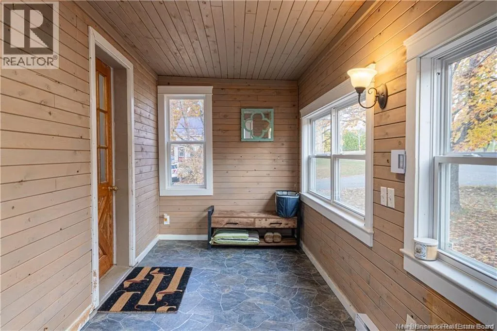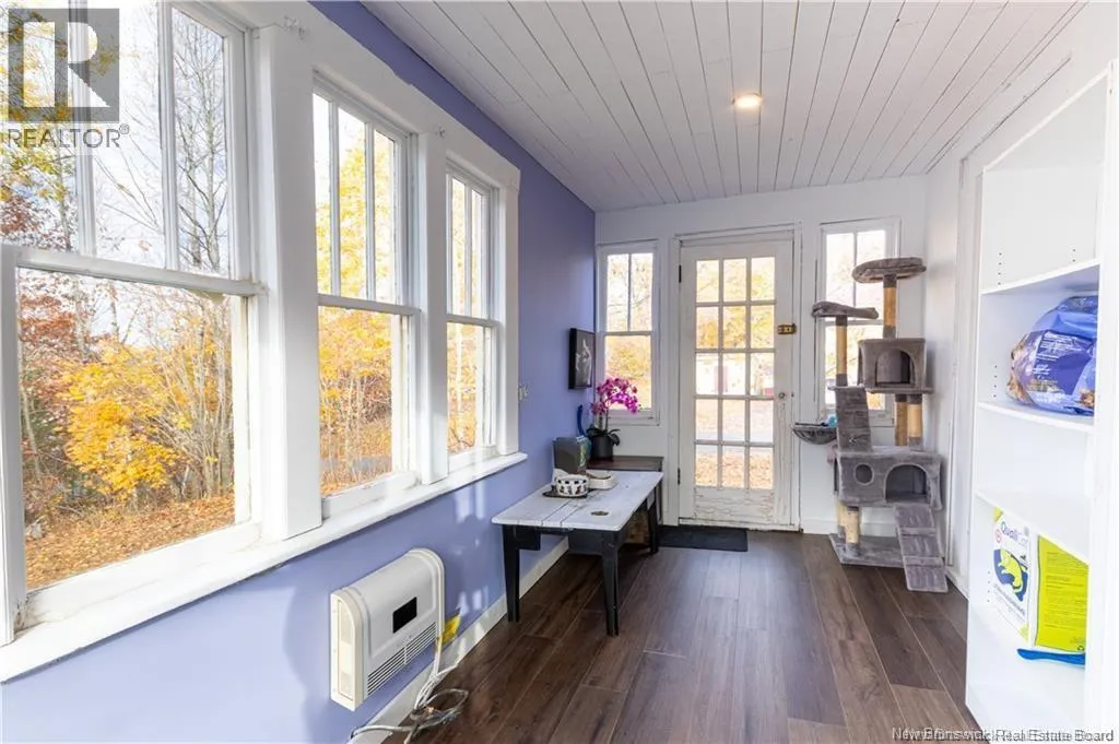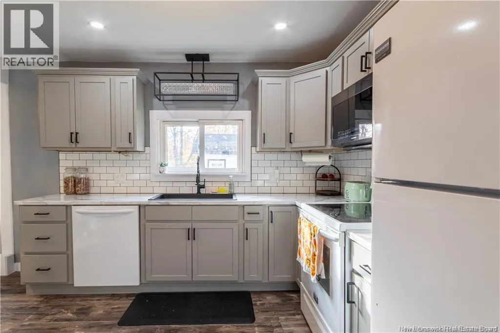 Take the trans canada hwy towards Harvey This adorable 2-bedroom home has been beautifully renovated from top to bottom, offering the perfect blend of modern updates and small-town charm. Recent upgrades include all new plumbing, electrical, flooring, windows, roof, freshly painted exterior and a brand-new kitchen, giving this home a fresh, move-in-ready feel. Step through the bright, heated front porch into a cozy living room and inviting eat-in kitchen. The main level also features a convenient laundry area with half bath and access to the reinforced sunroom, which provides extra living space plus usable storage underneath - a rare and practical bonus! Upstairs you'll find two comfortable bedrooms and a refreshed full bathroom with a separate toilet area for added convenience. Outside, the detached garage offers space for a car, ATV's or tools, and makes a perfect gathering spot with the cozy wood stove in the garage! Sitting on an oversized corner lot close to all amenities, this home is turn-key, efficient, and full of character. Whether you're looking to downsize, buy your first home, or invest, this updated gem is ready to welcome you! (id:27476)