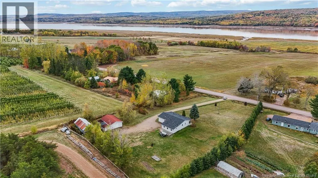 Take Amirault, turn on Dover Rd which turns into Principale, House is on the left. The drive to and from the house is a treat where you can enjoy the scenic drive along the river. This property is surrounded by apple orchards and beautiful views of the Peticodiac River. Inside is the large kitchen that is open to the living area. Off the Living area is a sitting area with windows to enjoy the view of the river. Continueing through the home is the separate laundry room with a sink, 2 bedrooms and the full bathroom. The front of the home features a covered veranda and an enclosed porch And outside you have the detached garage and a storage shed. If you want to enjoy an evening out you visit some local spots like Crooked Creek Distillery that is just a minute up the street or Crow and Vine. Contact your Realtor for me details or to schedule a viewing. (id:27476)