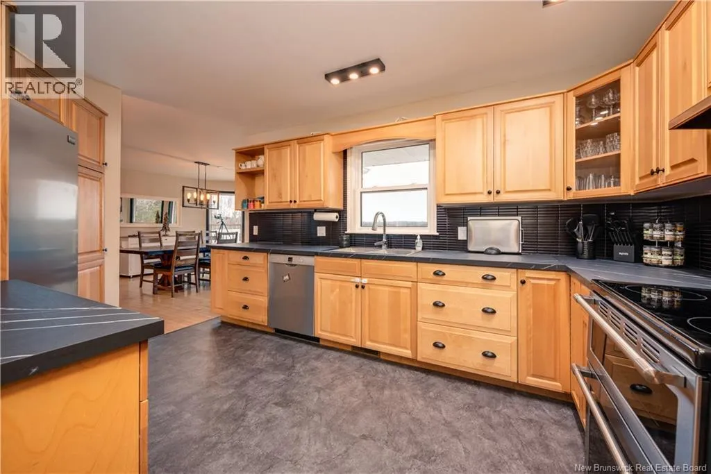 Heading towards Memramcook on Amirault turn right onto Du Portage just before the lake Are you looking to move up, to your next level of luxury? Check out this 2400 sq.ft. executive style bungalow with lake access on the outskirts of Dieppe sitting on a stunning property with amazing curb appeal. Improvements over the past few years include a chain link fence to create enclosed backyard, roofing on house and baby barns, a garage door and lift system, and a new heat pump. 2024 improvements include 20% light filtering retractable blinds in living room, luxury vinyl flooring, kitchen countertop, new interior and exterior lighting throughout, and main floor bathroom completely renovated, refinished deck, entrance platforms and stairs, installation of dedicated generator panel to provide heat and electricity during power outages, and a new water filtration system. Check out the bright and inviting open concept layout, with large windows offering breathtaking views to the countryside and of the lake. The main level offers 2 large bedrooms and a beautiful 5 piece bathroom. The large back deck offers a screen room. The basement is finished with a very large family room, another bedroom, a laundry room, a 3 pieces bathroom, two more rooms that can be used as an office, an exercise room, a library room or whatever you wish. As an added bonus you will find the loft or bedroom situated on top of the garage. Outside, the large 3.7 acres provides privacy and relaxing ambiance. Paved driveway, stone walkway. Contact me now for more information. (id:27476)