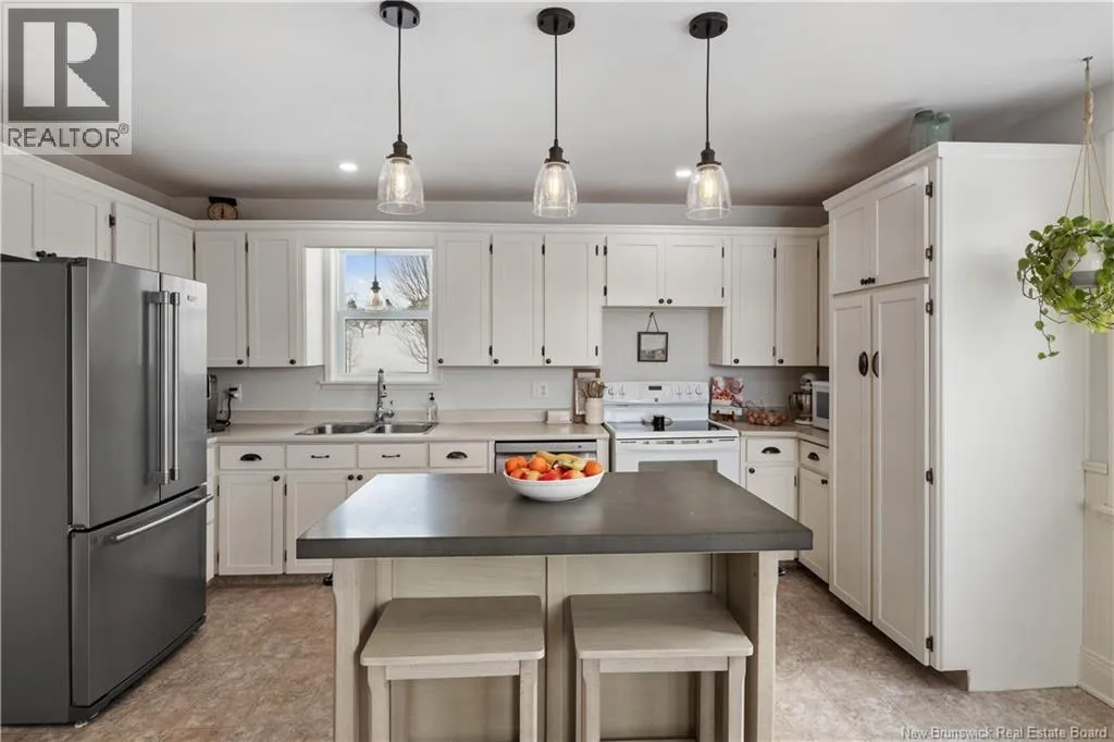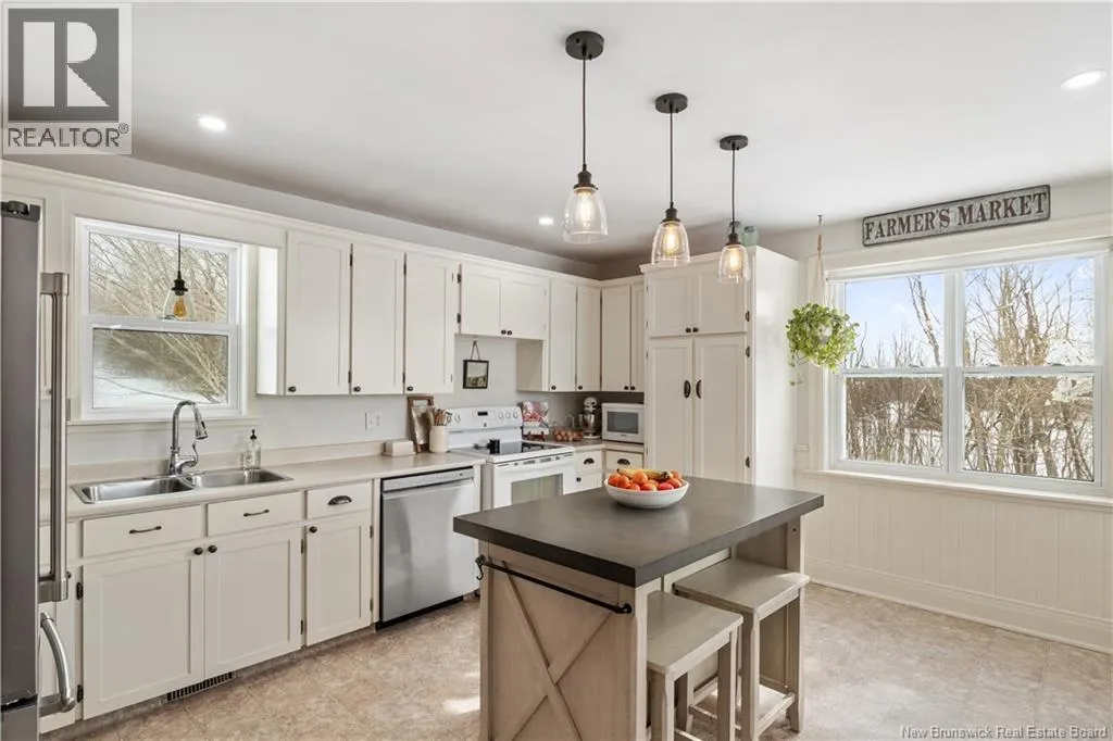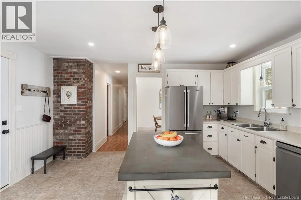 Take NB-106 E to Lake Rd in Memramcook. Take exit 488 from Trans-Canada Hwy/NB-2 E Situated on approximately 1.45 acres in the beautiful Valley of Memramcook, this charming 1.5-storey home offers plenty of space for its new owners. Upon arrival, you are welcomed by a spacious entrance and a private setting surrounded by mature trees. The main floor features a bright living room with garden doors, providing added privacy or noise reduction. From here, you have access to the dining room, which offers patio doors leading to the back deckperfect for outdoor enjoyment. The kitchen includes white cabinetry, a center island with additional seating, and direct access to the exterior. Also on the main level, you will find the primary bedroom, a second bedroom, and a convenient half bath combined with laundry. The upper level offers four additional bedrooms and a full bathroom, making it ideal for a growing family or hosting guests. The basement is unfinished but includes exterior access and provides excellent storage potential. This house also features all new decks! Contact for more details. (id:27476)