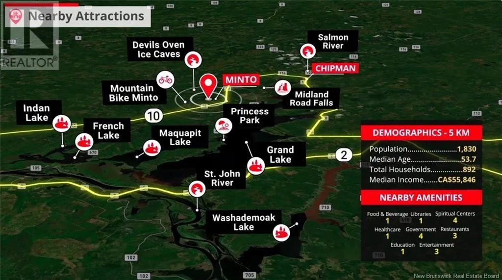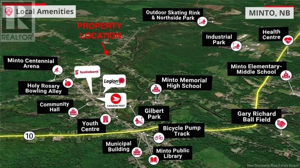 Endless Commercial Potential! Located in the charming Village of Minto and set on approximately 7 acres, this spacious commercial building offers a fantastic opportunity for investors and entrepreneurs. The exterior remains in solid condition with the added benefit of new fencing, providing enhanced privacy and security. With its expansive lot, the property offers ample space for future developmentideal for creating a multi-purpose commercial hub, Multi-unit apartments, a community centre, or a blend of office and storage facilities. While the interior requires renovation, it presents a great value-add opportunity for the right buyer. The upper portion of the property is level, has tons of parking, and is a high traffic corner lot location. The lower portion of property is level, has former paved basketball court, and large field with views of the Newcastle Creek. Minto and the Municipality Of Grand Lake has seen substantial growth in the community, and expecting much more in the coming years with the investments in the area. Dont miss your chance to transform this space into your next successful venture! (id:27476)