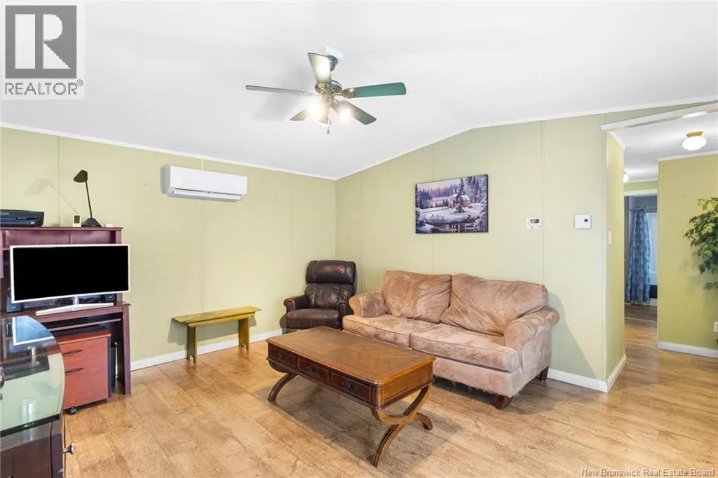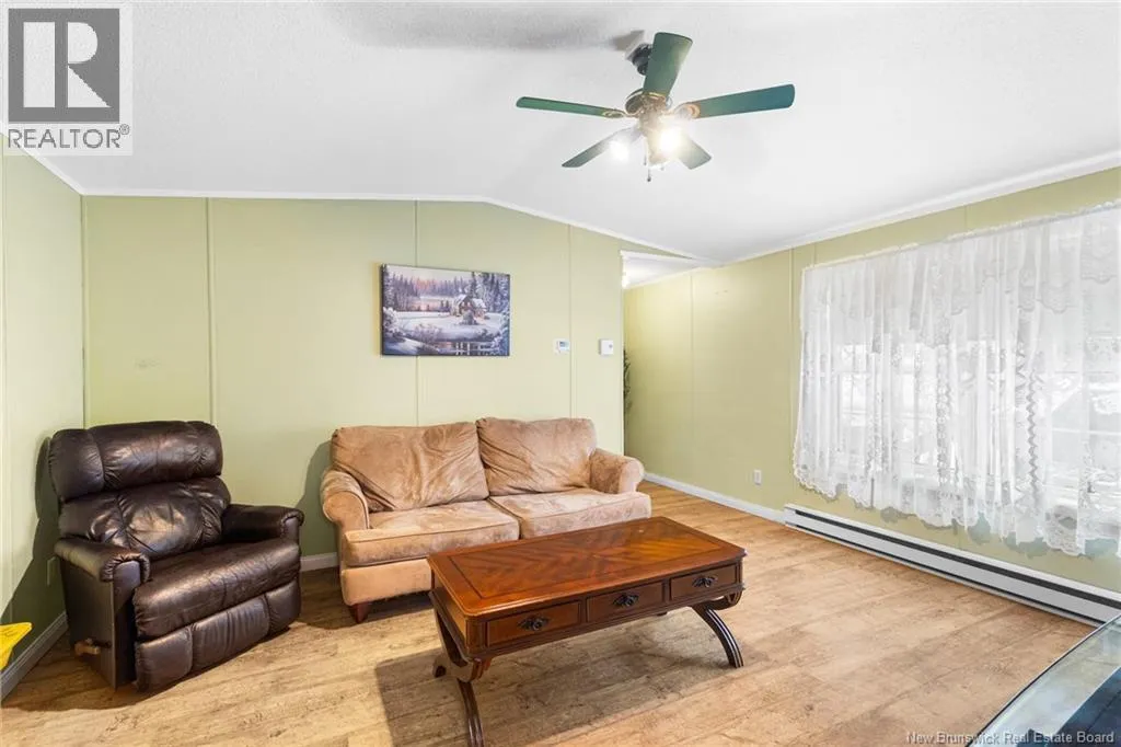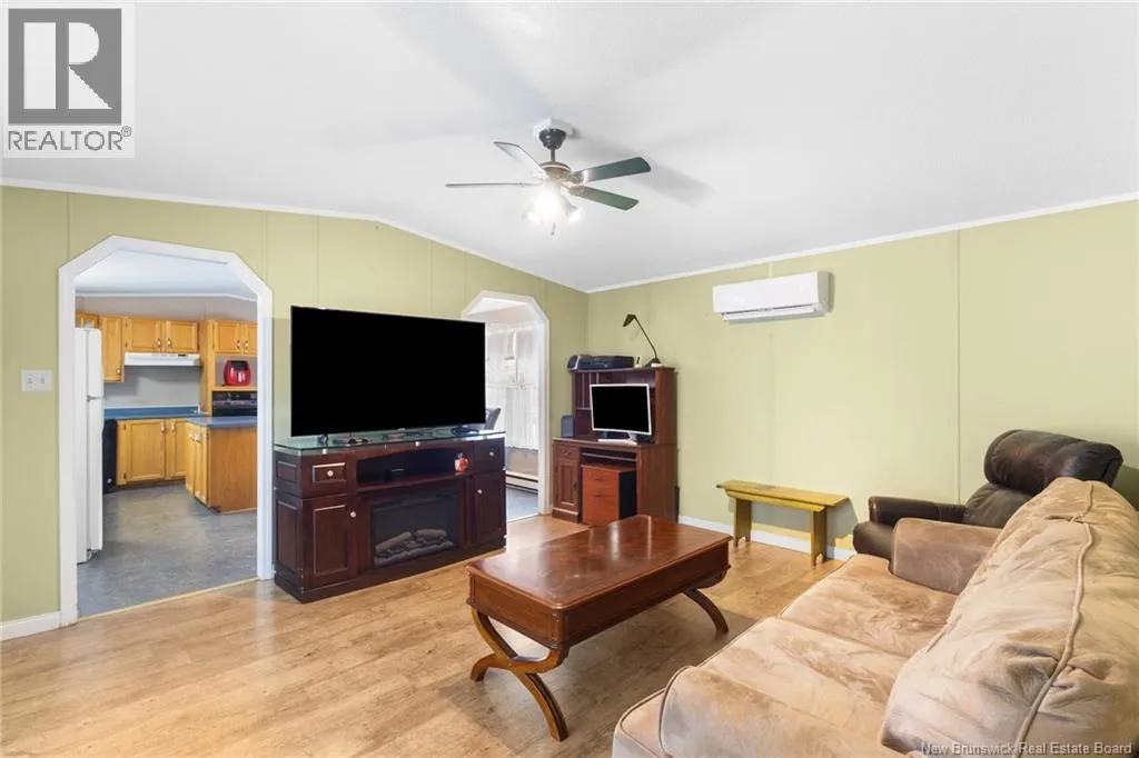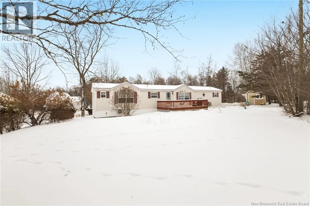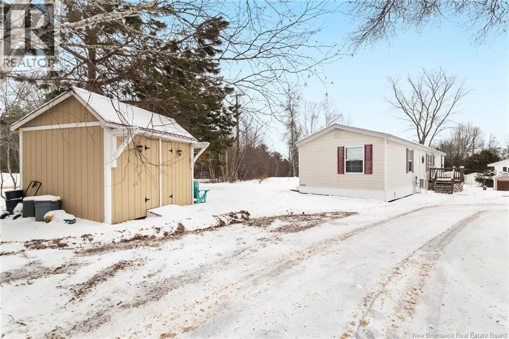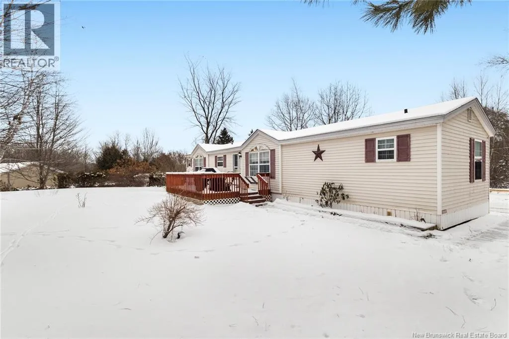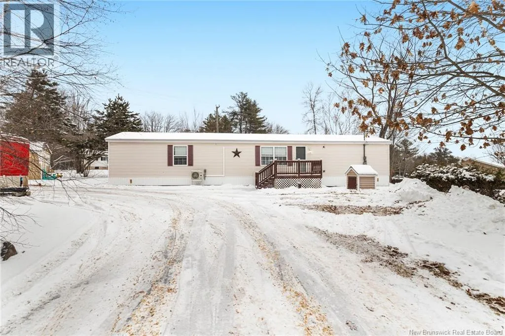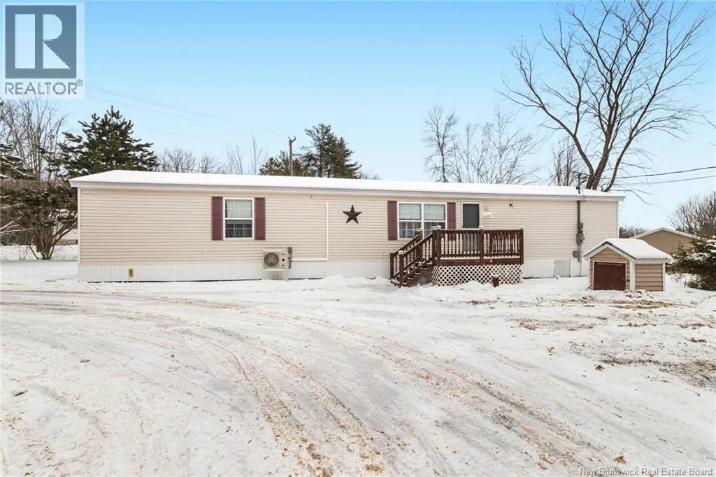 From Minto take Main St. to Park St., turn left onto Memorial Dr., home will be on the right. Welcome to 60 Memorial Dr. in Minto, a well maintained 3-bedroom, 2-bath mini home set on a landscaped lot on a quiet side street. This inviting property offers the perfect blend of comfort and convenience, within walking distance to the local high school, playground, and dog park. Everyday amenities and the local health centre are just minutes away. Step inside to a spacious kitchen that serves as the heart of the home, with a central island and ample space for a dining table, perfect for casual meals or entertaining. The primary bedroom offers ample closet space and ensuite, with the laundry conveniently located just off this area for added functionality. The large family room offers plenty of space for gatherings and relaxation, while two additional well-sized bedrooms and a full bath are thoughtfully positioned nearby. Outside, enjoy a large back deck ideal for summer barbecues, morning coffee, or simply taking in the peaceful surroundings. A shed offers additional storage, while the paved driveway and attractive landscaping add excellent curb appeal. Move-in ready and designed for one-level living, perfect for downsizers or a growing family. Enjoy the added comfort the backup generator and hookup offer. Located only 35 minutes from Fredericton and Oromocto, and close to Grand Lake, renowned for its strong community feel, world-class mountain biking trails, and abundant outdoor recreation, this property offers the best of small-town living with easy access to the city. (id:27476)