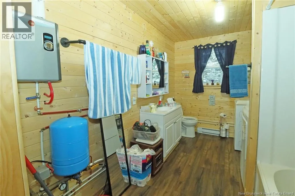 Take Rte 10 to Minto, turn onto Main St then turn onto Northside Drive then turn right onto Slope Rd and look for sign. Set on a generous 5.93 acre parcel, this unique property offers privacy, natural beauty, and versatility. A peaceful brook runs through the land, with a trail leading to the back of the property, making it ideal for outdoor enthusiasts or those seeking a serene setting. Both the cozy one-bedroom, camp-style home, and the impressive 30 x 50 garage were newly built approximately three years ago, offering a rustic and functional feel. The home is equipped with a heat pump, electric baseboard heating, and a wood stove for year-round comfort, along with an on-demand propane hot water heater for efficiency and convenience. A standout feature is the garage, a handy persons dream, offering an abundance of space for equipment storage, vehicles, projects, or hobbies, and includes dual heating with wood and propane for added versatility. Additional highlights include a newly drilled well and the convenience of municipal sewer. A rare chance to own a private acreage with fresh services in place, offering comfort, space, and a peaceful natural setting. Located approximately 35 minutes from Fredericton and only minutes from Minto amenities. (id:27476)