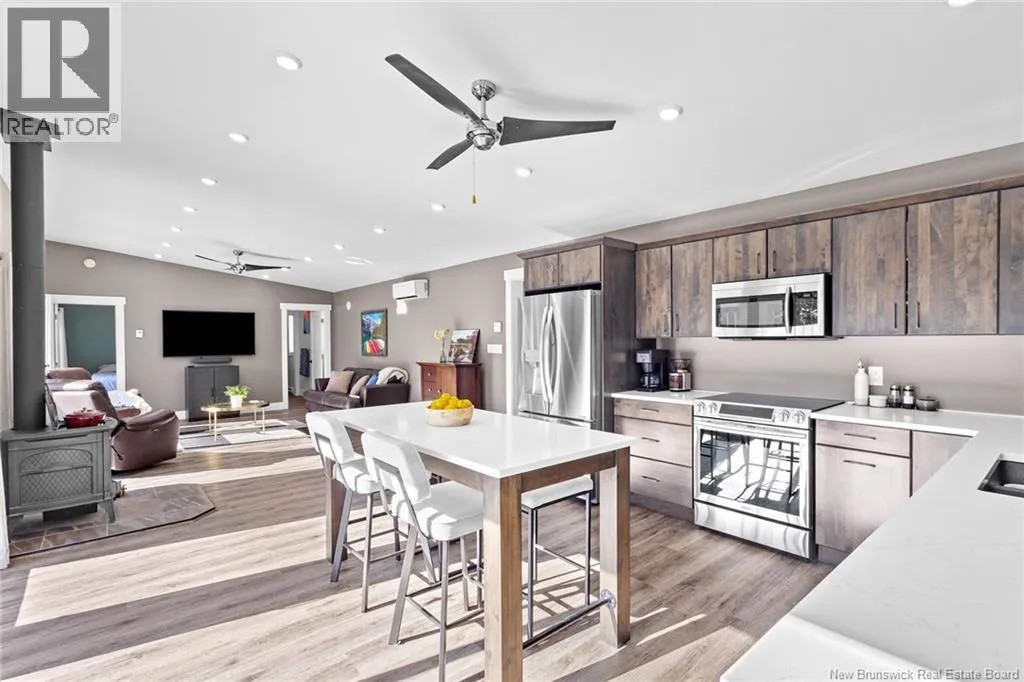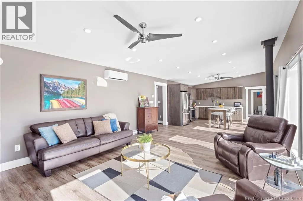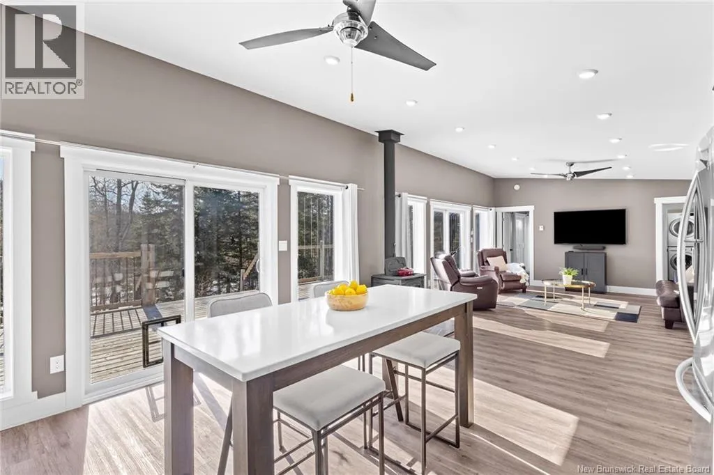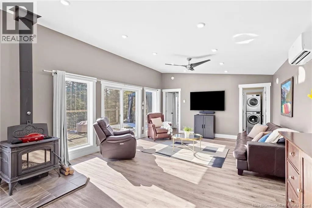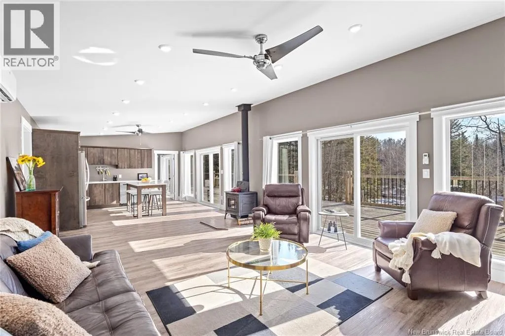 Follow NB-10 E to Northfield Ave in New Zion. Follow Northfield Ave and Northside Dr to Tracy Rd., turn left to Tracy Rd., home will be on the right Welcome to 48 Tracy Rd., Minto where you will find your own private retreat nestled within village limits on 1.2 hectares along the Newcastle Stream. This immaculate property offers a rare blend of privacy, lifestyle, and convenience, located just 40 minutes from Fredericton and only 5 minutes to local amenities, schools, and the health centre. This peaceful & secluded setting will make you feel like youre in your own personal paradise. Enjoy casting a fishing line right from your front yard or kayaking & canoeing along the stream. With a greenhouse to grow your own vegetables, space to produce maple syrup, and even the option to keep bees, this property truly is a lifestyle. Inside, this 2-bed, 2-bath home features an open-concept with high ceilings & large windows that capture stunning water views. The kitchen impresses with quartz countertops & custom-built island, flowing into a bright living area complete with WETT-certified wood stove perfect for cozy evenings. The spacious primary bedroom has a walk-in closet & private ensuite. A second full bath with laundry is conveniently located off the main living area. Outside the expansive deck is ideal for enjoying your morning coffee while taking in the tranquil surroundings. A newly built detached double garage, fully insulated & heated, adds incredible value. With a 3-pc bath and bachelor loft, it offers potential for guests or rental income! A rare opportunity to own a serene, lifestyle-driven property in a prime location. (id:27476)