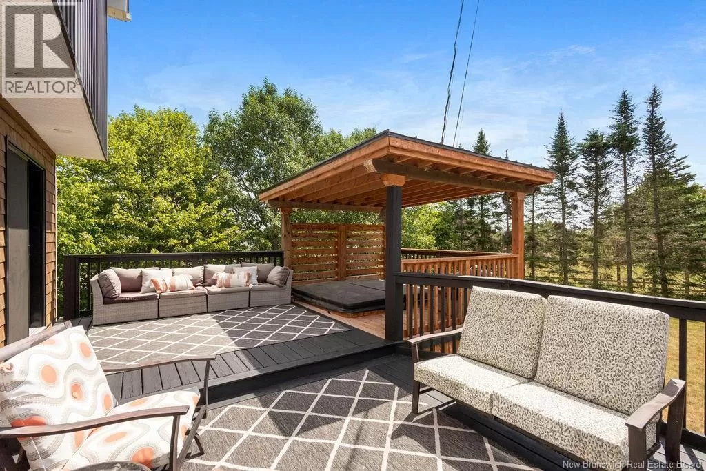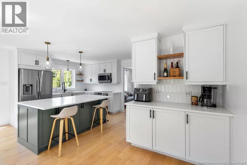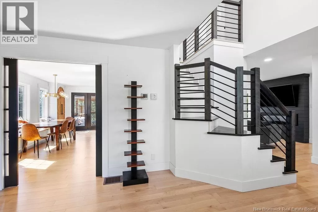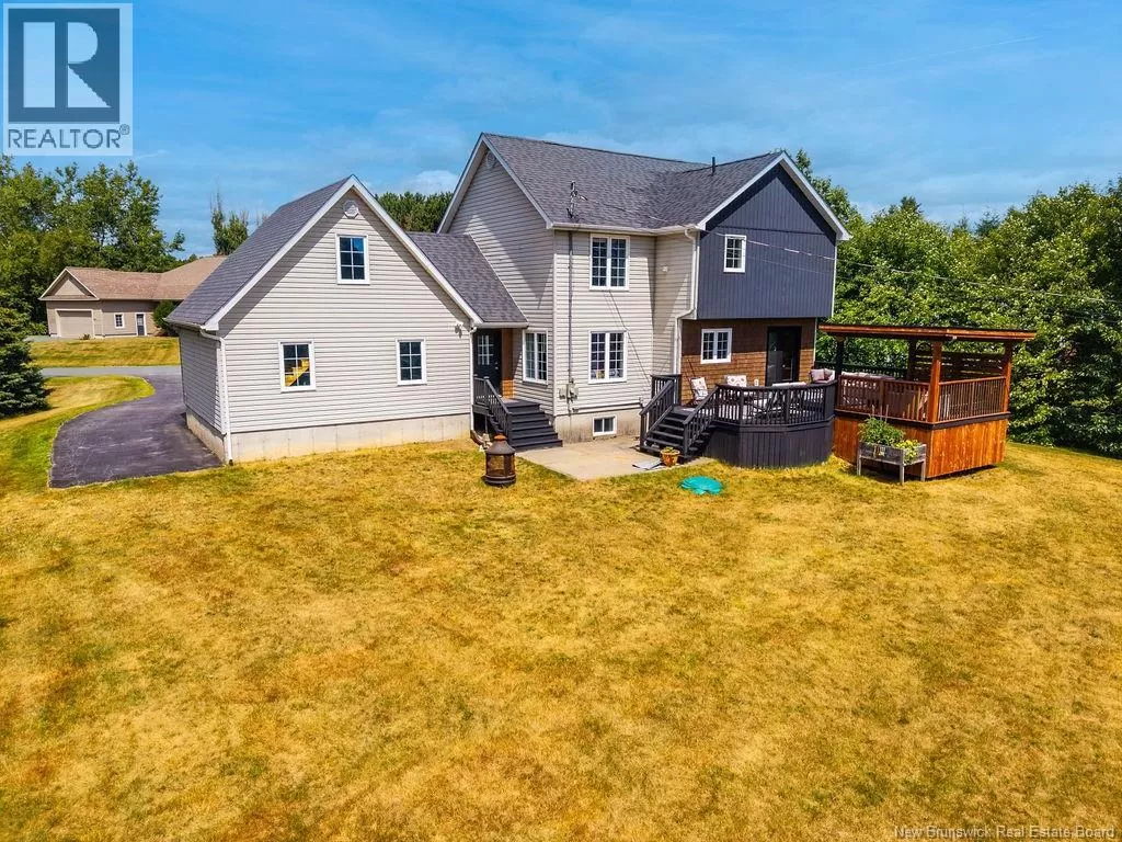 Head northeast on King George Hwy. Turn left onto Century Drive. Continue up the road and the destination is on your left. Welcome to this stunning executive two-storey home on a large, beautifully landscaped lot in one of the citys most desirable neighbourhoods. Surrounded by mature trees and elegant homes, the property offers exceptional curb appeal and privacy. Step inside the grand front entry and be greeted by a captivating staircase, beautiful lighting, and a fresh, modern color palette. The main floor includes a formal living room with vaulted ceilings and a cozy second living area with a fireplaceperfect for relaxing or entertaining. The custom kitchen features crisp white cabinetry, convenient coffee area, a spacious island with a quartz countertop, and a generous dining area with views of the private backyard. Enjoy direct access to the multi-tiered deck, a covered hot tub retreat, and a serene lower patio designed for ultimate outdoor enjoyment. Also on the main level: a stylish half bath, a large walk-in closet off the garage entry, and unfinished loft space above the garage for storage or future use. The home is filled with natural light and heated/cooled efficiently by a geothermal heat pump. Upstairs are two generous bedrooms and a beautiful primary suite with a walk-in closet with custom organizers and a private ensuite. A second full bath with laundry completes this level. The finished basement offers a large rec room, office/gym area, bathroom, and a fourth non-conforming bedroomideal for guests. Also, amenities and the Miramichi River are only minutes away. Call now to view! (id:27476)