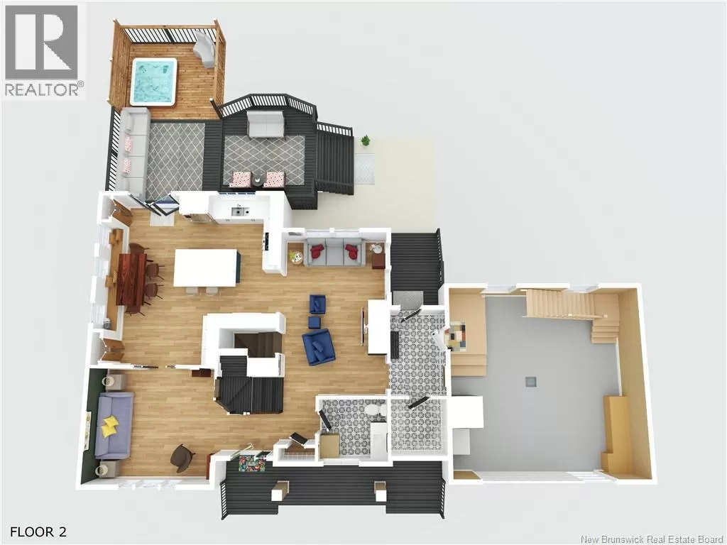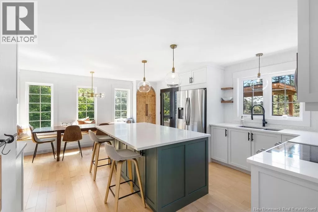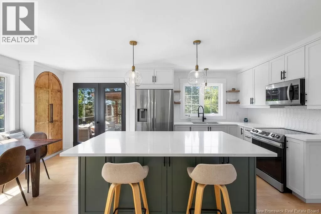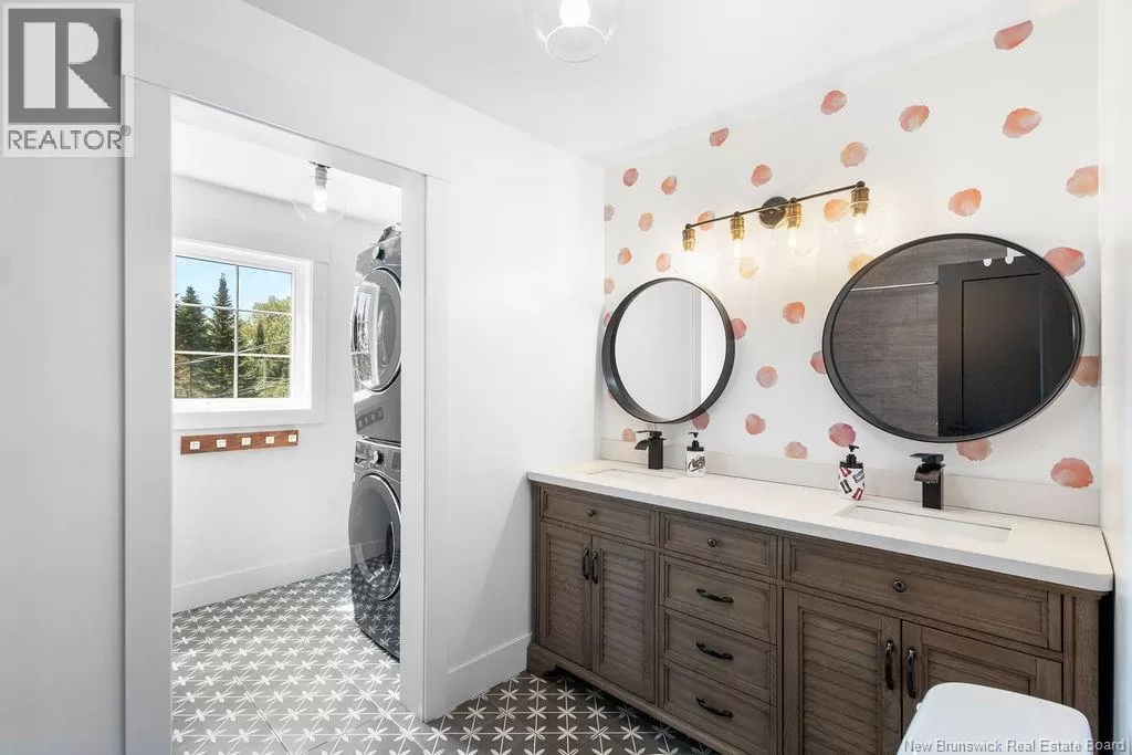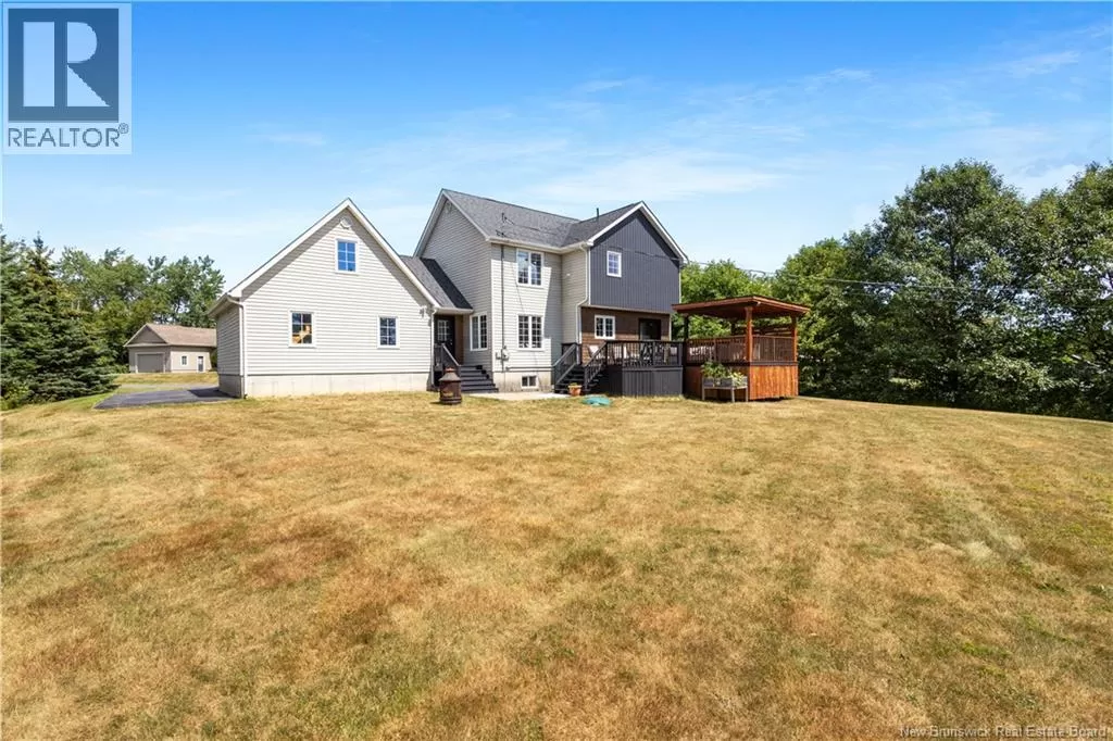 Head northeast on King George Hwy. Turn left onto Century Drive. Continue up the road and the destination is on your left. Welcome to this stunning executive two-storey home on a large, beautifully landscaped lot in one of the citys most desirable neighbourhoods. Surrounded by mature trees and elegant homes, the property offers exceptional curb appeal and privacy. Step inside the grand front entry and be greeted by a captivating staircase, beautiful lighting, and a fresh, modern color palette. The main floor includes a formal living room with vaulted ceilings and a cozy second living area with a fireplaceperfect for relaxing or entertaining. The custom kitchen features crisp white cabinetry, convenient coffee area, a spacious island with a quartz countertop, and a generous dining area with views of the private backyard. Enjoy direct access to the multi-tiered deck, a covered hot tub retreat, and a serene lower patio designed for ultimate outdoor enjoyment. Also on the main level: a stylish half bath, a large walk-in closet off the garage entry, and unfinished loft space above the garage for storage or future use. The home is filled with natural light and heated/cooled efficiently by a geothermal heat pump. Upstairs are two generous bedrooms and a beautiful primary suite with a walk-in closet with custom organizers and a private ensuite. A second full bath with laundry completes this level. The finished basement offers a large rec room, office/gym area, bathroom, and a fourth non-conforming bedroomideal for guests. Also, amenities and the Miramichi River are only minutes away. Call now to view! (id:27476)