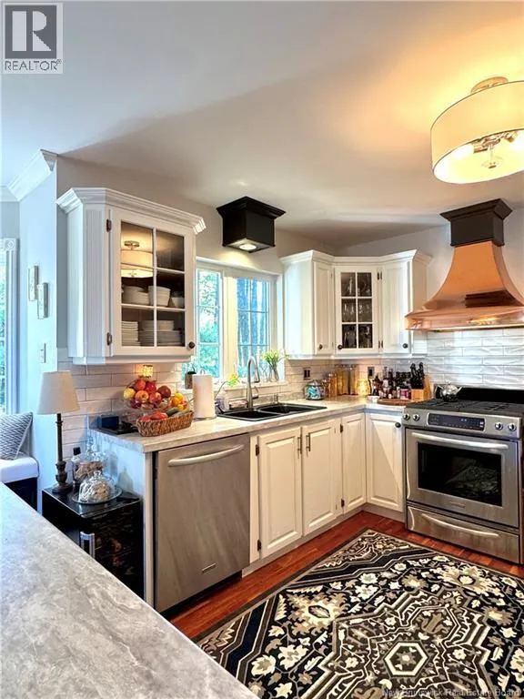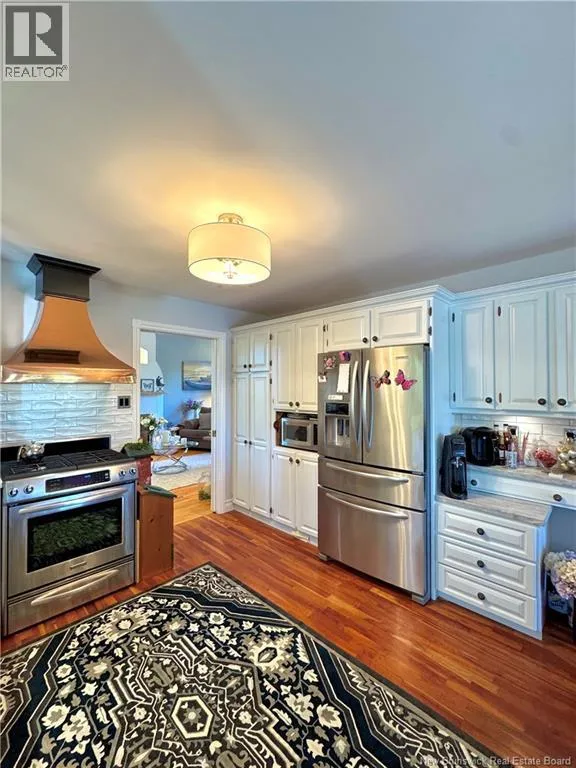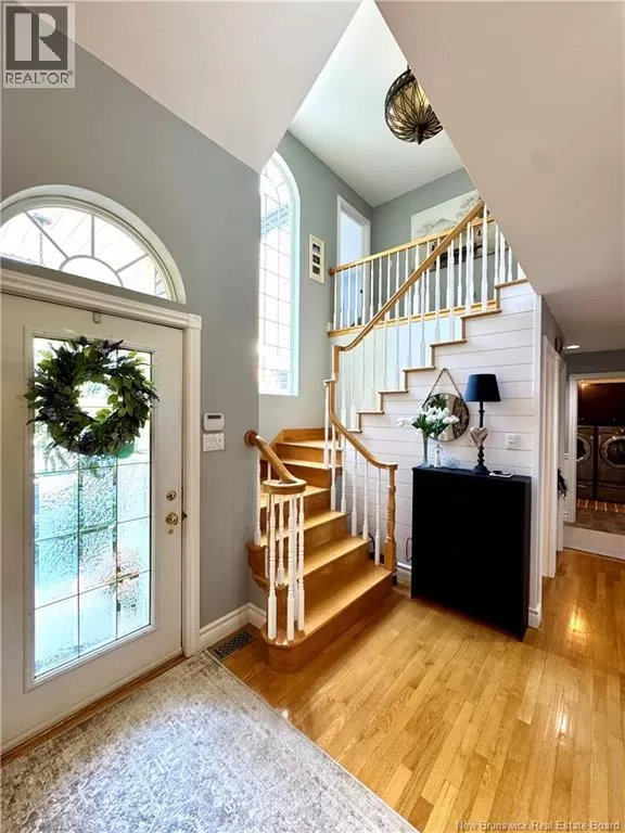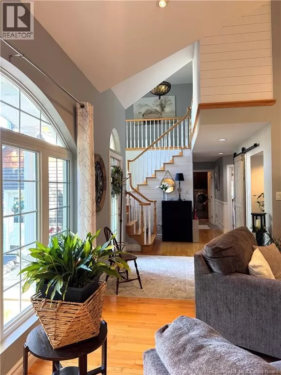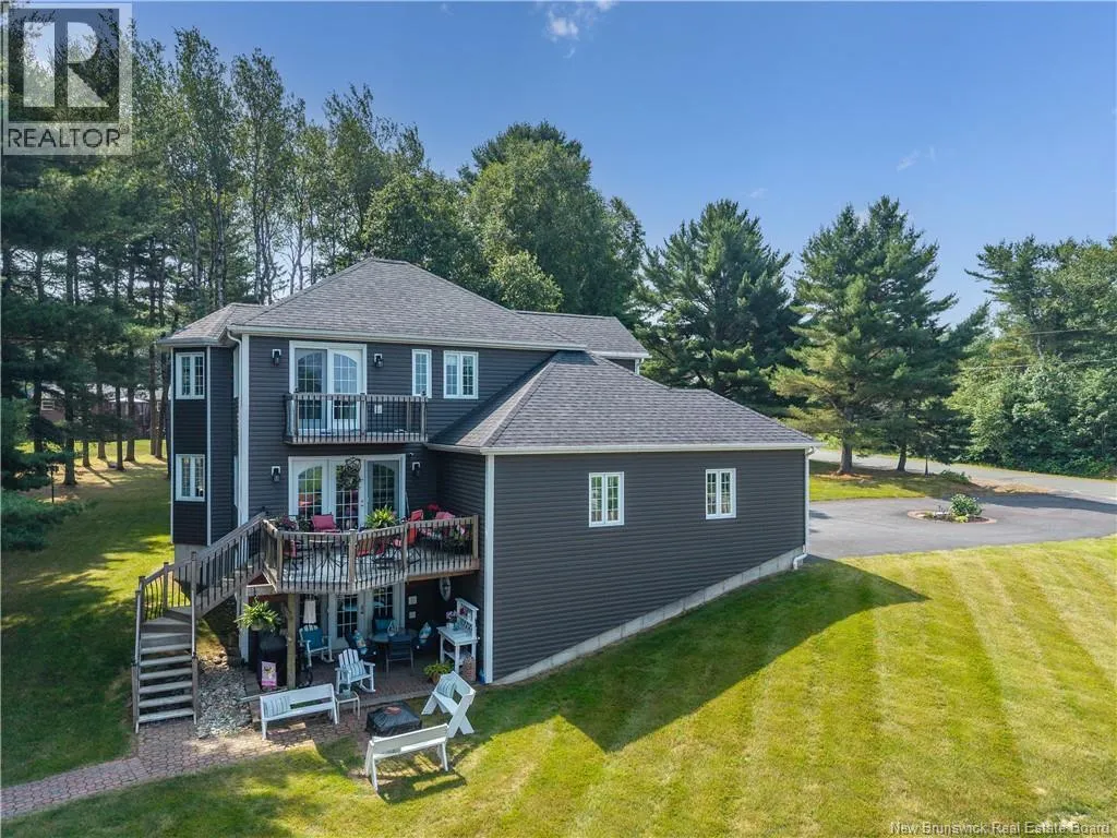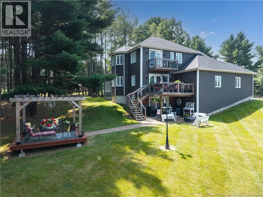 9 Harper Road Miramichi NB E1N 4R7 Welcome to 9 Harper - an incredible waterview 2-storey home with double attached garage, perfectly positioned on a beautiful lot in one of the citys most sought-after locations. Backing onto the 18th tee of the Golf & Country Club & just minutes from the hospital & all amenities! Step inside & be greeted by a spacious living room with vaulted ceilings, gorgeous propane fireplace & oversized windows filling the space with natural light. Beautifully redesigned kitchen & inviting family room, showcasing hardwood floors, propane cooktop with copper range hood, a cozy window seat, & garden doors to the deck with incredible water views. A convenient main floor laundry & powder room complete this level. Upstairs, the master suite offers large closet, ensuite & private balcony with breathtaking river views. Two additional bedrooms, large additional closet & full bath provide ample space for family or guests. The walk-out basement features a rec room, office/bedroom, & two-piece bath. Outside, enjoy multiple decks, gazebos & a meticulously maintained yard with deeded 50 waterfront access to the Miramichi River. Additional highlights include geothermal heating, updated windows (2020), siding (2021), R2000 upgraded insulation, water softener, reverse osmosis system, alarm system, & excellent closet/storage space throughout. The heated, insulated double garage is equipped with hot/cold water and a laundry sink. 2 sheds are also included. A rare find in prime location! (id:27476)
