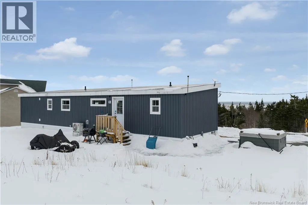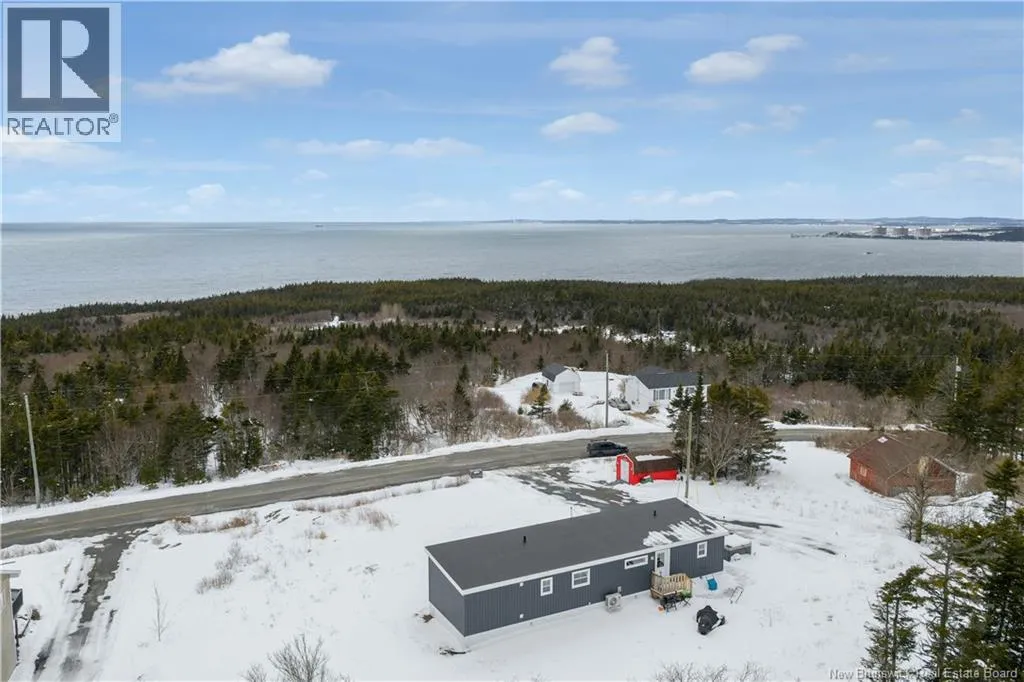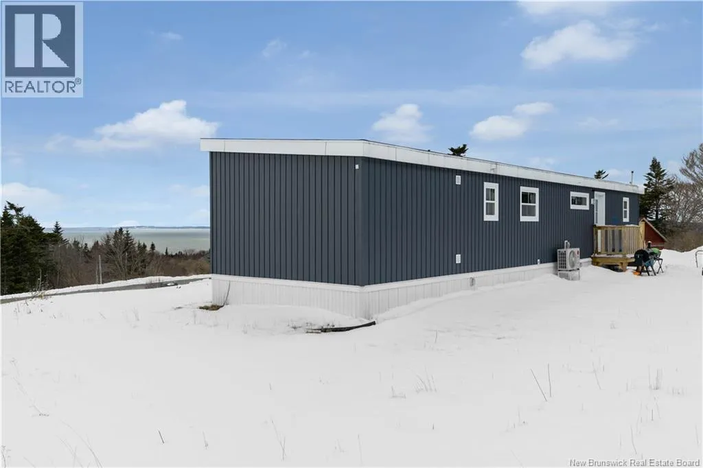 Bayside drive to Redhead Road Enjoy the ideal seaside lifestyle with this Maple Leaf Home 16 x 60 mini home, perched 350 feet above Sea level, offering unparralelled views. Perfectly located in a quiet area just minutes from the Bay of Fundy. Surrounded by a diverse migrating bird population and located just down the road from a century old lighthouse, this property is a dream for nature lovers and outdoor enthusiasts. ATV trails nearby connect directly to the Fundy Trail system, offering endless adventure right from your doorstep. Set on a 1-acre lot with a gravel driveway, this one-level home offers 2 bedrooms and 2 bathrooms, with panoramic views from the glass wall to wall windows. Simply spectacular! Outside, enjoy a 4 person hot tub wired and ready for your enjoyment! PLUS - 220V electrical is in place for EV charging. With remaining home warranty and the option for a quick closing, this could be the opportunity to enjoy coastal living in a peaceful setting you've been dreaming of. (id:27476)