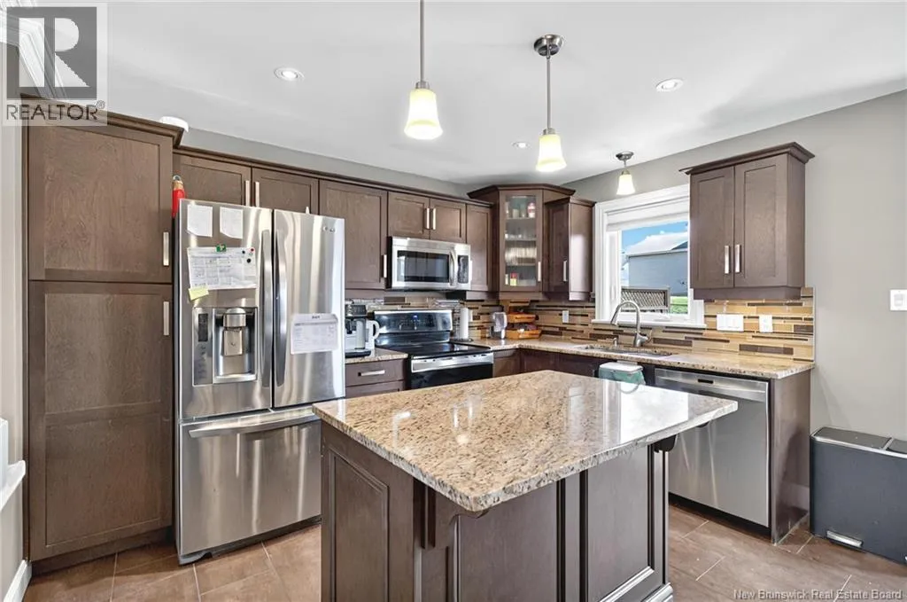 1 000 $ bonus for potential buyers (payable at closing, to cover legal fees). Modern 2-storey comfort in Moncton North where family living meets style. Located in a quiet, family-friendly neighbourhood, this stunning 4-bedroom, 2.5-bath home offers the perfect blend of space, function, and warmth. Step into an open-concept main floor featuring a cozy propane fireplace, decorative columns, and a kitchen designed to impress complete with granite island and plenty of room to gather. Upstairs, the king-size primary bedroom with cathedral ceiling makes a bold impression. Two additional bedrooms and a full bathroom with double sinks complete the second floor. The fully finished basement adds even more value with a legal fourth bedroom, a second full bath, and a spacious family room ideal for entertaining, relaxing, or playing. Outside, enjoy a landscaped backyard with a deck perfect for sunny days and summer evenings. Turn the key, drop your bags your next chapter starts here. (id:27476)