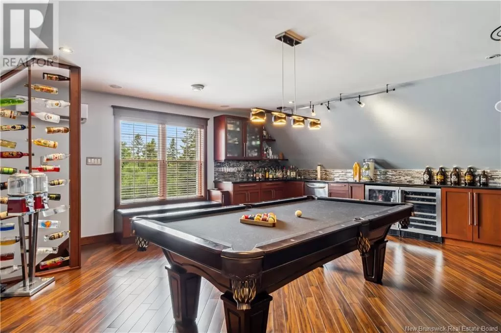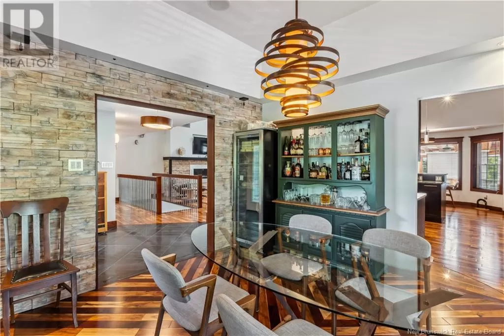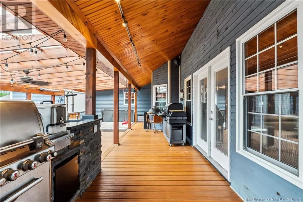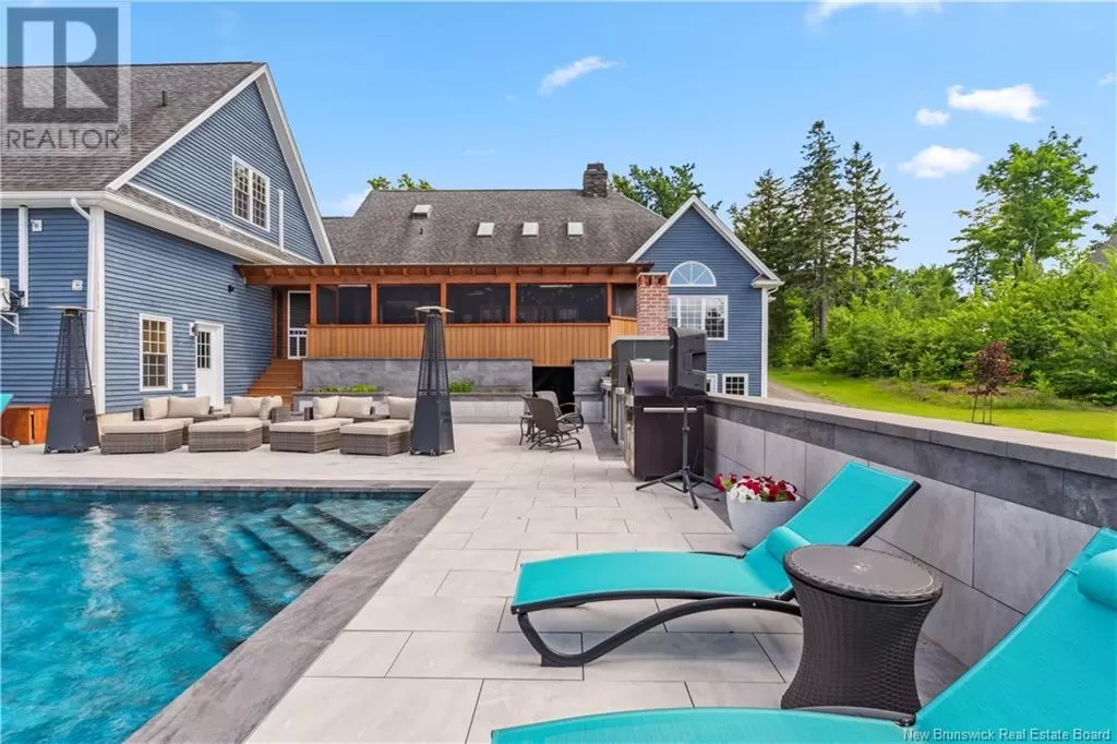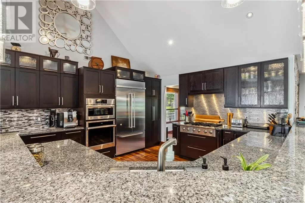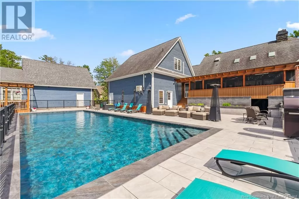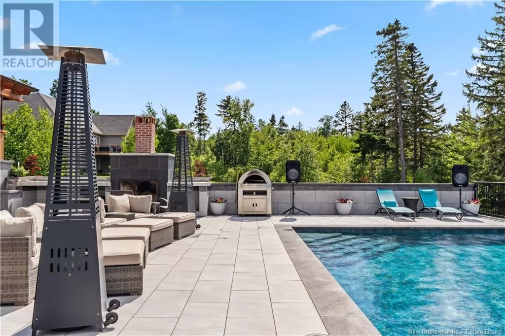 Turn right onto Whitfield Trites onto Timberline Road then left onto Thorncastle. House will be on your left. 3,000+ SQFTG HEATED GARAGES | In-Law Suite | Saltwater Pool | Geothermal HVAC This executive ranch-style home sits on a 1.1-acre private lot with 5 oversized heated garage bays, a dream for hobbyists, collectors, or business owners. Step inside to vaulted ceilings, skylights, and exotic walnut hardwood. The chefs kitchen features granite countertops, gas stove, high-speed oven, stainless steel appliances, and a large island that flows into the dining/living area with a stunning stone propane fireplace. Main level offers 3 beds, 2.5 baths, radiant floors, a spacious foyer with laundry, and a Hi-Fidelity surround sound system. The primary suite is a true retreat with walk-in closet and fully tiled spa-style ensuite, ceiling-fill soaker tub, and flush-mount rain shower. Outside, entertain under the screened in covered pergola with built-in BBQ, inset hot tub, and movie projector. The heated saltwater pool features Italian tile, outdoor fireplace and direct access to the attached garage with ½ bath. Walk-out lower level includes a cozy living room, 2 bedrooms, office/non-conforming bedroom, gym, and full bath. Bonus features: Loft-style bar/entertainment room with built-in bar, dishwasher, movie theatre & pool table. Detached garage with separate meter, 200 amp panel, and solar-ready wiring. Pool house/In-law suite with stylish kitchen, island, stainless appliances, 2 bedrooms, full bath with laundry, and mini split. Truly one of Monctons most feature-rich and luxurious homes. (id:27476)