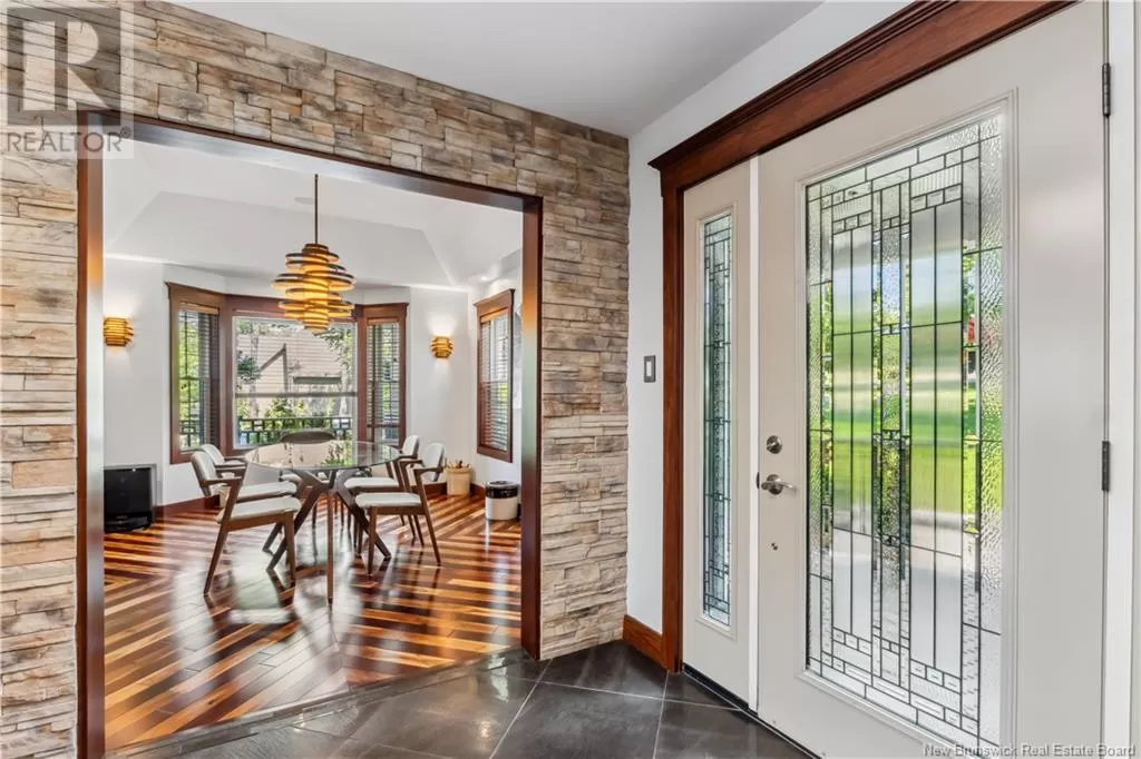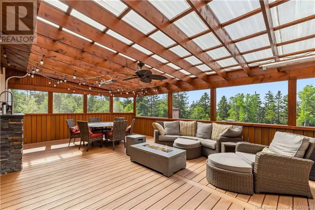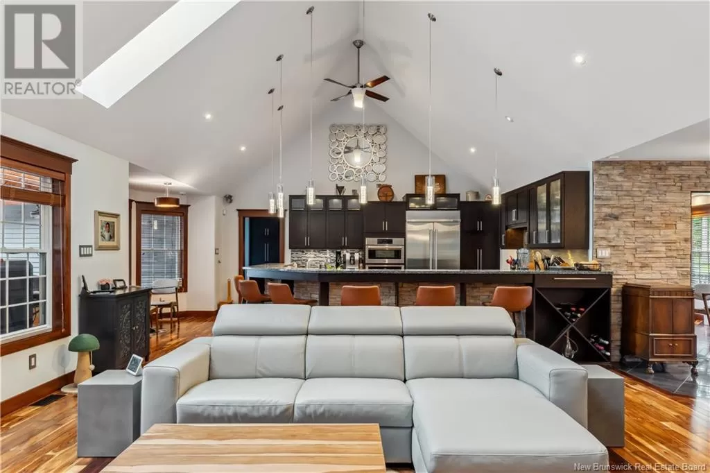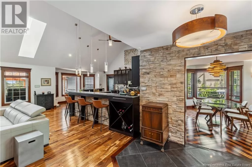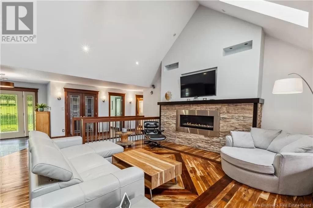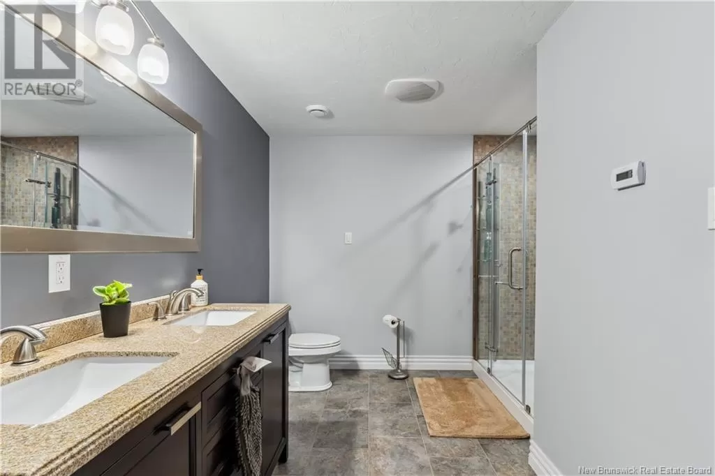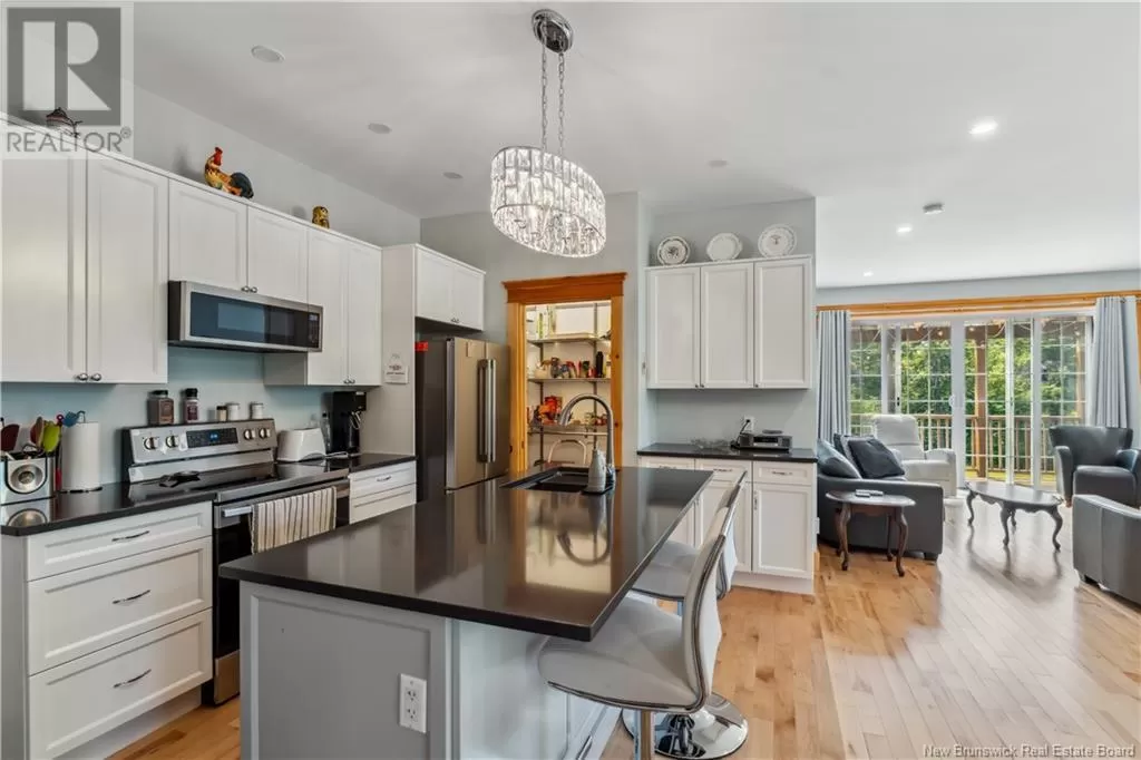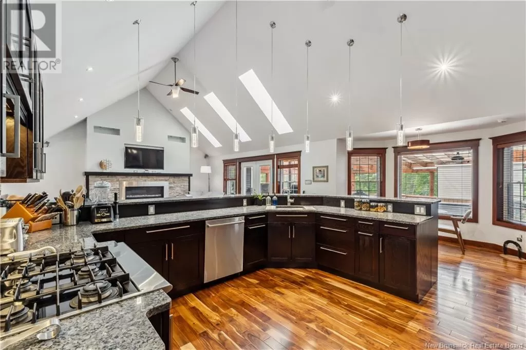Turn right onto Whitfield Trites onto Timberline Road then left onto Thorncastle. House will be on your left. 3,000+ SQFTG HEATED GARAGES | In-Law Suite | Saltwater Pool | Geothermal HVAC This executive ranch-style home sits on a 1.1-acre private lot with 5 oversized heated garage bays, a dream for hobbyists, collectors, or business owners. Step inside to vaulted ceilings, skylights, and exotic walnut hardwood. The chefs kitchen features granite countertops, gas stove, high-speed oven, stainless steel appliances, and a large island that flows into the dining/living area with a stunning stone propane fireplace. Main level offers 3 beds, 2.5 baths, radiant floors, a spacious foyer with laundry, and a Hi-Fidelity surround sound system. The primary suite is a true retreat with walk-in closet and fully tiled spa-style ensuite, ceiling-fill soaker tub, and flush-mount rain shower. Outside, entertain under the screened in covered pergola with built-in BBQ, inset hot tub, and movie projector. The heated saltwater pool features Italian tile, outdoor fireplace and direct access to the attached garage with ½ bath. Walk-out lower level includes a cozy living room, 2 bedrooms, office/non-conforming bedroom, gym, and full bath. Bonus features: Loft-style bar/entertainment room with built-in bar, dishwasher, movie theatre & pool table. Detached garage with separate meter, 200 amp panel, and solar-ready wiring. Pool house/In-law suite with stylish kitchen, island, stainless appliances, 2 bedrooms, full bath with laundry, and mini split. Truly one of Monctons most feature-rich and luxurious homes. (id:27476)