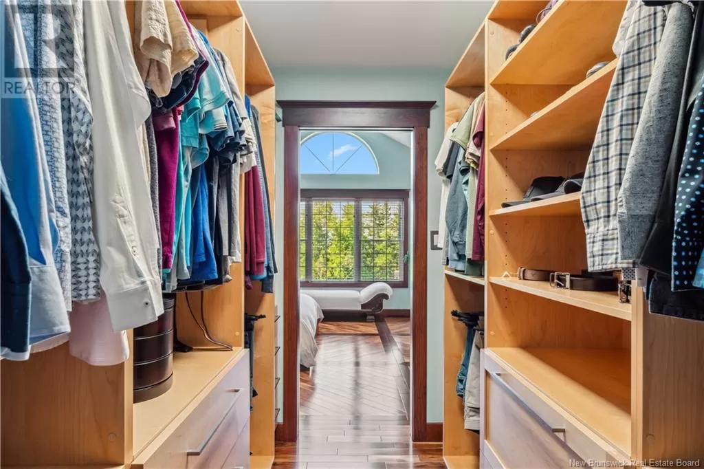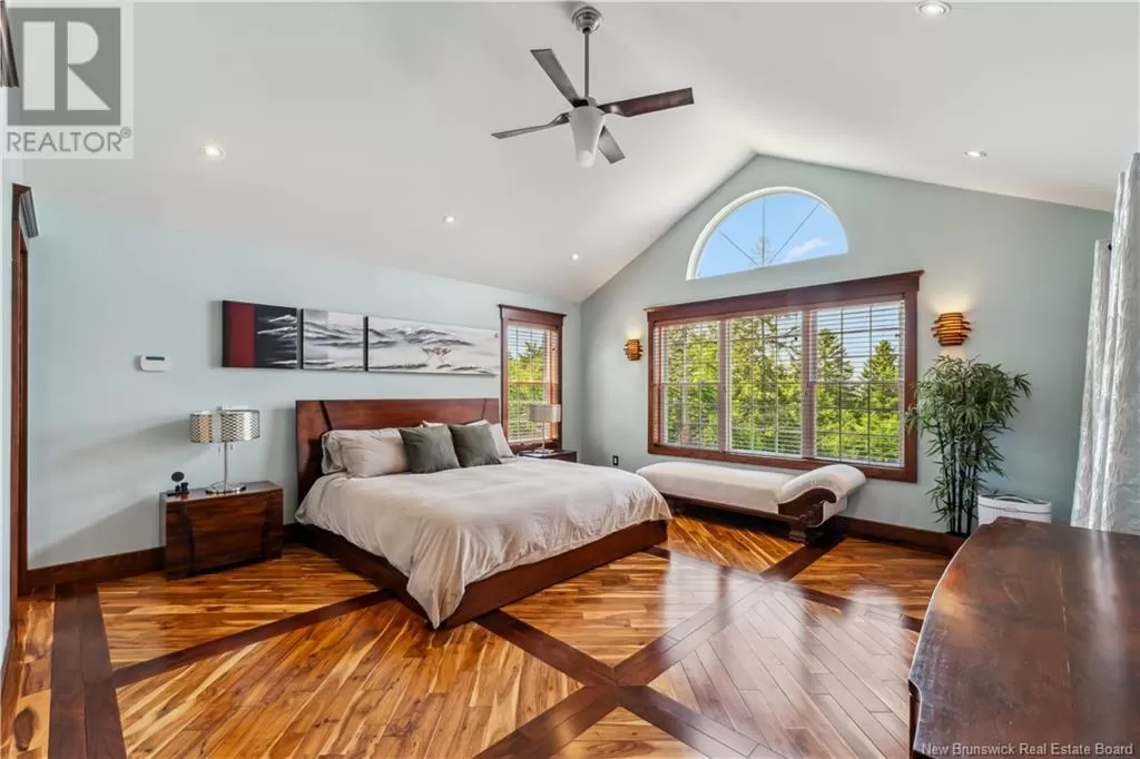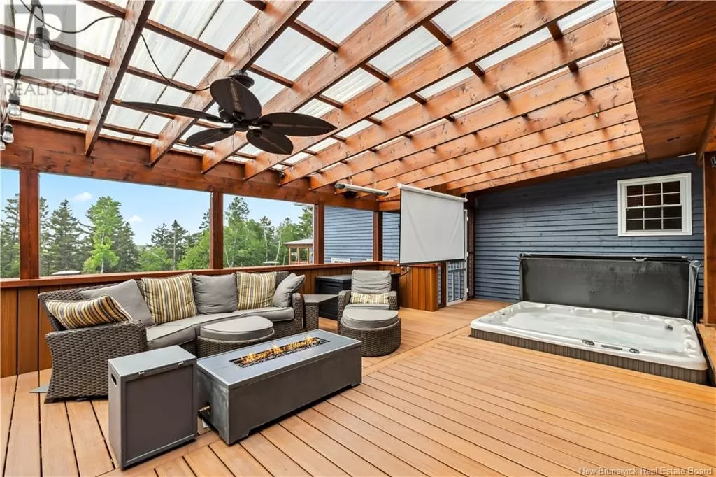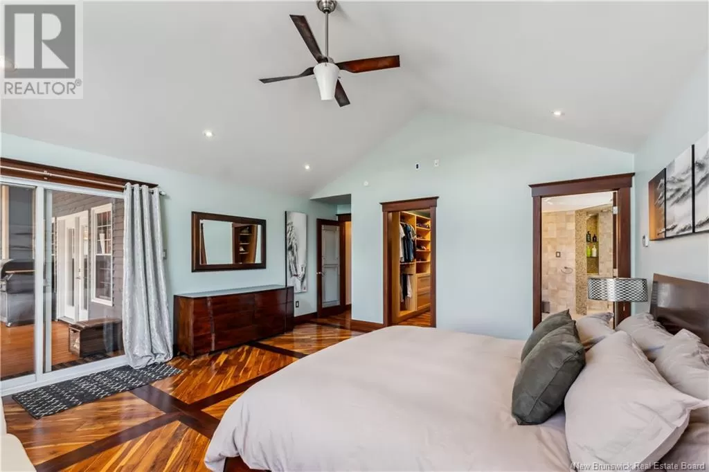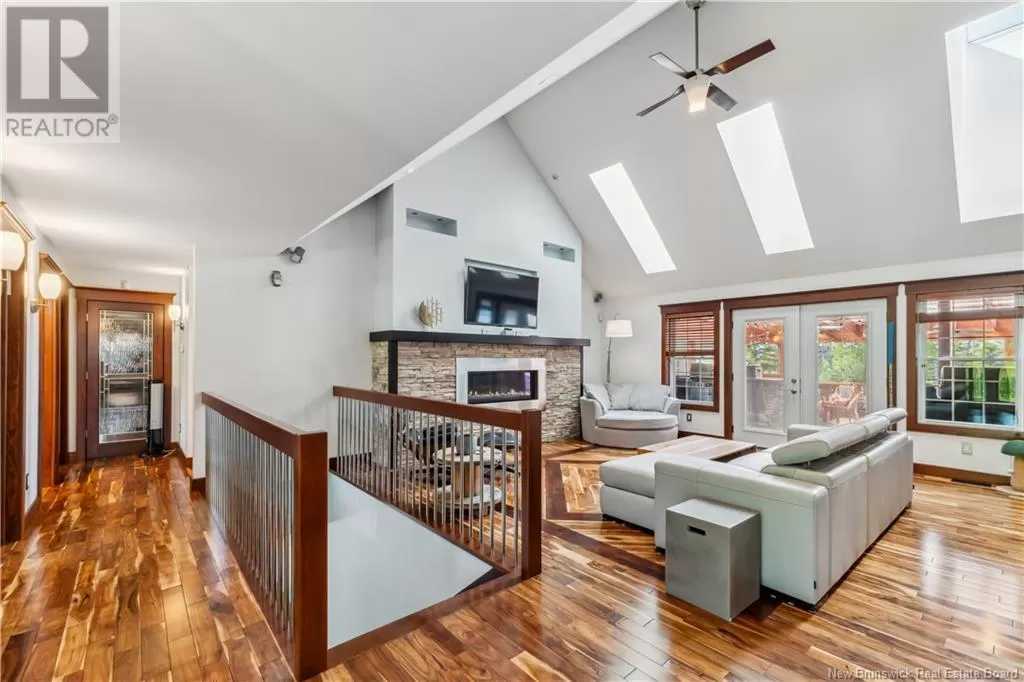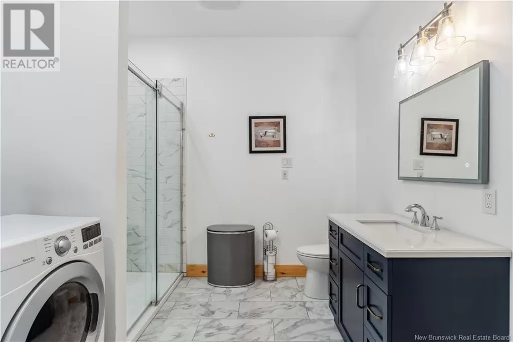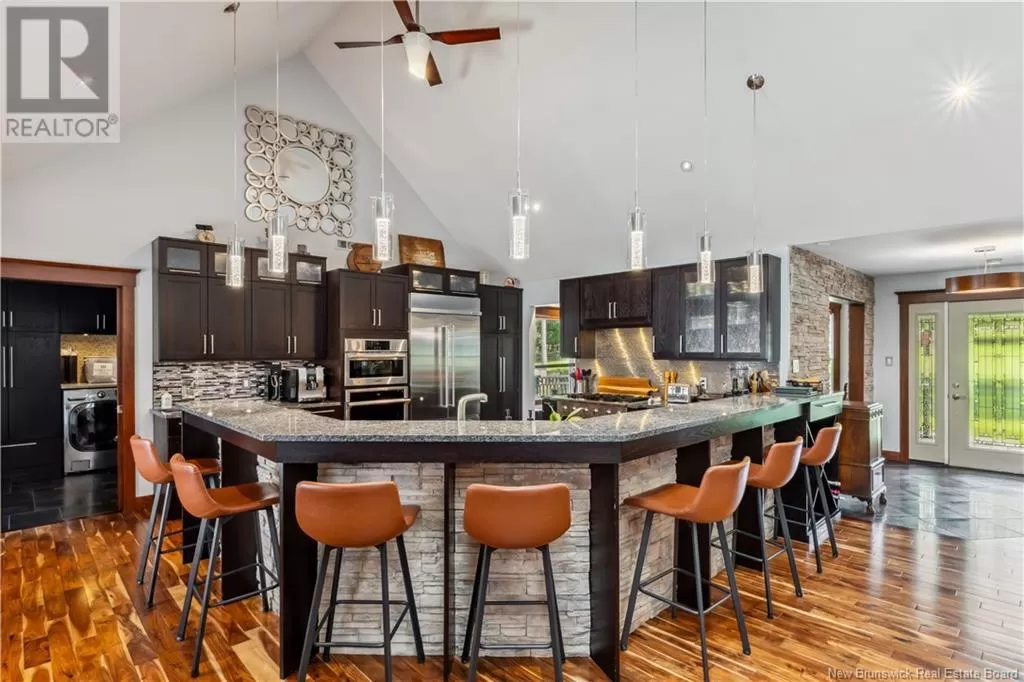 Turn right onto Whitfield Trites onto Timberline Road then left onto Thorncastle. House will be on your left. 3,000+ SQFTG HEATED GARAGES | In-Law Suite | Saltwater Pool | Geothermal HVAC This executive ranch-style home sits on a 1.1-acre private lot with 5 oversized heated garage bays, a dream for hobbyists, collectors, or business owners. Step inside to vaulted ceilings, skylights, and exotic walnut hardwood. The chefs kitchen features granite countertops, gas stove, high-speed oven, stainless steel appliances, and a large island that flows into the dining/living area with a stunning stone propane fireplace. Main level offers 3 beds, 2.5 baths, radiant floors, a spacious foyer with laundry, and a Hi-Fidelity surround sound system. The primary suite is a true retreat with walk-in closet and fully tiled spa-style ensuite, ceiling-fill soaker tub, and flush-mount rain shower. Outside, entertain under the screened in covered pergola with built-in BBQ, inset hot tub, and movie projector. The heated saltwater pool features Italian tile, outdoor fireplace and direct access to the attached garage with ½ bath. Walk-out lower level includes a cozy living room, 2 bedrooms, office/non-conforming bedroom, gym, and full bath. Bonus features: Loft-style bar/entertainment room with built-in bar, dishwasher, movie theatre & pool table. Detached garage with separate meter, 200 amp panel, and solar-ready wiring. Pool house/In-law suite with stylish kitchen, island, stainless appliances, 2 bedrooms, full bath with laundry, and mini split. Truly one of Monctons most feature-rich and luxurious homes. (id:27476)