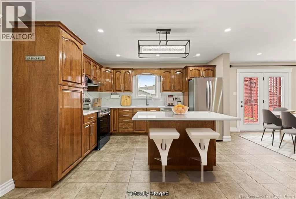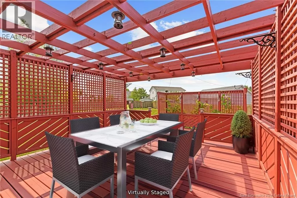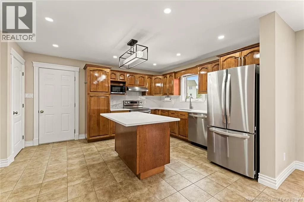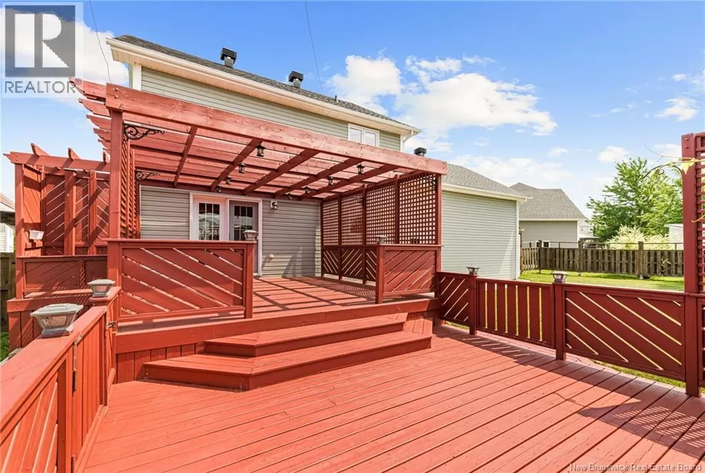 Take Mountain Road to Bulman to Fieldbrook Gorgeous detached home on a child safe, quiet court in Moncton North, near top-rated schools and all major amenities. This spacious family home features a newly built wraparound front porch and a bright, front-facing living room with a natural gas fireplace. The generous sized Dining room offers a walk out to the huge Entertainers Pergola style deck in the backyard. The upgraded kitchen offers a medium-toned cabinetry, new quartz countertops, an island with breakfast space, new porcelain tile backsplash, new stainless-steel appliances, and a large pantry. A convenient half bath completes the main floor. The upper level offers four rooms which include a huge family room, 2 large bedrooms and a spacious primary suite with a walk-in closet. The newly renovated 5-piece main bathroom features a soaker tub, tiled shower, and double sink quartz vanity. The finished basement adds two bedrooms, and a full bath/laundry combo with a new washer and dryer. The fully fenced pie-shaped backyard offers a huge Pergola style Entertainers Deck with new concrete walkways. The backyard offers additional open space to make this into a dream backyard. This home offers 4 entry points to the backyard. Additional updates include new roof shingles (2025) with transferrable warranty, mini-split heat pumps on all floors, digital thermostats, upgraded lighting, and fresh paint throughout. A two car attached garage completes the package. (id:27476)