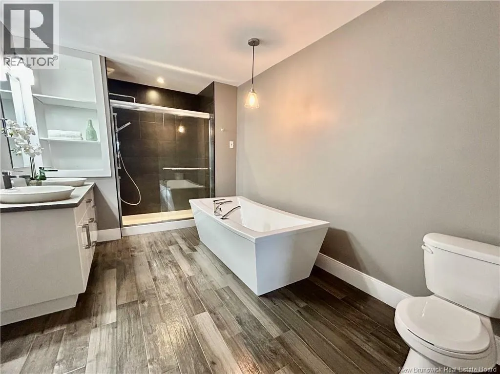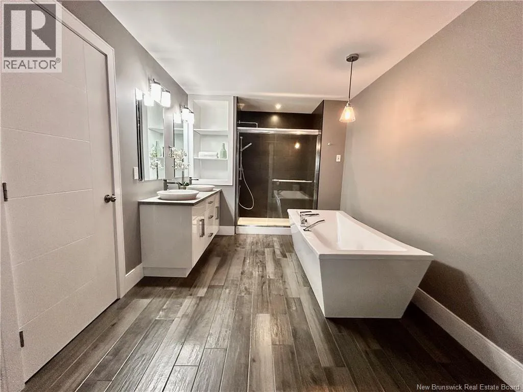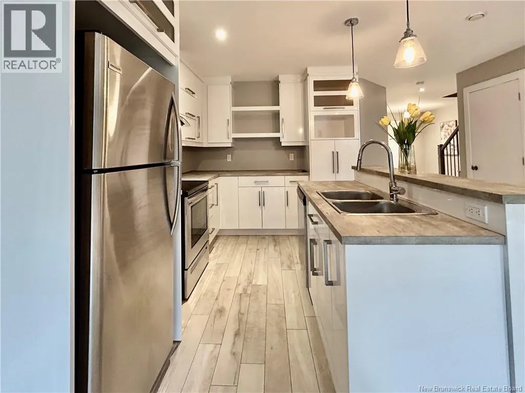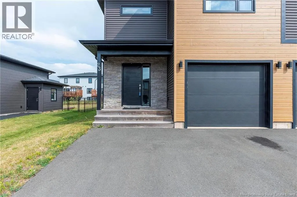 Mountain Rd. to Evergreen Dr. to Hunterwood St., left on to Timandra Crescent. Welcome to 23 Timandra Cres, located in Moncton North close to schools, the YMCA, and walking trails, featuring a GEOTHERMAL HEATING AND COOLING system making this home a smart choice for comfort and savings. From the moment you arrive, youll be impressed by the homes exterior modern design and curb appeal. This continues as you step into a spacious foyer that opens to a bright, open-concept main floor with a comfortable living room, the dining area has plenty of natural light, and the kitchen is modern and designed for function. The island with breakfast bar is perfect for family gatherings, while the electric fireplace with a striking stone surround adds a cozy focal point. A convenient 2-piece bath completes this level. Upstairs, youll find three good sized bedrooms, including a primary suite with an oversized walk-in closet. The contemporary 5 pc main bath is a wow factor, features a relaxing soaker tub ideal for unwinding after a long day. ***PLEASE NOTE PROPERTY TAXES ARE HIGH AS THE ASSESSMENT IS BASED ON ONE PID AND BOTH UNITS, THIS WILL LOWER ONCE SOLD*** Dont miss your chance to own this modern designed Semi in a sought-after location. Call your REALTOR® today to book your private showing! (id:27476)