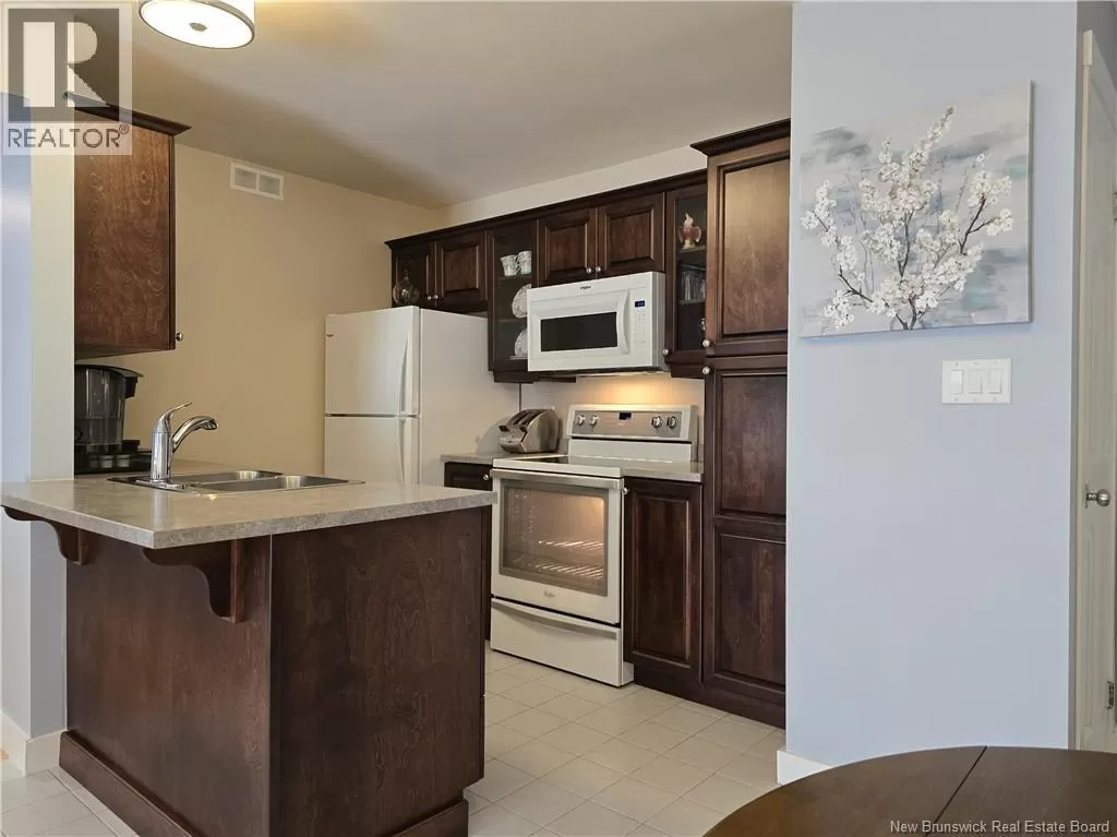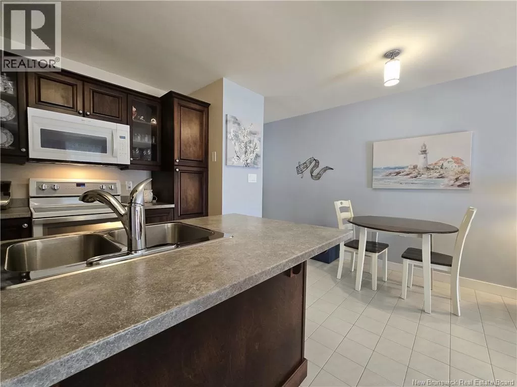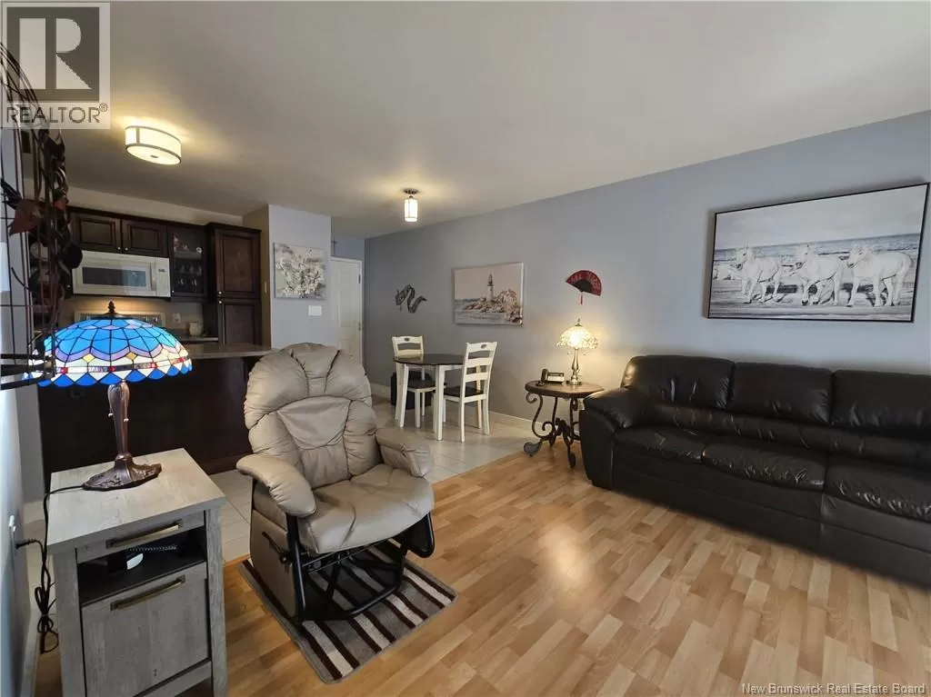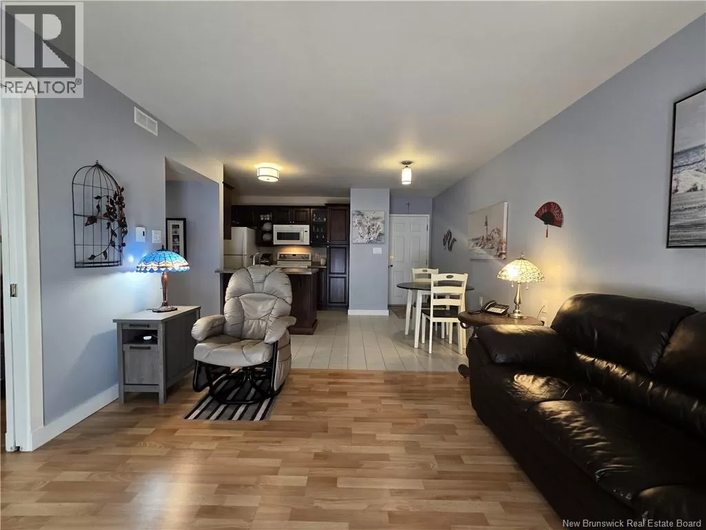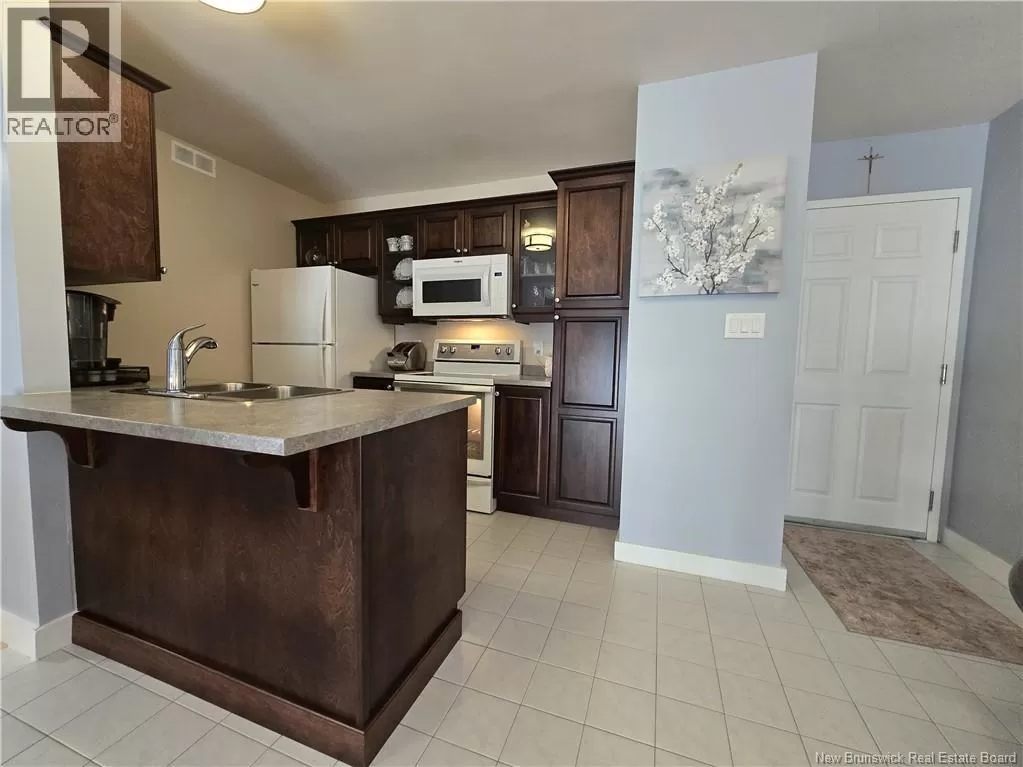 From Elmwood Drive coming from Paul St, Macaleese Lane will be on your right after the Tim Hortons Live within walking distance of convenience stores, pharmacies, restaurants, cafés, and more, and reduce your expenses by not necessarily needing a car for your daily needs! Start your mornings with a coffee on your private balcony, sheltered from view and surrounded by mature trees. Located on the 2nd floor, this bright condo offers an affordable, hassle-free lifestyle. The open-concept kitchen was fully renovated in 2019, including cabinets, countertops, lunch island, dining area, and paint. The sunny living room, facing east, opens to a balcony perfect for enjoying the morning sun. The versatile 2nd room can be used as a bedroom, office, reading room, or creative space, and opens to the main area through French doors. A hallway leads to a full bathroom (countertop and faucets renovated) and an adjoining laundry area. The primary bedroom includes a walk-in closet, perfect for optimizing storage. Two parking spaces (#41 and #46) are included, plus several visitor parking spaces rare in a condo! Condo fees apply, including water, sewer, garbage removal, snow removal, landscaping and exterior maintenance, common areas, and reserve fund. Negotiable inclusions: 6 appliances, air exchanger, and heat pump, all purchased in 2019 (heat pump cleaned in 2024). Peaceful environment with security camera, close to public transit and just minutes from major highways. Quick possession available! (id:27476)