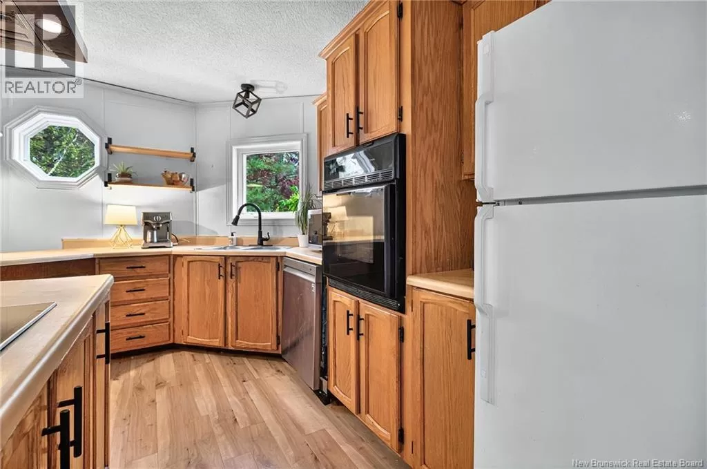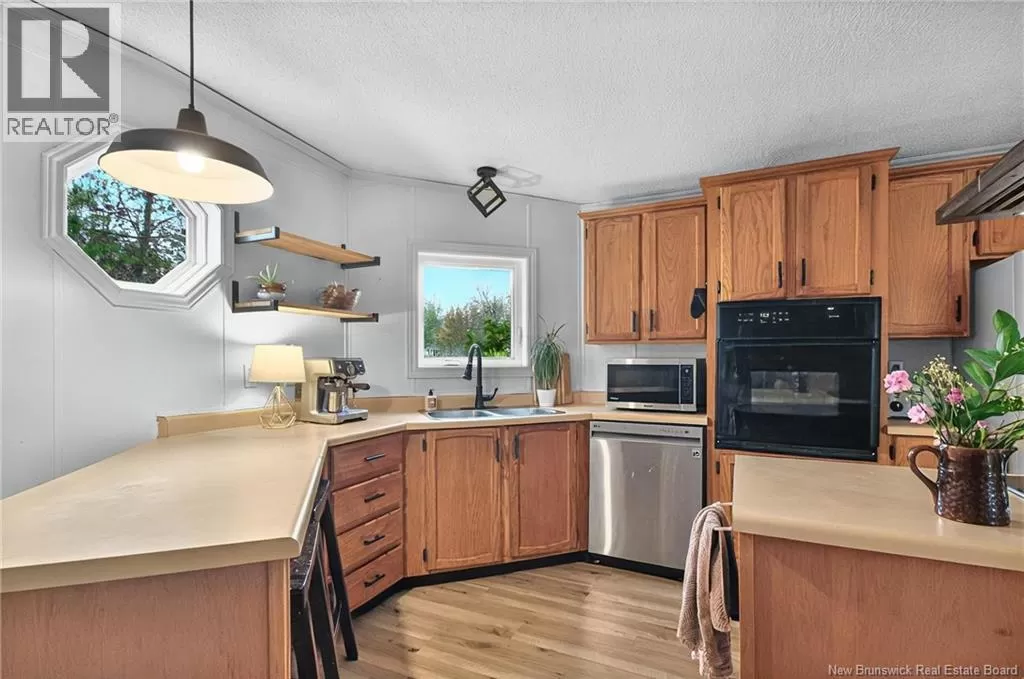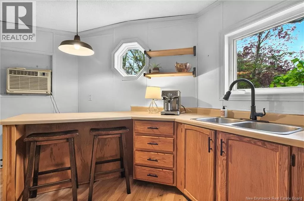 Located in Pine Tree Welcome to this beautifully laid-out mobile home in popular Pinetree Park. You'll immediately appreciate the bright open-concept design, perfect for both everyday living and entertaining. As you enter, a large kitchen sits to your left, offering ample cabinetry and generous counter space. The separate dining area provides a great view into the spacious living room, creating a natural flow that makes the home feel warm and welcoming. At the opposite end of the home, youll find two comfortable bedrooms, including a generously sized primary bedroom with direct access to a large five-piece bathroom. The bathroom features a double vanity, separate shower and bathtub, and convenient access from both the hallway and the primary bedroom. This home also includes two mini-split heat pumps for efficient heating and cooling, as well as an electric fireplace that adds a cozy touch on cooler nights. Outside, theres an 8x10 baby barn for additional storage. This lovely home offers space, comfort, and convenience it could be yours! (id:27476)