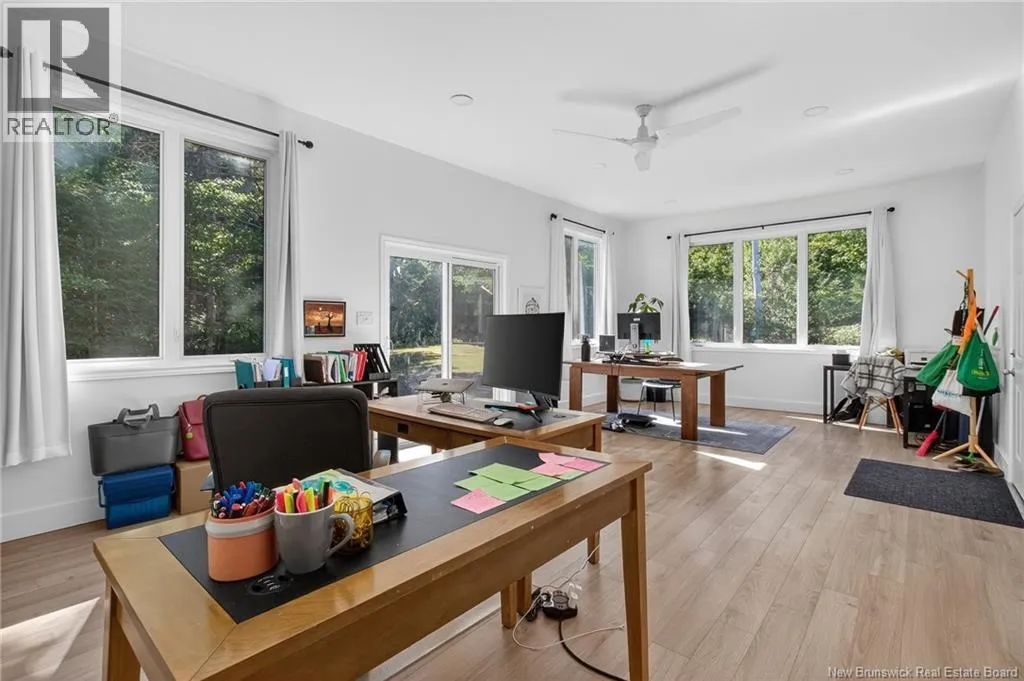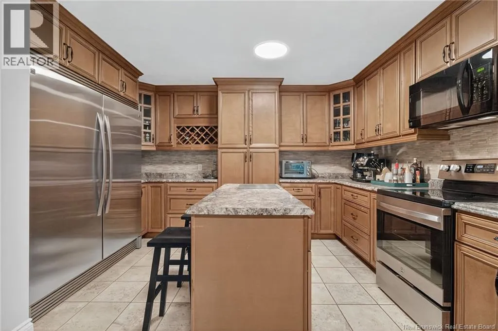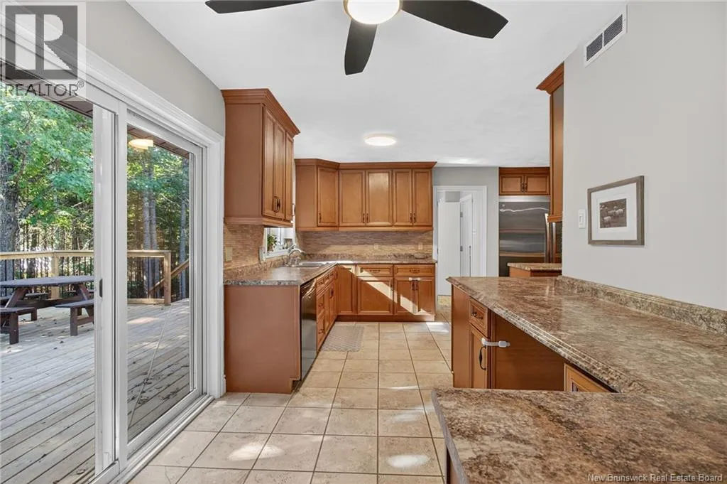 McLaughlin RD, past Ammon Rd, Turn left on Birch Hill Cres, on the corner Tara and Birch Hill. When Viewing This Property On Realtor.ca Please Click On The Multimedia or Virtual Tour Link For More Property Info. This stunning bungalow on a private 2.1-acre lot offers both seclusion and convenience, with oversized windows filling the home with natural light. Youre welcomed into a spacious entryway that opens to a dream kitchen with abundant cabinetry, a built-in commercial fridge, and a large eat-up island perfect for entertaining. Patio doors lead to a private deck surrounded by nature. The dining room features a striking stone accent wall separating it from the cozy living room, complete with a propane fireplace, hardwood floors, and bright windows. The primary suite boasts two walk-in closets and a spa-like ensuite with glass countertop vanity, heated floors, and sleek modern design, while two more bedrooms and another full bath with heated floors complete the main level. The lower level offers a family room, gym with brick wall and decorative fireplace, a fourth bedroom, huge storage, utility room with workbench, wood storage, and roughed-in half bath. Comfort is ensured by a whole-home heat pump. Outdoors, enjoy a detached double garage with two automated doors, a heated office or hobby space, landscaped grounds, two sheds, and a large circular driveway, all surrounded by nature. (id:27476)