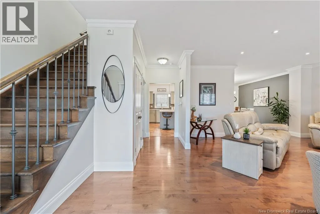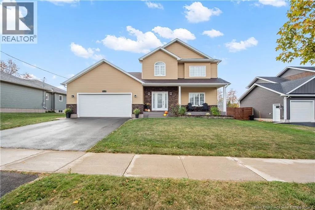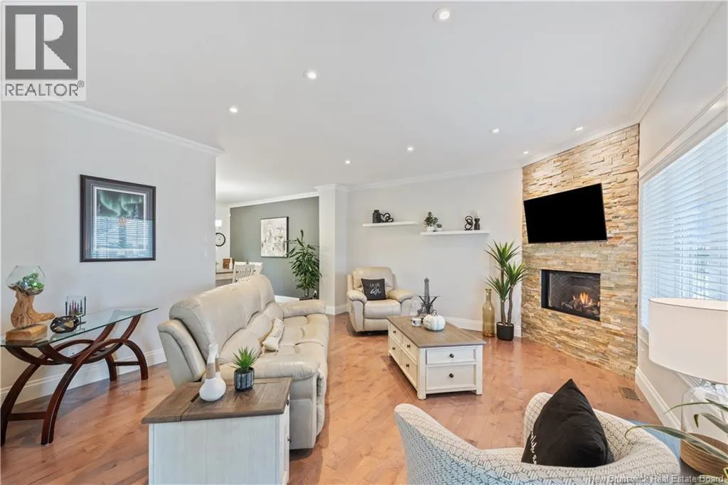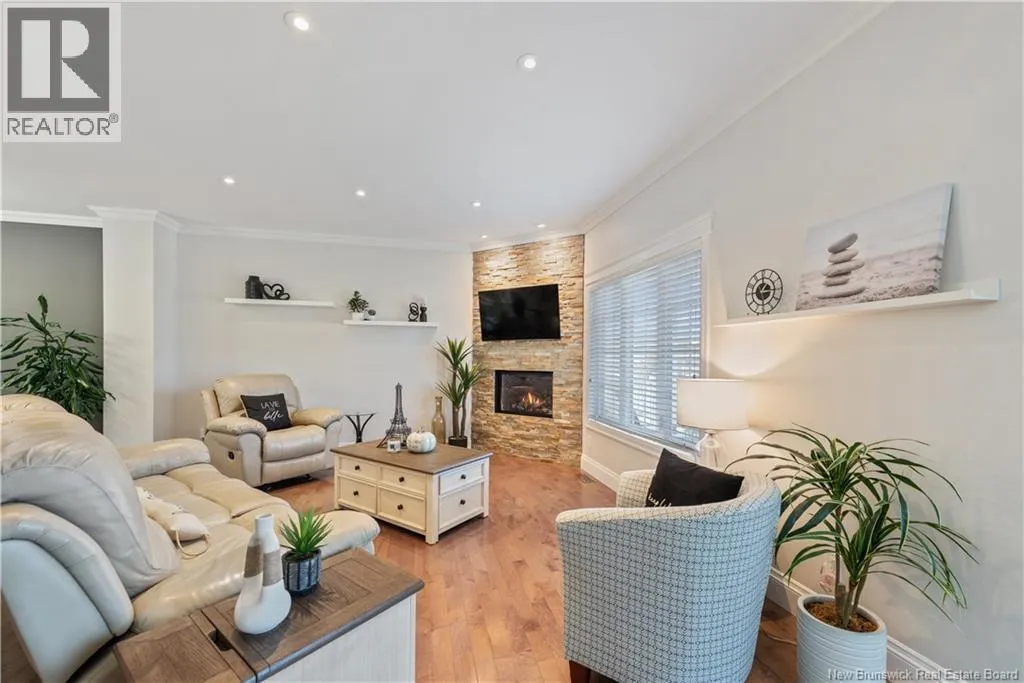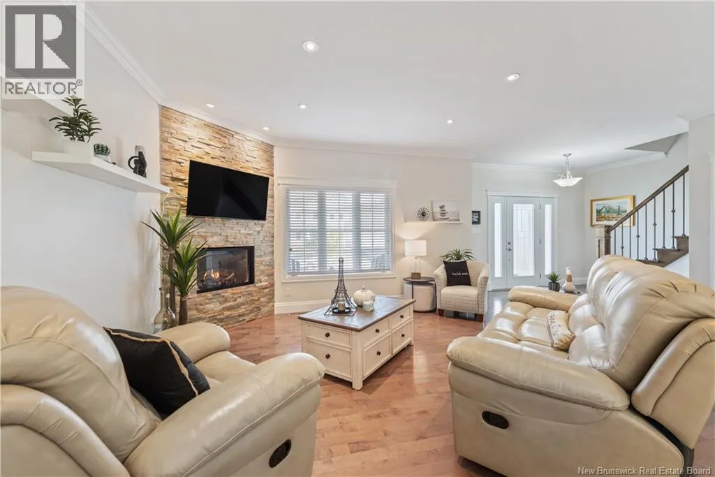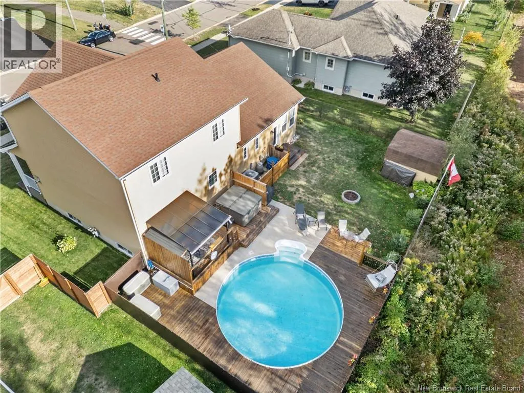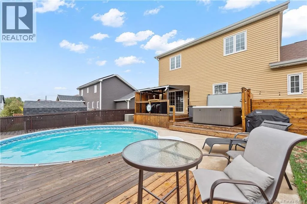 Shediac Rd to Glengrove, turn left Ripplewood and then right onto Erinvale 165 Erinvale is a spacious two-storey 3 bedroom home in the desirable Grove Hamlet subdivision, close to schools, parks, and amenities. The entire interior was freshly repainted last year, giving the home a bright, updated feel throughout. The main level offers a large kitchen with quartz countertops, an extra-large island with generous stone surface and a brand-new KitchenAid induction range. A bright dining area, powder room, fully updated laundry room with new washer and dryer and a beautiful sunroom overlooking the backyard complete this level. The living room features a natural gas fireplace with a stone accent wall, and the double garage provides excellent storage and convenience. The home is also equipped with central air and an owned on-demand natural gas hot water heater and natural gas furnace. Upstairs, youll find three bedrooms and two full bathrooms, including the primary suite with a walk-in closet and updated ensuite. The finished basement includes a spacious TV/games room with in-floor heating, a spare bedroom, and a newly added half bath. Outside, the home offers a new composite front veranda, a fully fenced backyard, a saltwater pool and a brand-new hot tub. Bathrooms throughout have been updated with new cabinets, counters, and sinks, creating a perfect combination of comfort, function and style in one of Monctons most popular neighbourhoods. (id:27476)