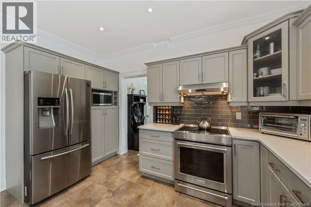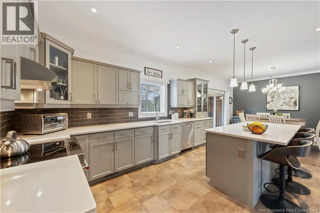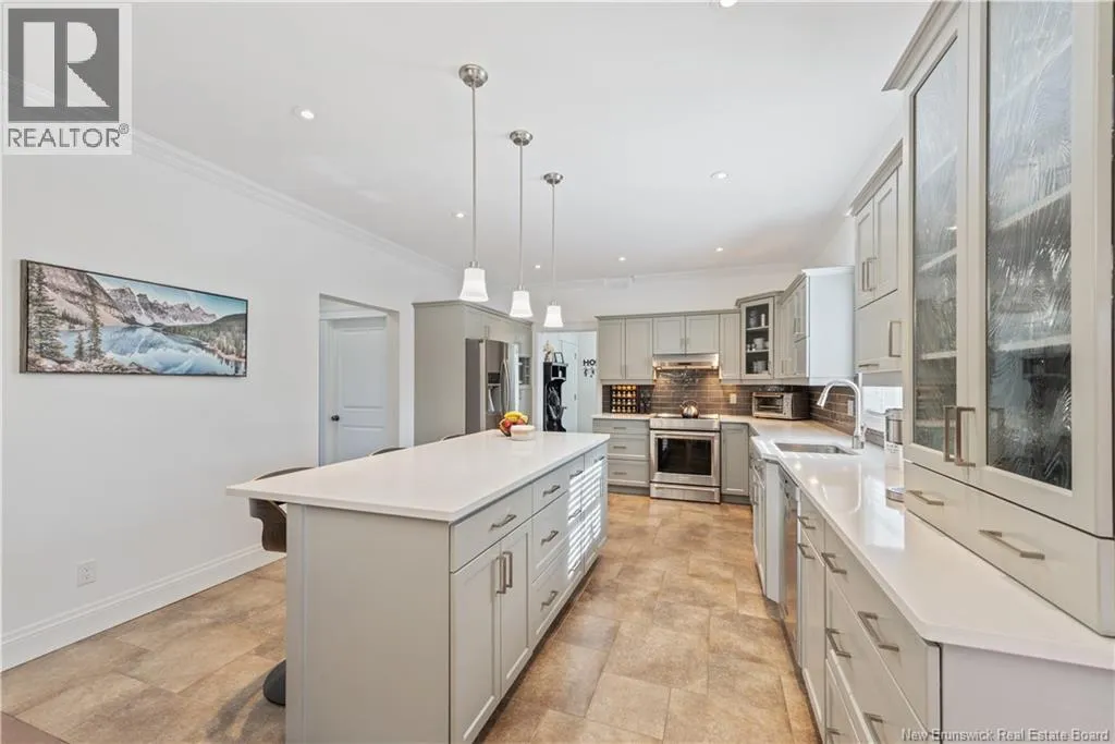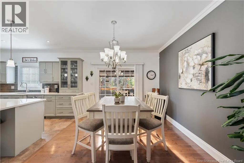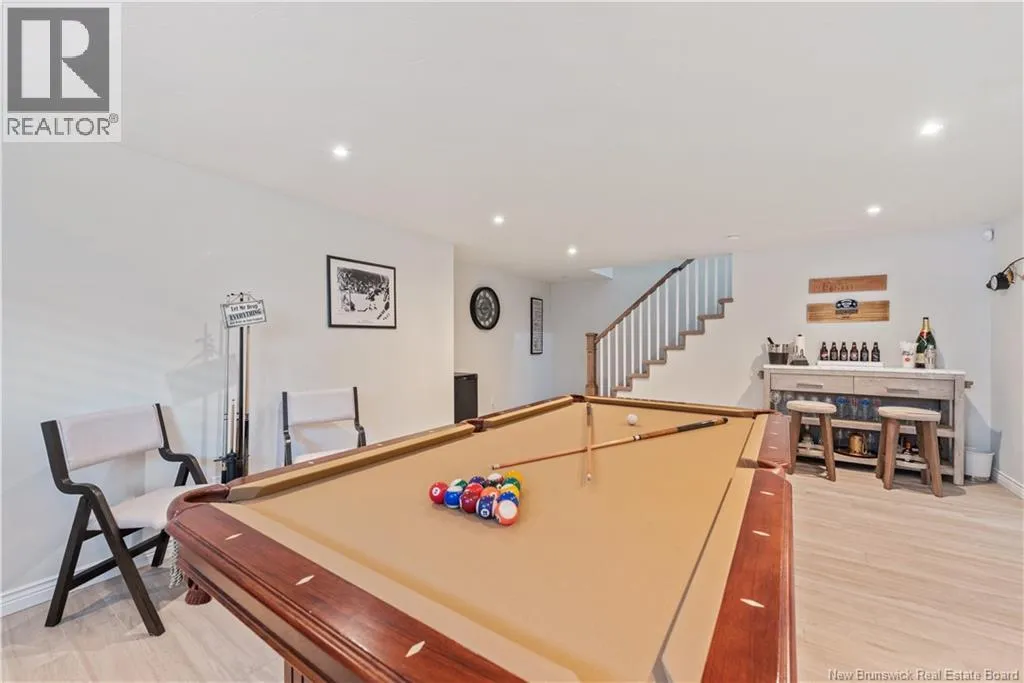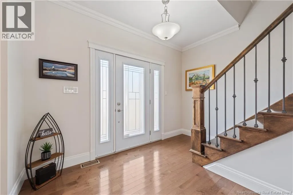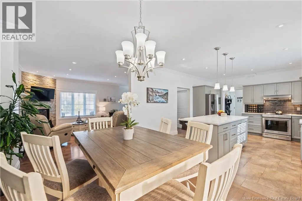 Shediac Rd to Glengrove, turn left Ripplewood and then right onto Erinvale 165 Erinvale is a spacious two-storey 3 bedroom home in the desirable Grove Hamlet subdivision, close to schools, parks, and amenities. The entire interior was freshly repainted last year, giving the home a bright, updated feel throughout. The main level offers a large kitchen with quartz countertops, an extra-large island with generous stone surface and a brand-new KitchenAid induction range. A bright dining area, powder room, fully updated laundry room with new washer and dryer and a beautiful sunroom overlooking the backyard complete this level. The living room features a natural gas fireplace with a stone accent wall, and the double garage provides excellent storage and convenience. The home is also equipped with central air and an owned on-demand natural gas hot water heater and natural gas furnace. Upstairs, youll find three bedrooms and two full bathrooms, including the primary suite with a walk-in closet and updated ensuite. The finished basement includes a spacious TV/games room with in-floor heating, a spare bedroom, and a newly added half bath. Outside, the home offers a new composite front veranda, a fully fenced backyard, a saltwater pool and a brand-new hot tub. Bathrooms throughout have been updated with new cabinets, counters, and sinks, creating a perfect combination of comfort, function and style in one of Monctons most popular neighbourhoods. (id:27476)