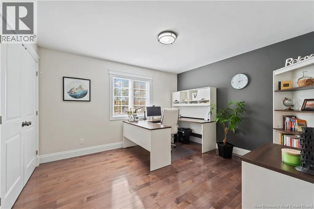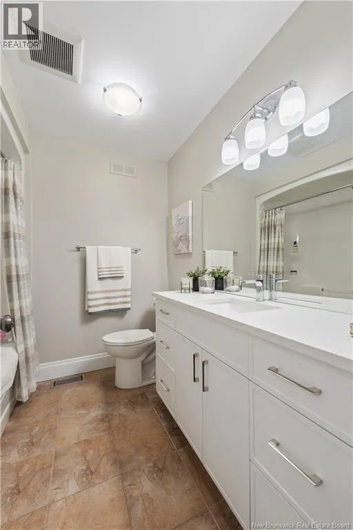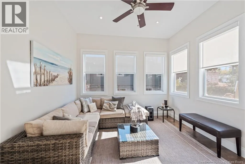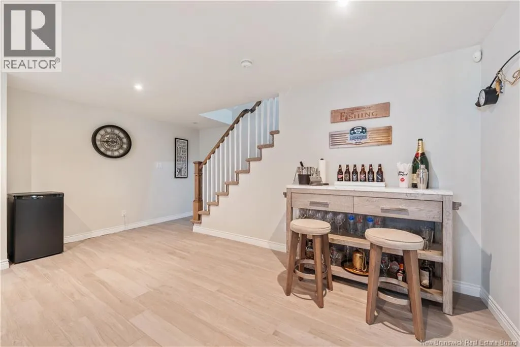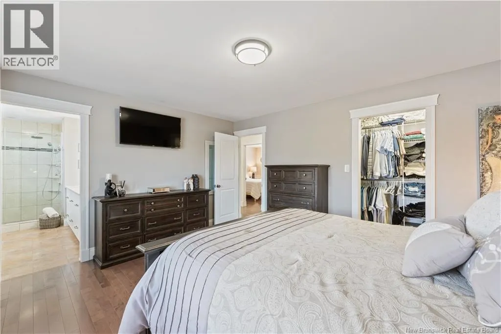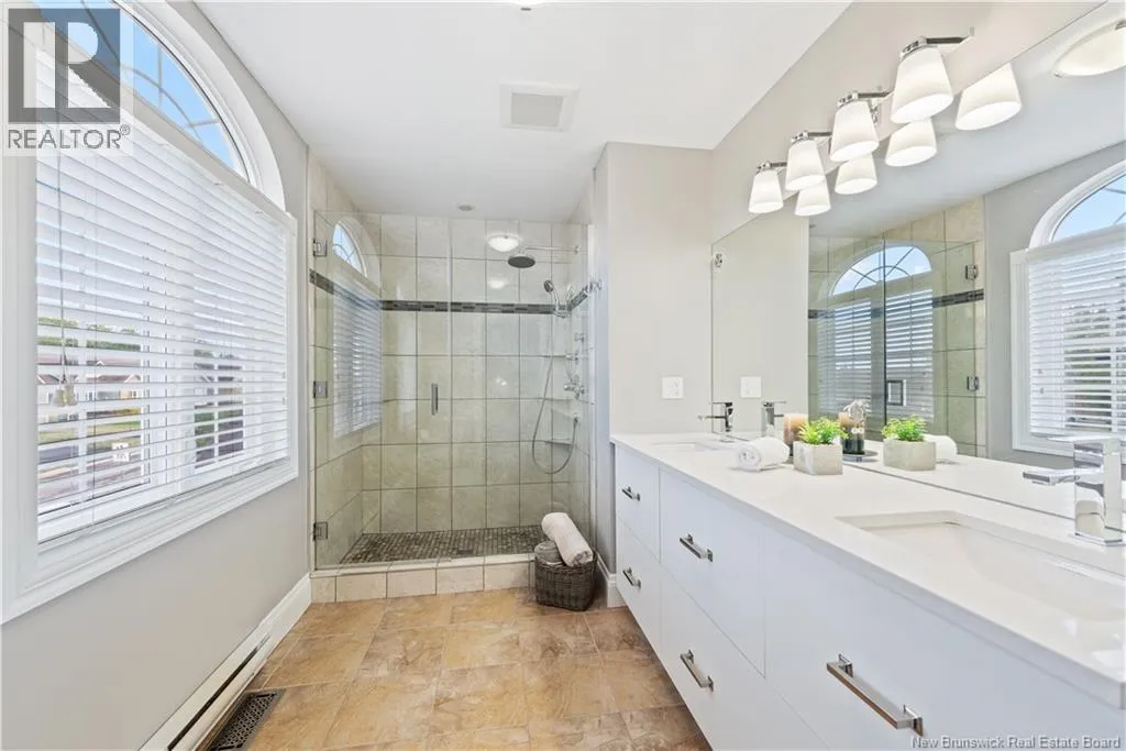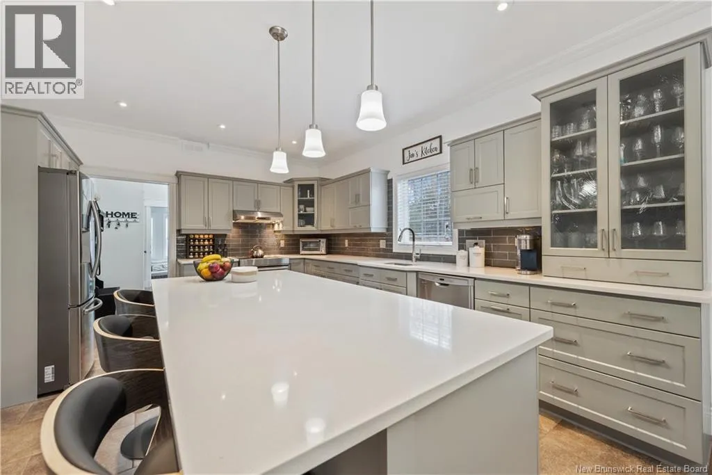 Shediac Rd to Glengrove, turn left Ripplewood and then right onto Erinvale 165 Erinvale is a spacious two-storey 3 bedroom home in the desirable Grove Hamlet subdivision, close to schools, parks, and amenities. The entire interior was freshly repainted last year, giving the home a bright, updated feel throughout. The main level offers a large kitchen with quartz countertops, an extra-large island with generous stone surface and a brand-new KitchenAid induction range. A bright dining area, powder room, fully updated laundry room with new washer and dryer and a beautiful sunroom overlooking the backyard complete this level. The living room features a natural gas fireplace with a stone accent wall, and the double garage provides excellent storage and convenience. The home is also equipped with central air and an owned on-demand natural gas hot water heater and natural gas furnace. Upstairs, youll find three bedrooms and two full bathrooms, including the primary suite with a walk-in closet and updated ensuite. The finished basement includes a spacious TV/games room with in-floor heating, a spare bedroom, and a newly added half bath. Outside, the home offers a new composite front veranda, a fully fenced backyard, a saltwater pool and a brand-new hot tub. Bathrooms throughout have been updated with new cabinets, counters, and sinks, creating a perfect combination of comfort, function and style in one of Monctons most popular neighbourhoods. (id:27476)