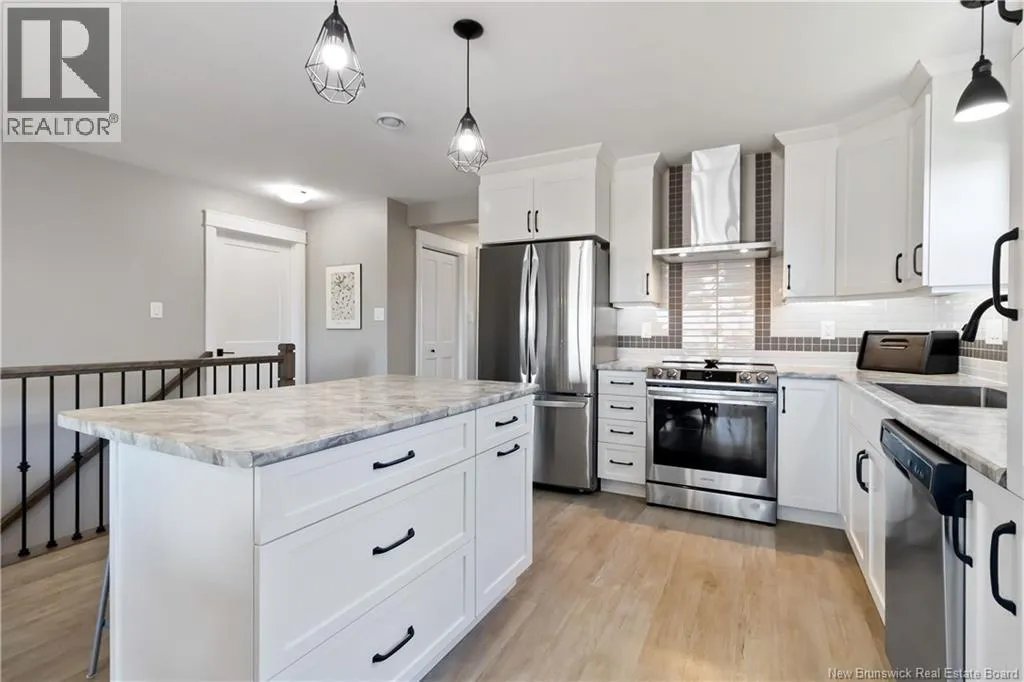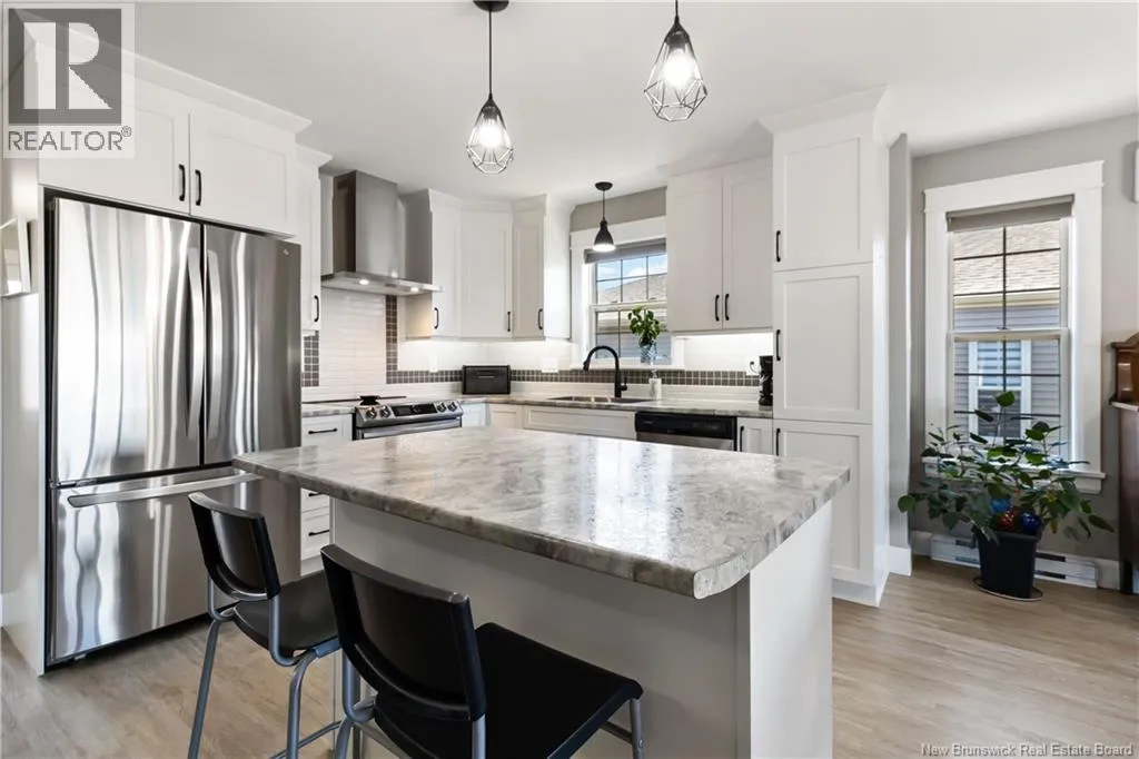 Shediac Road tun onto Weston to Clover, left on Northumberland EXECUTIVE SEMI-DETACHED WITH WALK-OUT BASEMENT Add a little zest to your life and step into this high-quality WESCO-built executive semi-detached home in Meadowlake Estates. This thoughtfully designed one-level living home offers over 2,000 sq. ft. of well-planned space, complete with an attached garage and a finished walk-out basement. The open-concept main level features a walk in pantry, stylish white custom kitchen with a central island, seamlessly flowing into a spacious dining and living area. Stunning triple sliding doors open to the back deckperfect for entertaining or relaxing. The landscaped backyard is fully fenced and leveled for privacy, with concrete stone pathways adding both style and convenience. The main floor includes two bedrooms, one with double pocket doors and a charming bay window, plus a primary suite with walk-in closet and private ensuite. A main half bath with laundry adds everyday convenience. Built with exceptional craftsmanship, this home features a hip roof, stone front exterior, covered front porch, bump-outs in the living and dining rooms, and blueboard and plaster construction throughout. The walk-out basement provides additional living space, including a spacious family room, two more bedrooms, and a full bathroomperfect for guests or extended family. Enjoy modern comfort, elegant design, and a low-maintenance lifestyle in one of Monctons most desirable communities. (id:27476)