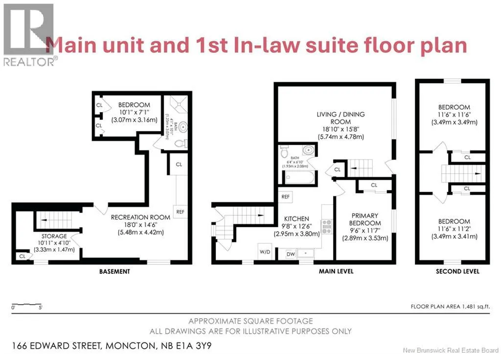 hosue number 166 on edward street 3 UNITS! GREAT INVESTMENT OPPORTUNITY WITH MANY RECENT UPGRADES! 166 Edward Street is a storey-and-a-half home featuring two non-conforming in-law suites, ideally located in a great neighbourhood offering excellent rental potential. All three units are connected, providing flexibility to use the home as a single-family residence, a two-unit, or a three-unit property. The main unit includes three bedrooms, a spacious living room with a mini split unit installed, a bedroom on the main floor, a 4-piece family bathroom, and an eat-in kitchen. Upstairs are two good-sized bedrooms. Both in-law suites have separate entrances from the back. The first in-law suite offers an open-concept kitchen and living room in the basement, along with a full bathroom and a non-conforming bedroom. The second in-law suite features the living room and bathroom on the main floor, with the non-conforming bedroom and kitchen in the basement - a layout that provides great convenience and privacy. The large backyard includes a 10x16 storage barn, and the property also offers a huge paved driveway with ample parking. The home sits on a generous lot and is ideally located near shopping, Elmwood Drive, Université de Moncton, and bus stops, making it an excellent choice for tenants. Live in one unit and rent out the others to help pay the bills, or enjoy the flexibility of having extended family close by while maintaining your privacy. (id:27476)