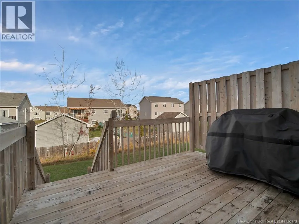 127 Coriander, Moncton FIRST HOME BUYERS! MONCTON NORTH // TOP RATED SCHOOL // BUILT BY TRUSTED BUILDER MARTELL // CATHEDRAL CEILING. Welcome to this beautifully designed open-concept home, built by the trusted Martell Home Builders. The main floor offers a mudroom with high ceiling, a lovely kitchen featuring a central island and elegant panel cabinets, and a living room with hardwood floors and cathedral ceilings. The dining area overlooks a private backyard with a 10x12 deck and 6-ft privacy wall, perfect for relaxing or entertaining. A half bath with laundry completes the main level. Hardwood stairs lead to a spacious master bedroom with double-wide closet and a full bathroom. Nestled in one of Moncton Norths most desirable neighborhoods, this home is close to top-rated schools Evergreen Park and Bernice McNaughton, as well as all essential amenities. A wonderful place to call home! (id:27476)