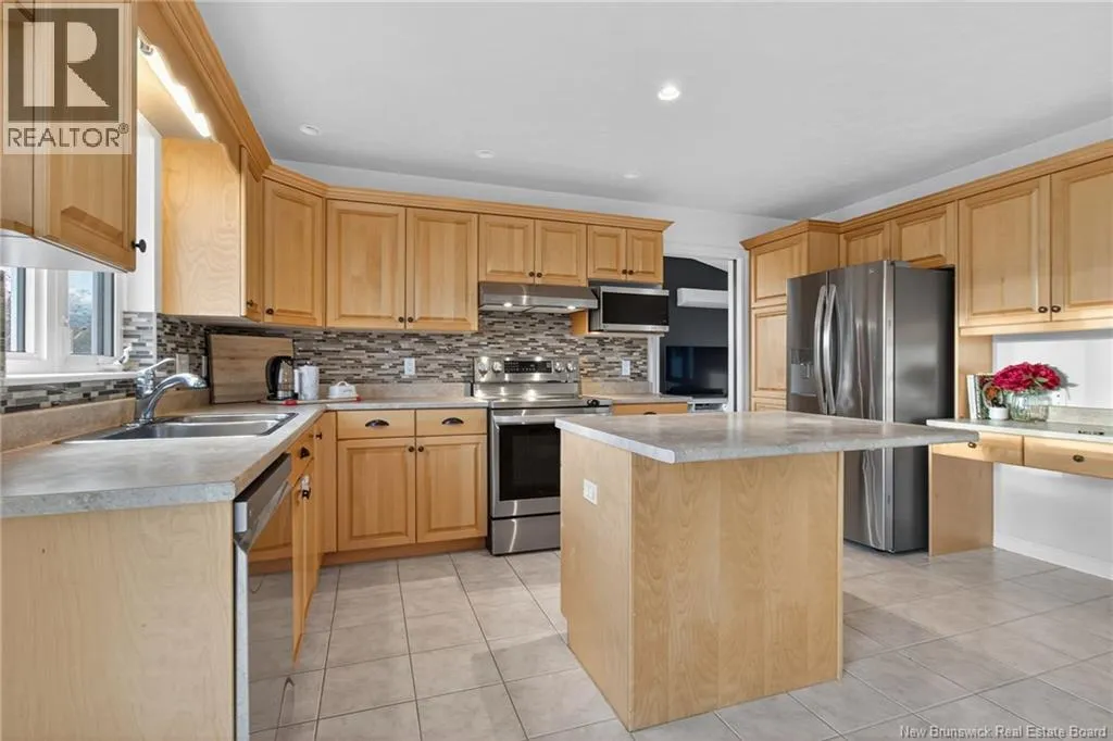 From Horsman Rd about take Twin Oaks ( Past YMCA ) Welcome to 162 Twin Oaks Drive, located in desirable Moncton North and offering the advantage of a fully finished in-law suite. As you enter, the spacious foyer and vaulted ceilings make a striking first impression. The main living and dining areas feature cathedral ceilings, creating a bright and versatile layout that suits both everyday living and entertaining. The kitchen provides ample cabinetry, an island ideal for busy family life. A bright den/office completes the main level, perfect for work or relaxation. Upstairs, youll find a generous primary bedroom with a walk-in closet and private ensuite, along with two additional bedrooms, a second full bathroom, and the convenience of upper-level laundry. The lower level offers valuable flexibility. Whether used as part of the main home or as an in-law suite, it includes a full kitchen, living area, bedroom, second laundry, full bath, and a separate side entrance for privacy and independence. Outside, enjoy a backyard that backs onto Moncton Norths popular walking trail, providing a peaceful outdoor setting with direct natural access. Youll also appreciate the proximity to schools, daycares, the YMCA, and all amenities. A rare opportunity in a sought-after locationthis home combines comfort, function, and uniqueness. (id:27476)