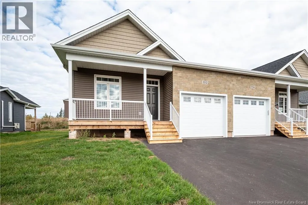 Elmwood Drive to the Royal Oaks North entrance @ Royal Oaks Boulevard NOW BUILDING PHASE V!!! ROYAL OAKS-LIVING YOUR BEST LIFE! Quality One Level Living with Garage by ROYAL OAKS HOMES, in Collaboration with Satinwood Home Creations. This unit is complete and backs onto the newly announced next Phase of development. This is your opportunity to SIMPLIFY YOUR LIFE AND ENHANCE YOUR LIFESTYLE! This unit is 1277 sqft (30'6W x 56'L) and the main floor is ideal for hosting Family and Friends, featuring 9ft ceilings and offering a Custom Kitchen with White, Ceiling high cabinets, pantry closet and open to a spacious Dining Room & Living Room with 10ft tray ceiling and sliding door to the Covered Back Deck; self contained main floor laundry room; spacious master with ensuite and walk-in closet; plus a 2nd bedroom/ Office and a 2nd full bath. The high-quality finishes will not disappoint & the space this home offers allows you to downsize without parting with the things you love. Also includes a covered front porch and back deck; electric baseboard heating with Ductless Heat Pump/AC; downstairs is roughed-in for a 3rd bathroom & offers room for a family room and 2 additional rooms with egress conforming windows. 7 Yr New Home Warranty. HST incl. in price (if owner occupied) with rebate to Seller. Landscaped front & back lawns and paved driveway. Tax Assessment and Property taxes will be updated by SNB following completion. Taxes indicated are based on non-owner occupancy. Owner occupied rate is 50% less. (id:27476)