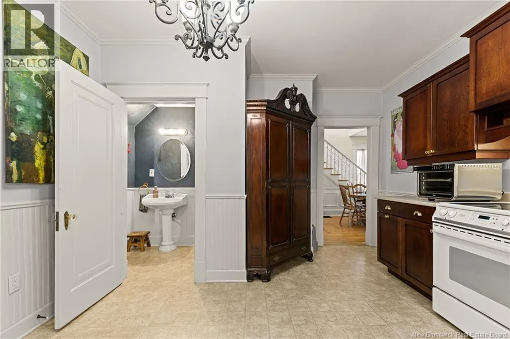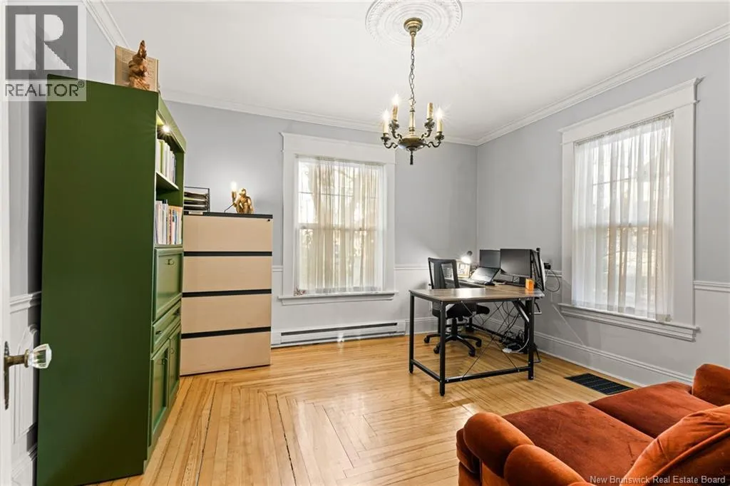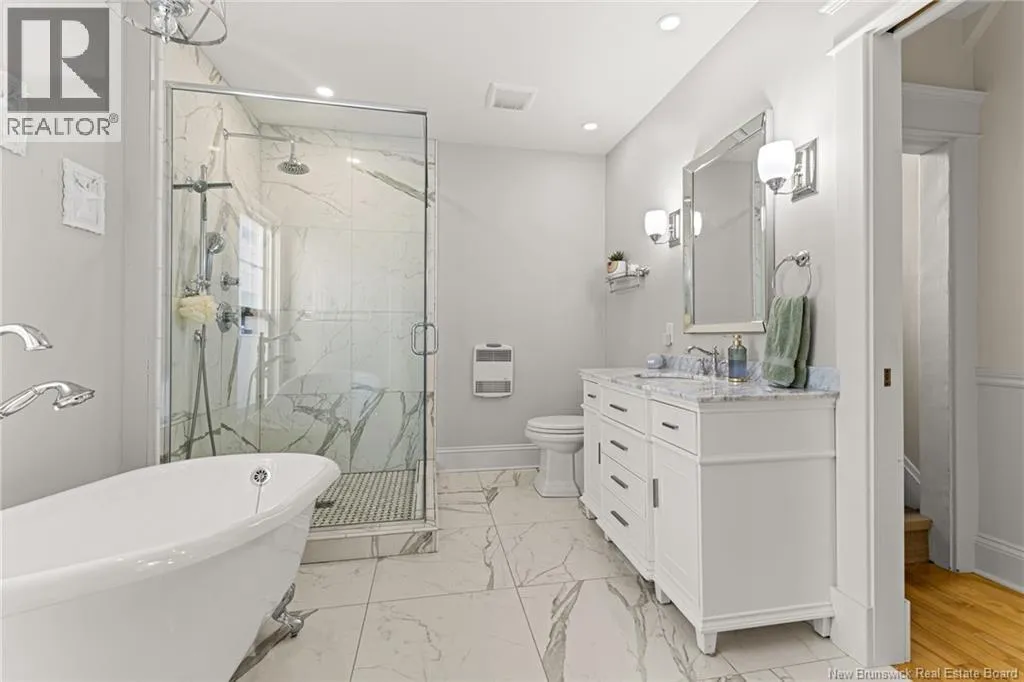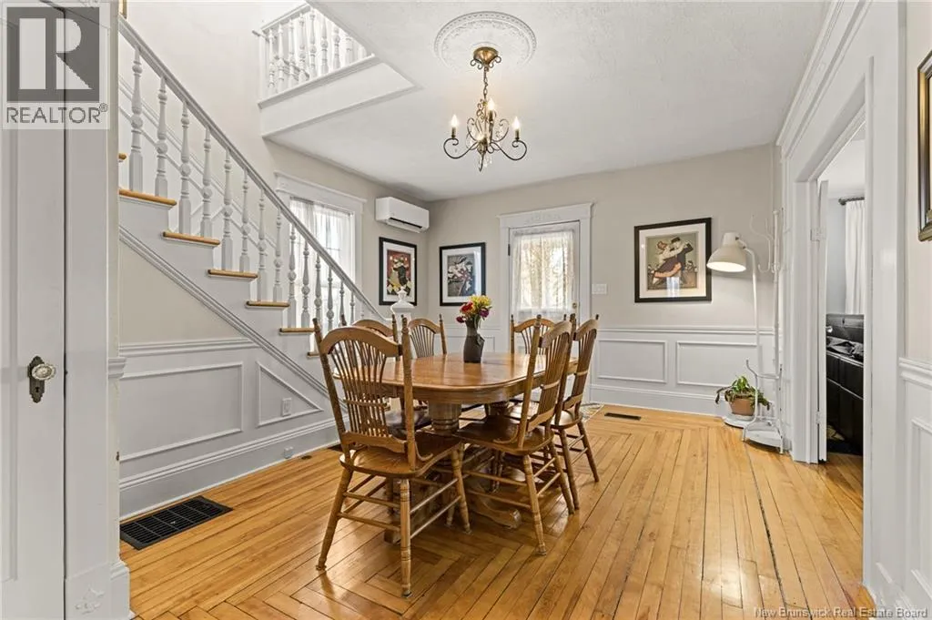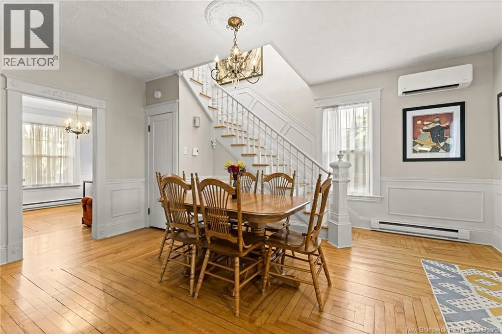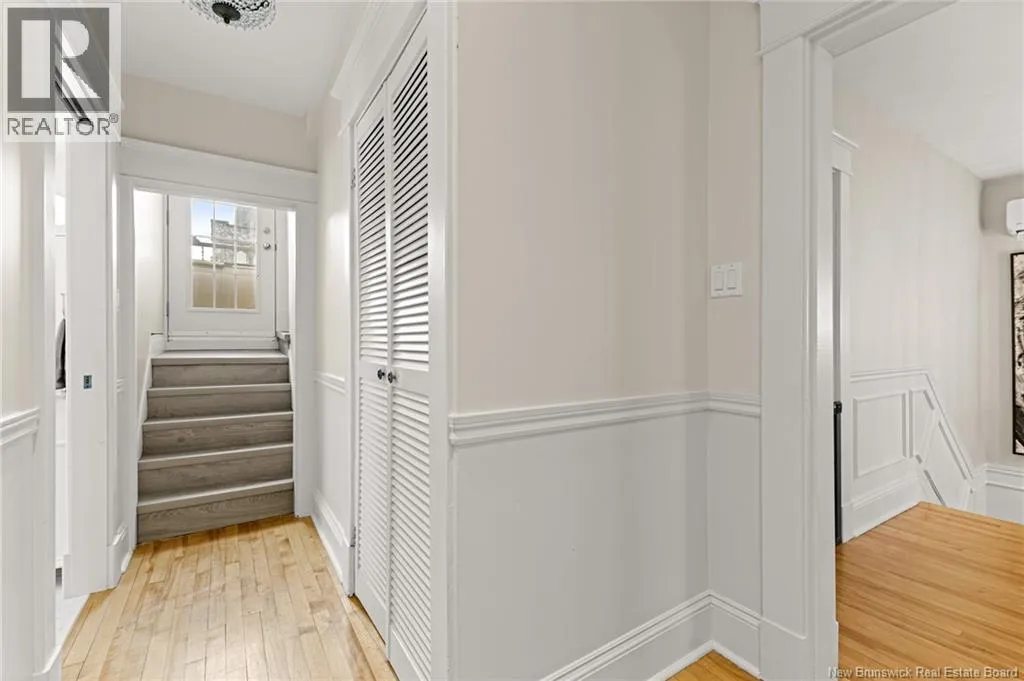 On the corner of Bonaccord and Park St. *** CHARMING DOWNTOWN 2.5 STOREY // CORNER LOT // 4 NEW MINI-SPLITS/ TOP LEVEL BALCONY // FENCED BACKYARD // REFINISHED LOFT // COMPOSITE FRONT DECK *** Welcome to 158 Bonaccord, located in the heart of downtown Moncton close to all amenities. Character embraces you in the foyer/dining area with BEAUTIFUL WAINSCOTTING and DECORATIVE ACCENTS and through FRENCH DOORS to the living room highlighted by plenty of windows, and PROPANE FIREPLACE. Also on this level are a NEW mini-split, 2pc powder room, formal dining room currently used as an office with NICE MOULDINGS, and an eat-in kitchen with DARK STAINED CABINETRY and door to the LARGE PATIO overlooking the FENCED BACKYARD with baby barn and nice flowers and shrubs. Ascend the WINDING STAIRCASE TOUCHED BY WAINSCOTTING to the second floor where youll find another new MINI-SPLIT, an OPEN, COZY SITTING NOOK, big LINEN CLOSET with lots of storage, spare bedroom with 2 closets and primary bedroom with WALK-IN CLOSET leading to the STYLISH 4pc bathroom with CUSTOM TILED SHOWER and CLAWFOOT TUB. Keep on going to discover two RARE GEMS for older Moncton homes - a TOP LEVEL PATIO WITH LOVELY VIEW, AND REFINISHED AND FRESHLY PAINTED LOFT WITH NEW FLOORING, NEW MINI-SPLIT, POT LIGHTS, SKYLIGHT, LIVING ROOM/OFFICE/PLAY ROOM, and 3RD BEDROOM WITH LARGE WALK-IN CLOSET, SKYLIGHT and VIEW OF THE CATHEDRAL. The basement is fully drywalled and has MINI-SPLIT, LAUNDRY WITH WASH SINK, INTERIOR DRAIN TILE, NEWER PLUMBING AND HUMIDEX. A must see! (id:27476)