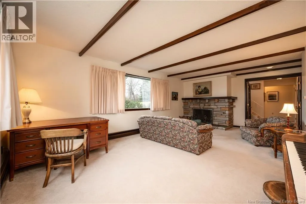 Take Mount Royal either from Saint George Blvd or Main St to 200 Mount Royal. Corner of Mount Royal and Westmount Blvd Welcome to an exceptional opportunity in Monctons coveted West End where timeless charm meets comfort! This beautifully maintained home sits in one of the citys most desirable neighbourhoods and delivers the perfect blend of family living and effortless entertaining. Step inside to an inviting upper level where sunlight pours through picture windows, offering views of Jones Lake. The spacious living room with a classic wood-burning fireplace flows into the open dining area and well appointed kitchen. Off the kitchen, a bright sunroom and adjacent balcony create the perfect setting for morning coffee, evening gatherings, or simply unwinding. The main level features three bedrooms and two full bathrooms, including a primary with ensuite, plus a convenient laundry room with direct backyard access. The lower level offers two additional bedrooms, a full bathroom, and a large family room also with a wood burning fireplace. With plenty of natural light thanks to its grade level design, this floor feels warm and inviting. A double garage and generous storage complete the layout. A modern heat pump ensures efficient heating and cooling, complementing the original system for year round comfort. Lovingly cared for by the same family since 1968, this home offers pride of ownership, character, space, and an unbeatable location. Homes like this rarely become available dont miss your chance to own in one of Monctons most sought after neighbourhoods! (id:27476)