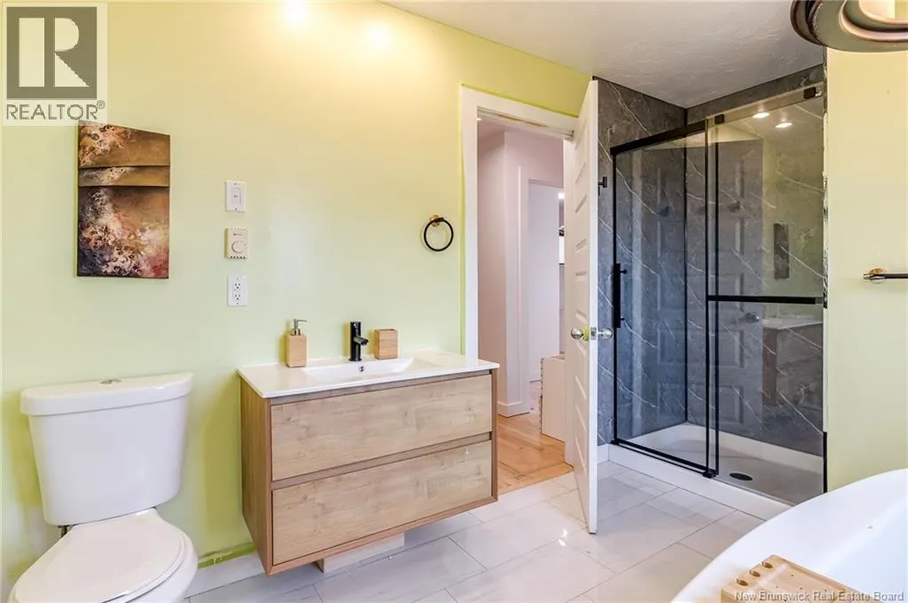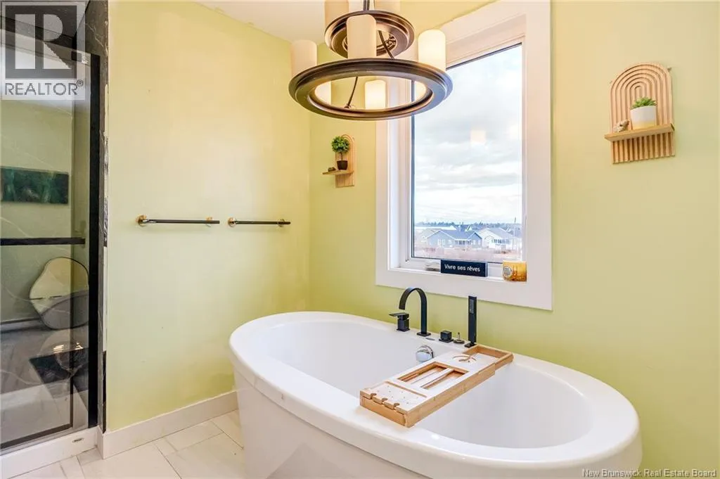 From Shediac Road, turn onto Gagnon Drive, then onto Jasmine Crescent. Welcome to 74 Jasmine, a well-maintained 2-storey semi in one of Monctons most desirable and family-friendly neighbourhoods. Featuring ceramic and hardwood floors throughout and baseboard electric heating, this home offers a bright, comfortable layout perfect for a couple, first-time buyers, or a young family. The main floor includes a spacious living room with plenty of natural light, a functional kitchen with generous cabinet space, and a dining area with patio doors leading to the backyard. A convenient 2pc bath with laundry completes this level. Upstairs offers a large primary bedroom with walk-in closet, two additional bedrooms, and a full 4pc bathroom. The partial finished basement adds valuable living space with a cozy family room and a extra bedroom. Located in the heart of Grove Hamlet, youre close to several parks and walking trails, making this an excellent home for comfortable and convenient living. (id:27476)