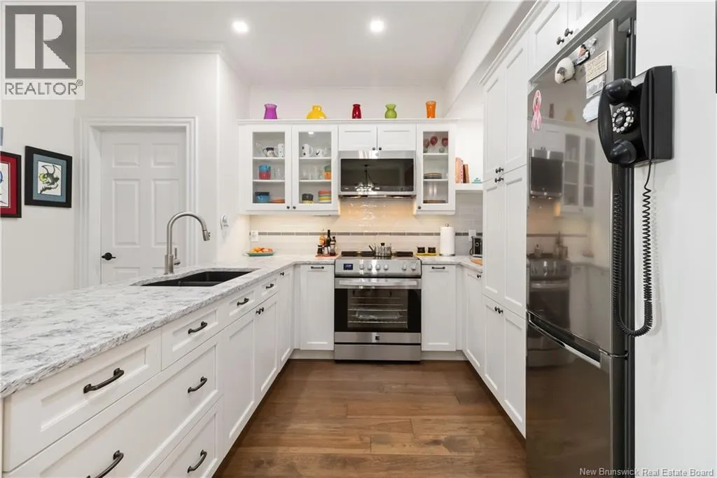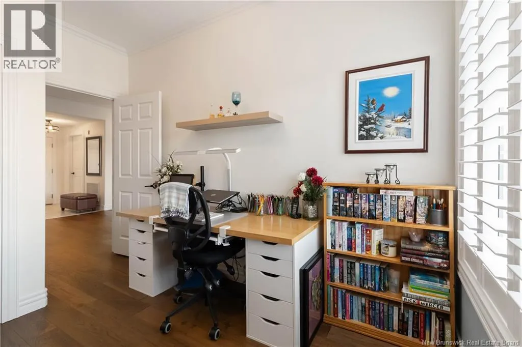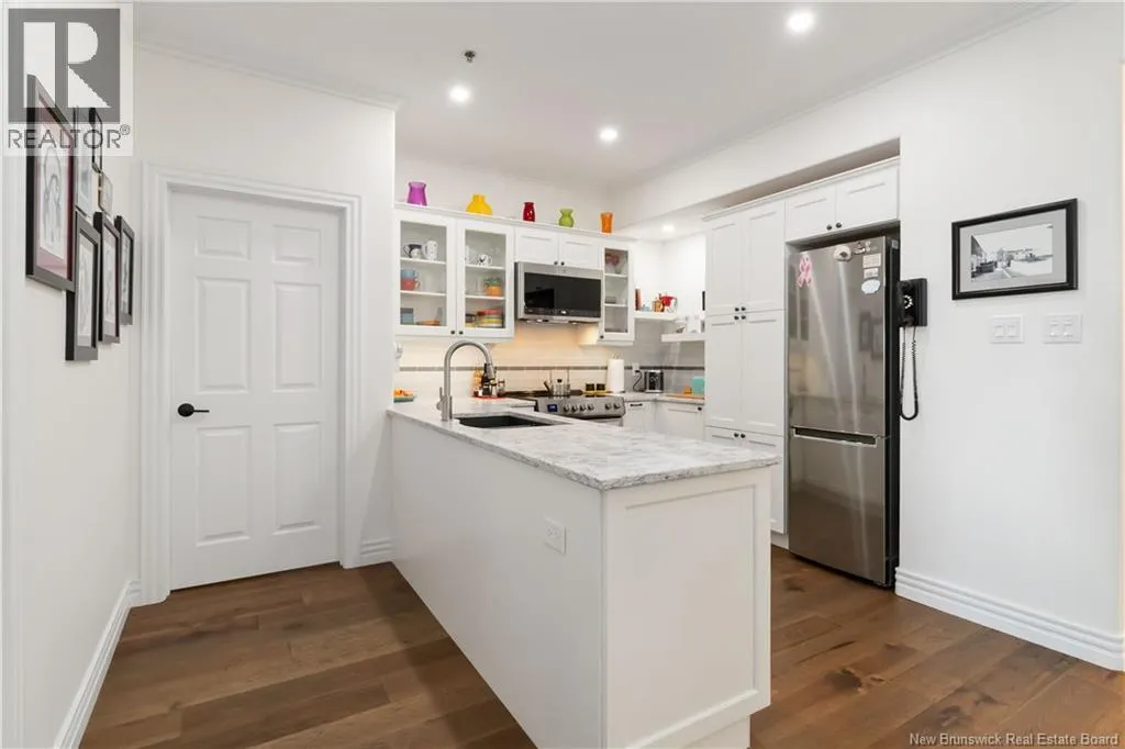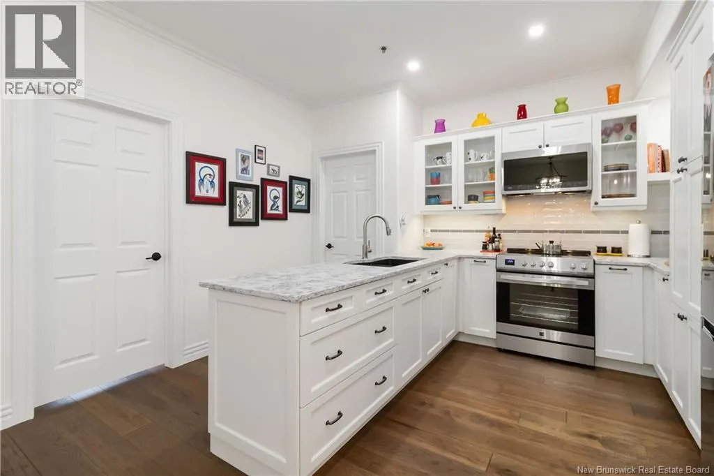 St George to Vaugh Harvey, to Gordon st, Cameron is off Gordon Luxurious Downtown Living in the Heart of Moncton! Located just steps from Monctons vibrant city center, this beautifully renovated condo is within minutes of top-rated restaurants, cafés, shopping, parks, walking paths, transit, and the Avenir Centre. Enjoy the perfect blend of modern comfort and urban convenience. Impressive & expansive open-concept layout, offering exceptional space for living, dining, and entertaining. The custom-designed ergonomic kitchen features thoughtful organization throughout, including pull-out shelves, pantry systems, clever storage solutions, and modern appliances...ideal for those who love both style and function. The kitchen opens seamlessly into the elegant dining area and spacious living room, highlighted by tasteful custom décor and abundant natural light. The luxurious primary bedroom suite, includes a stunning ensuite and direct access to the private outdoor balconyyoull also find a generously sized second bedroom, a versatile den/bedroom, and a second full bathroomoffering privacy and convenience for guests or family. This meticulously upgraded unit boasts: Beautiful engineered hardwood and ceramic flooring, Custom lighting throughout, Modern paint palette, Plantation shutters and custom Levollor blinds, 9-foot ceilings, Climate-controlled heating and cooling system. The secure well maintained building boasts exceptional amenities including:, 2nd-floor fitness center, 3rd-floor residents lounge, and Heated underground parking (id:27476)