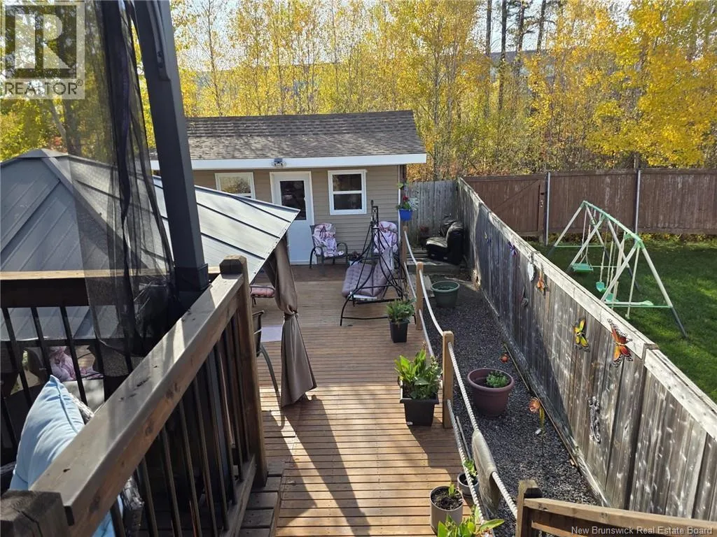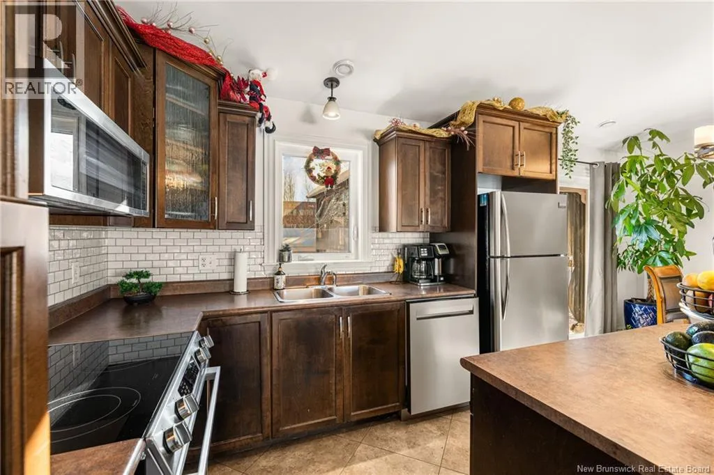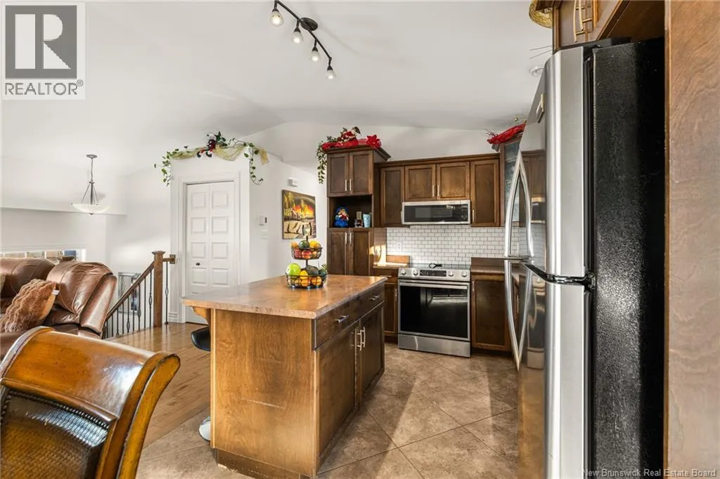 Travelling North on Mountain Road, Tum left onto Maplehurst Welcome to 356 Maplehurst Drive located in popular Moncton North! This home is ready for its new owners. Upon making your way inside you will be greeted with the beautiful entrance which gives you the choice to either go up or down the stairs. Let's start with the main floor and go up a few stairs where you will be pleased with the open concept living room, dining room and kitchen. The dining room offers access to the back deck with patio doors, the kitchen is functional with plenty of dark cabinets, a center Island with extra seating and a very nice backsplash complete the lovely kitchen. The living room is very specious with a mini split heat pump to keep you warm during winter months and cool during summer months. A full bathroom and 3 good size bedrooms complete the main floor. The basement is fully finished with direct access from the double car garage. It offers a large family room, large bedroom and 4 pc bathroom with laundry. Outside you will find a paved driveway, a large deck with a beautiful hot tub set up with a roof top cover and a very nice storage shed with garage door. This one is fenced in and even has a few grown trees. Not to be missed for sure! Amazing Home! Call today to book a viewing! (id:27476)