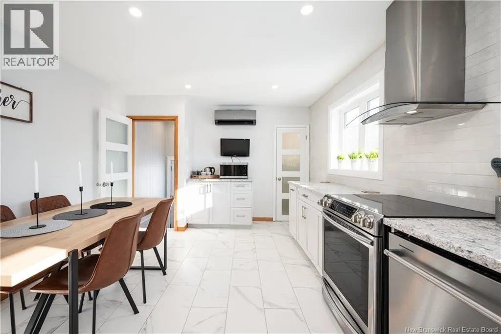 From Mountain Road by the traffic lights directly across from NBCC, turn onto Walker Street, take a left onto Leeside Drive and continue straight onto Parkdale Drive. Welcome to 94 Parkdale Drive! This fully renovated bungalow offers move-in ready comfort with the added bonus of a versatile in-law suiteideal as a mortgage helper or multi-gen living. The bright, airy main floor features a sun-filled living room, a large modern eat-in kitchen with walk-in pantry and stainless steel appliances, three bedrooms, and a full bathroom with laundry. The lower-level suite includes two bedrooms, a full bath, laundry, and a full eat-in kitchen with an open layout to the living room, plus a separate entrance for privacy and flexibility. Upgrades include a new shingle roof (2025), owned 5.25 kW Enphase solar panels (2022), triple-glazed windows, spray-foam basement insulation, and three energy-efficient mini-split heat pumps. Smart-home Z-Wave thermostats, dimmable LED lighting, Roxul soundproofing, and R50 attic insulation add comfort and efficiency. The oversized 24'Ã26' heated and insulated garage (built in 2015) features an EV charger, 220V outlets, and workshop potential. The driveway is a combination of paver stones and asphalt, with a storage shed and retaining wall. Centrally located, youre a 5-min walk to Walmart, NBCC, and the bus depot, with easy access to groceries, shopping, and the highway. Additional highlights include a propane fireplace, dedicated kitchen circuits, smart smoke alarms, and modern finishes throughout. Contact your favourite realtor today to schedule a private showing! (id:27476)