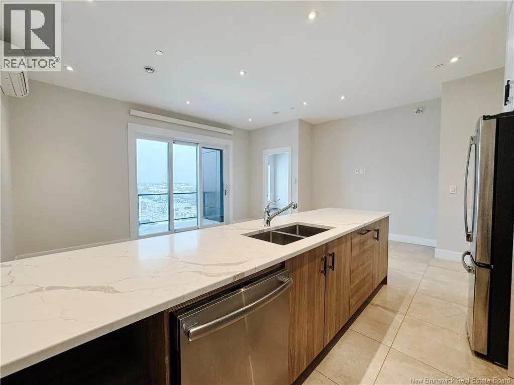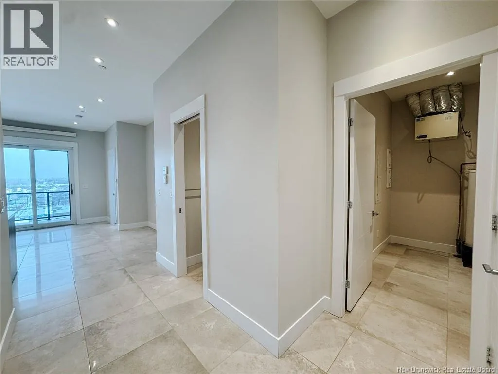 Directly behind City Hall Welcome to 55 Queen, where refined urban living meets everyday convenience. This penthouse condominium offers 975 square feet of thoughtfully designed space with soaring 10 foot ceilings, one generous bedroom, a versatile den, and one and a half bathrooms. Bright north facing exposure fills the home with natural light, while the private balcony provides attractive city views. The unit includes one underground parking space with additional storage and access to a secure 24 hour training center. Residents also enjoy both interior and exterior rooftop terraces, ideal for entertaining or unwinding while taking in some of the best views in the city. Located within one of Monctons most sought after developments, the building places you steps from standout amenities including Gahan House and Bar55 Café on the main level, along with a rooftop bar located on the 9th floor. This is more than a home. It is a lifestyle opportunity in the heart of downtown. Take the 3D tour or contact your REALTOR® today to arrange a private showing. Property taxes are based on non owner occupied status. (id:27476)