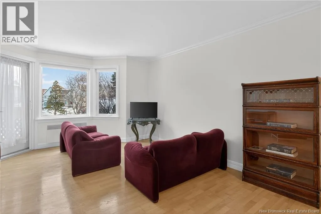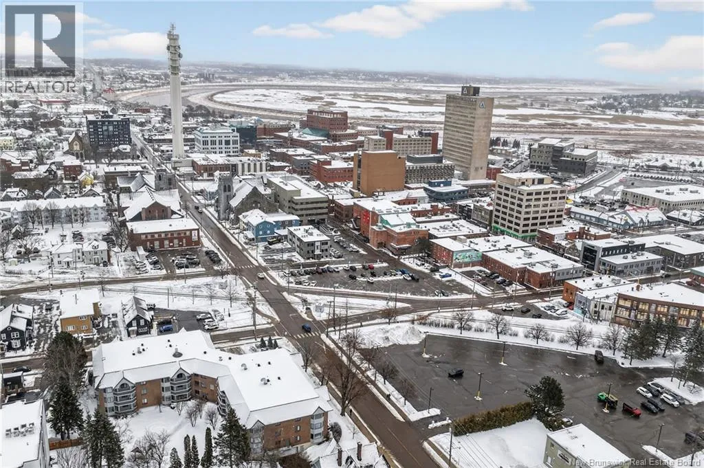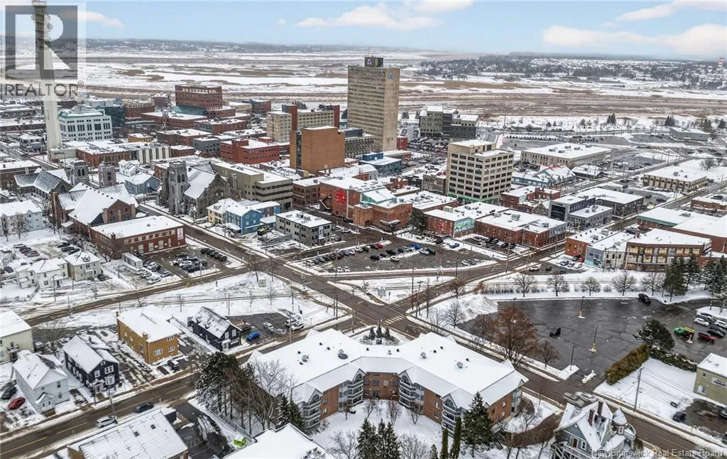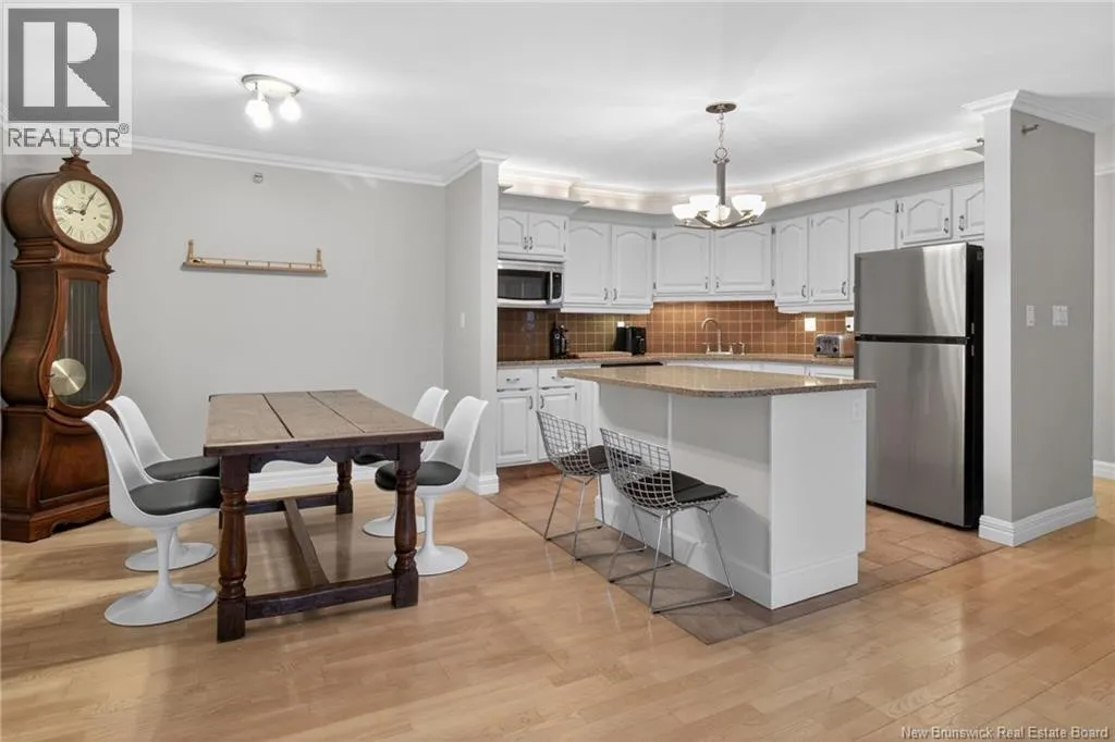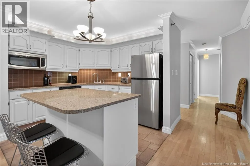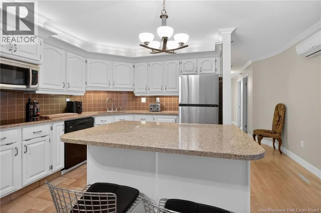 Main Street to Queen Street, located on the corner of Lutz and Queen Discover urban comfort in this charming 2-bedroom condo nestled in Downtown Moncton. Located in a secure and well maintained building, this condo offers a blend of modern amenities and serene surroundings. As you step inside, you're greeted by a beautifully interior featuring crown molding and granite countertops throughout. The spacious living and dining area boasts a bay window, filling the space with natural light and providing a cozy ambiance. For comfort, a mini-split heat pump offers both heating and air conditioning options. The master bedroom includes a convenient walk-in closet with shelving and direct access to the 4-piece bathroom, ensuring privacy and functionality. The second bedroom is generously sized with ample closet space, ideal for guests or a home office. Additional highlights include a dedicated laundry and utility room conveniently located near the bedrooms. Step outside onto the 14'x4' covered deck overlooking a landscaped greenery and a gazebo. With underground parking, a beautifully decorated lobby, and a sprinkler system ensuring safety, this move-in-ready condo provides a perfect blend of comfort, convenience, and style in the heart of Moncton's vibrant downtown. (id:27476)