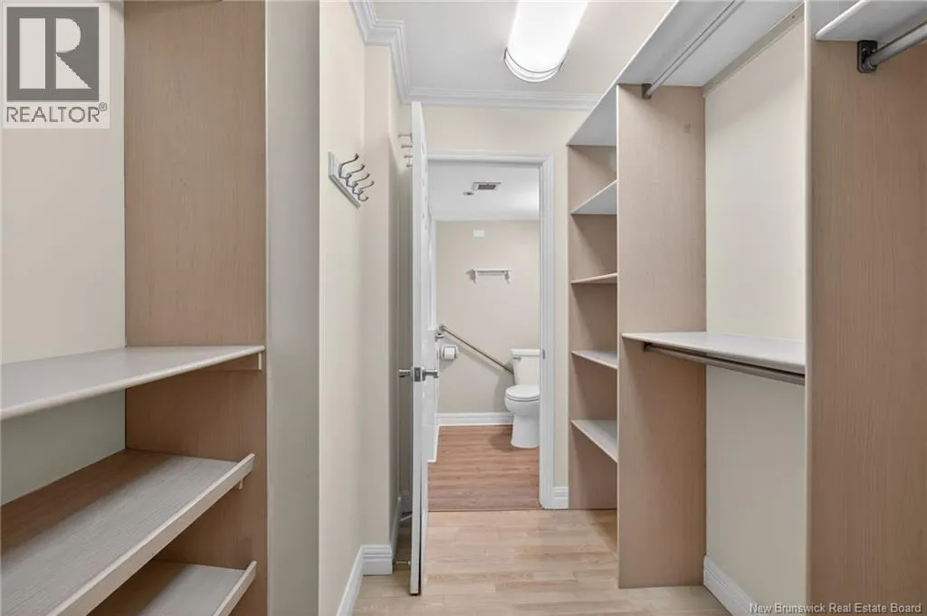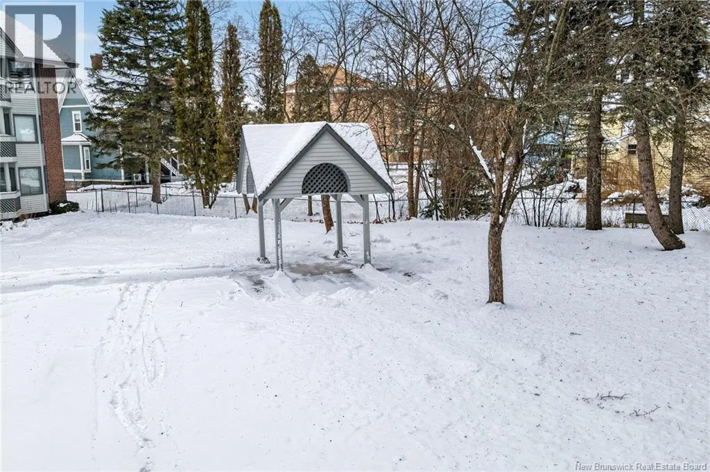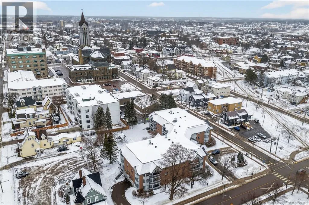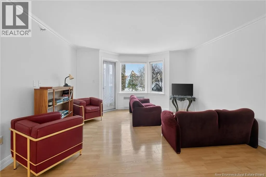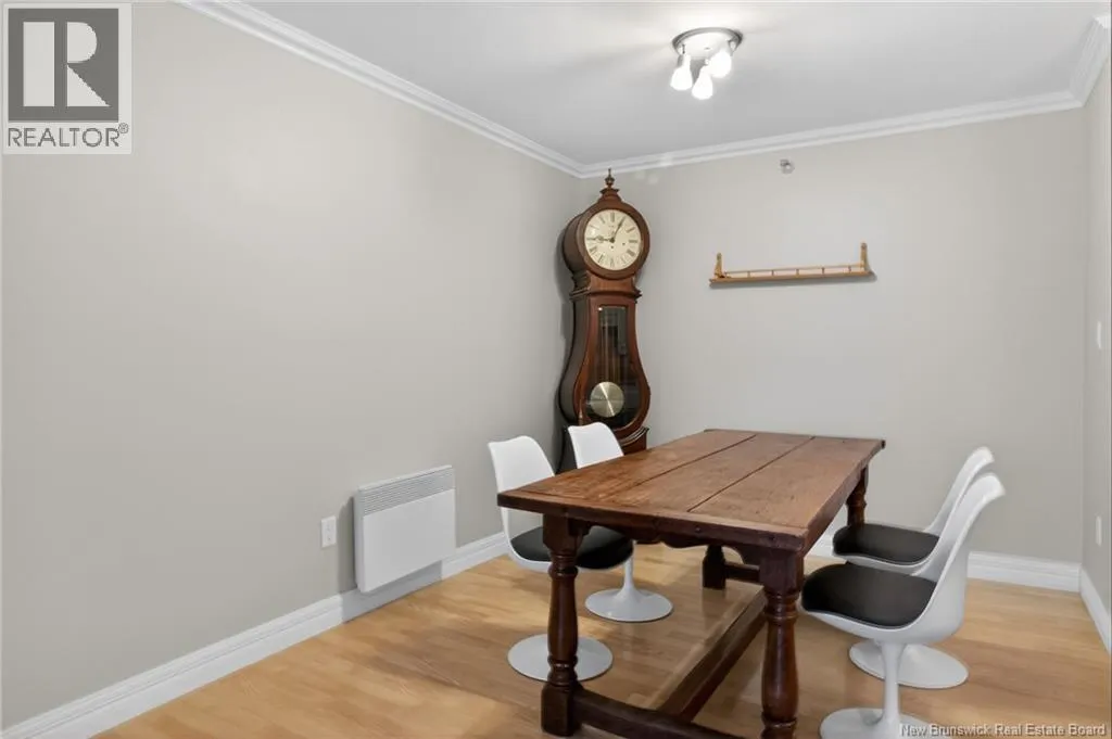 Main Street to Queen Street, located on the corner of Lutz and Queen Discover urban comfort in this charming 2-bedroom condo nestled in Downtown Moncton. Located in a secure and well maintained building, this condo offers a blend of modern amenities and serene surroundings. As you step inside, you're greeted by a beautifully interior featuring crown molding and granite countertops throughout. The spacious living and dining area boasts a bay window, filling the space with natural light and providing a cozy ambiance. For comfort, a mini-split heat pump offers both heating and air conditioning options. The master bedroom includes a convenient walk-in closet with shelving and direct access to the 4-piece bathroom, ensuring privacy and functionality. The second bedroom is generously sized with ample closet space, ideal for guests or a home office. Additional highlights include a dedicated laundry and utility room conveniently located near the bedrooms. Step outside onto the 14'x4' covered deck overlooking a landscaped greenery and a gazebo. With underground parking, a beautifully decorated lobby, and a sprinkler system ensuring safety, this move-in-ready condo provides a perfect blend of comfort, convenience, and style in the heart of Moncton's vibrant downtown. (id:27476)