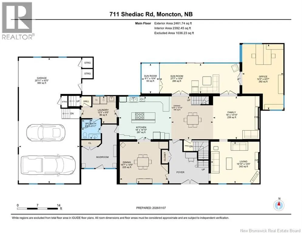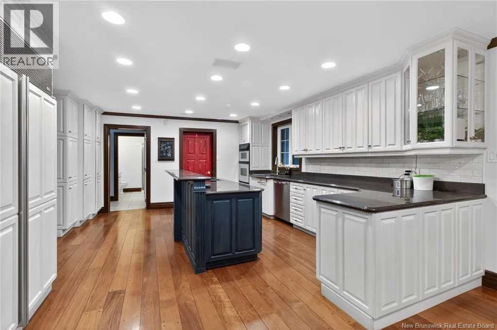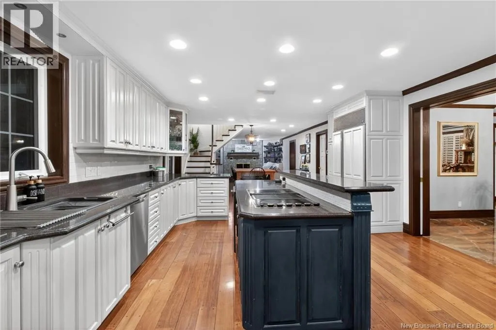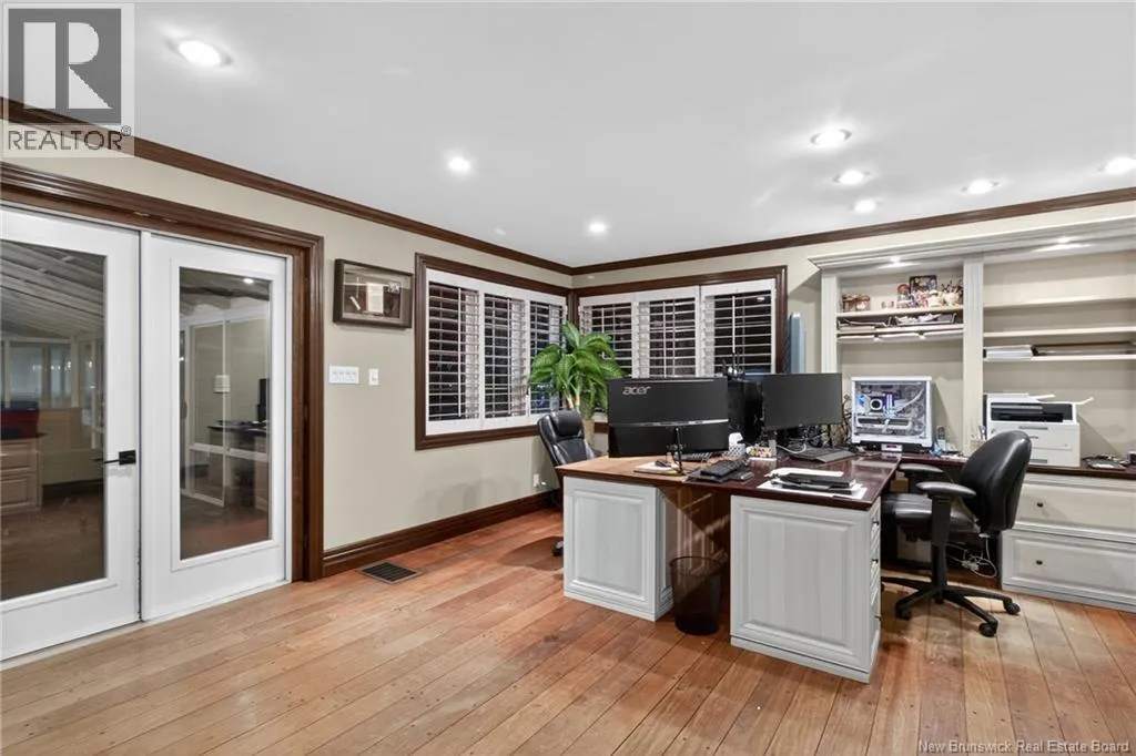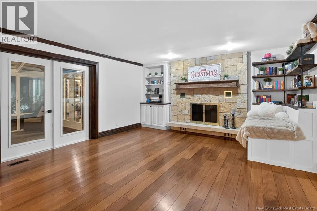 Off Paul Street or Harrisville Blvd Welcome to 711 Shediac Road, one of Monctons premier residences, set on a private and beautifully landscaped 1.38-acre mature lot. This exceptional property offers a rare blend of elegance, space, and resort-style living, highlighted by an in-ground saltwater pool and serene natural surroundings. A grand foyer opens to an elegant living room with travertine fireplace and a formal dining room ideal for entertaining. The gourmet kitchen features granite countertops, a raised breakfast bar, and flows seamlessly into the breakfast nook and family room with striking stone fireplace. The stunning solarium is the true centerpiece of the main level, offering panoramic views of the pool and lush backyard and providing an ideal year-round space for relaxation or entertaining. Also on the main level are a refined home office with custom built-ins, a three-piece bathroom, mudroom, and laundry area. A private staircase leads to a self-contained one-bedroom nanny or guest suite. Two staircases access the upper level, which offers four generous bedrooms and three full baths, including a luxurious primary retreat. The lower level features a family room with a third fireplace, games room, powder room, and storage. Exterior highlights include a triple attached garage, double detached garage, fully fenced backyard, and pond, offering privacy, prestige, and timeless appeal. Don't miss your chance to own this spectacular home, Contact your local REALTOR® for a showing. (id:27476)