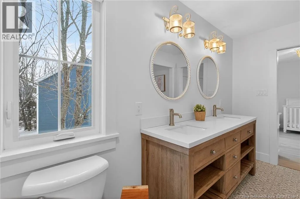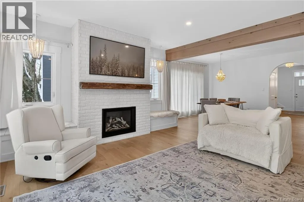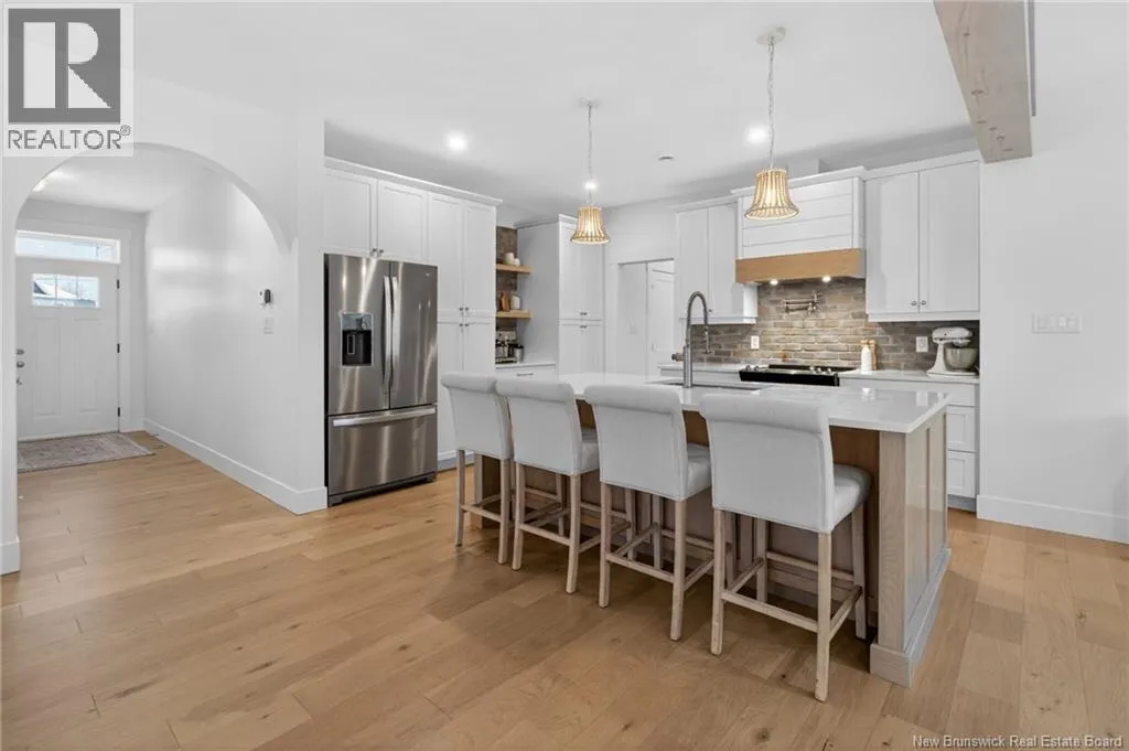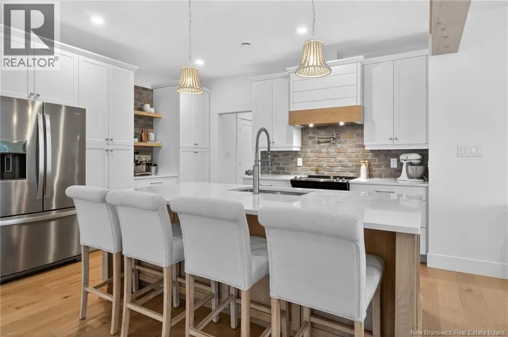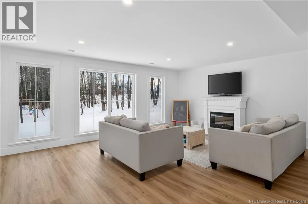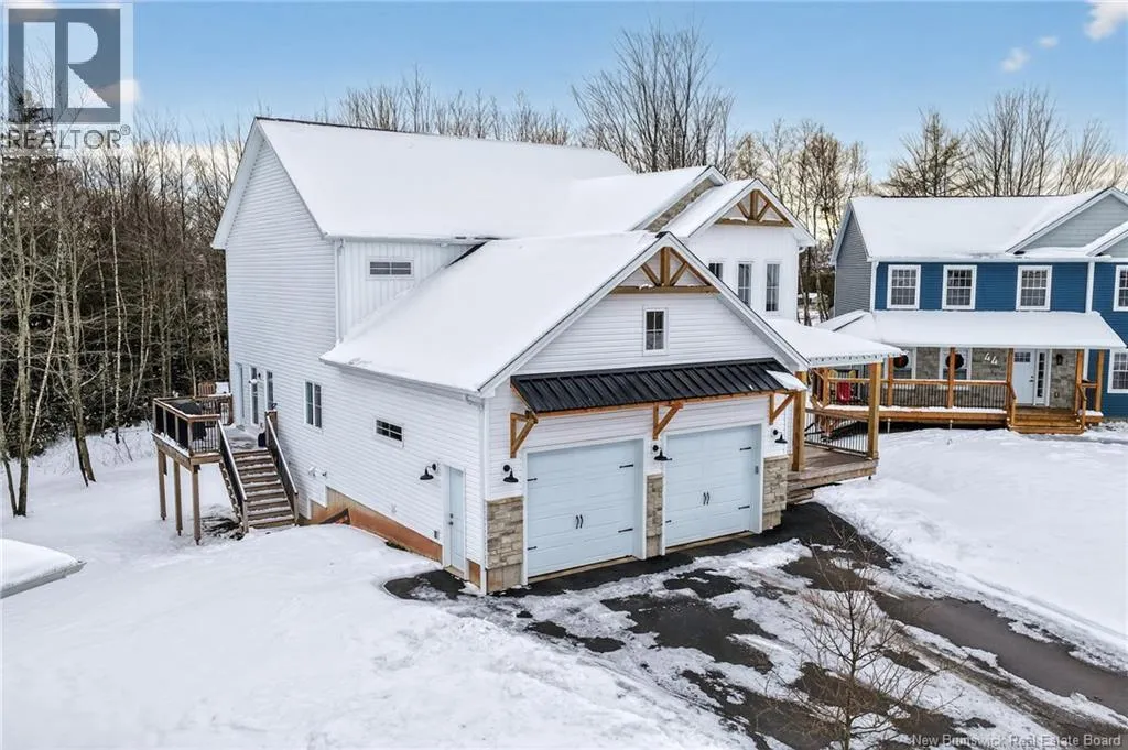 From Mountain Road, turn onto Sunshine Drive. Turn left onto Oak Ridge Drive, then right onto Heros Court. Civic #38. Welcome to 38 Heros Court, this custom home is located on a quiet cul-de-sac in Moncton. Thoughtfully designed with a modern farmhouse influence, the main level invites you in with an open layout centered around a bright, beautifully finished kitchen. Here youll find stainless steel appliances, incredible cabinet space, a large 7-foot island, custom backsplash and coffee bar. The dining area flows into a spacious living room complete with a propane fireplace and large windows that frame the natural landscape outside. A charming sunroom extends your living space and provides the ideal spot to relax with morning coffee. From here, you can step onto the side deck and enjoy peaceful views of the private, tree-lined backyard. A mudroom and a 2-piece powder room complete the main level. Upstairs, the primary bedroom is a private retreat, featuring a luxurious ensuite with double sinks, a soaker tub, and a generous walk-in closet. Two additional bedrooms are connected by a bathroom, while a second-floor laundry room and versatile loft area add both comfort and convenience. The walkout lower level expands the home even further, offering a fourth bedroom, a full bathroom, and a large family room with direct access to a covered concrete patio, reinforced and wired for a future hot tub and pool. The treed backyard provides a quiet, natural setting perfect for outdoor enjoyment. Come experience all that 38 Heros Court has to offer! (id:27476)