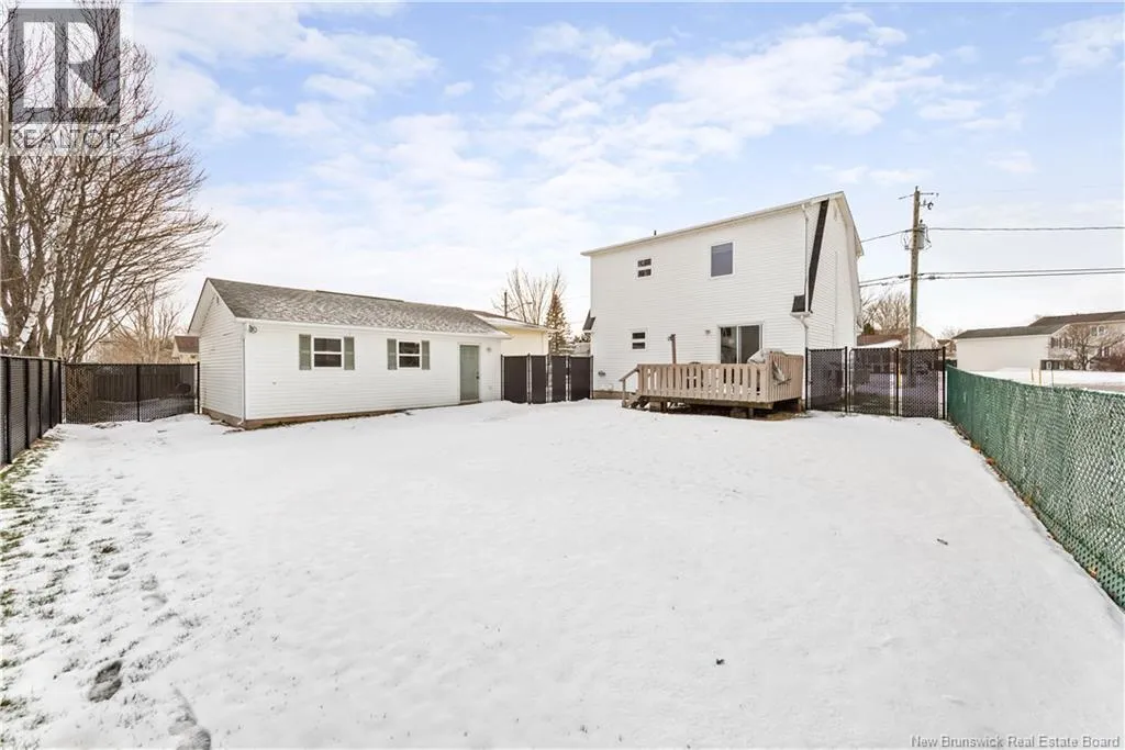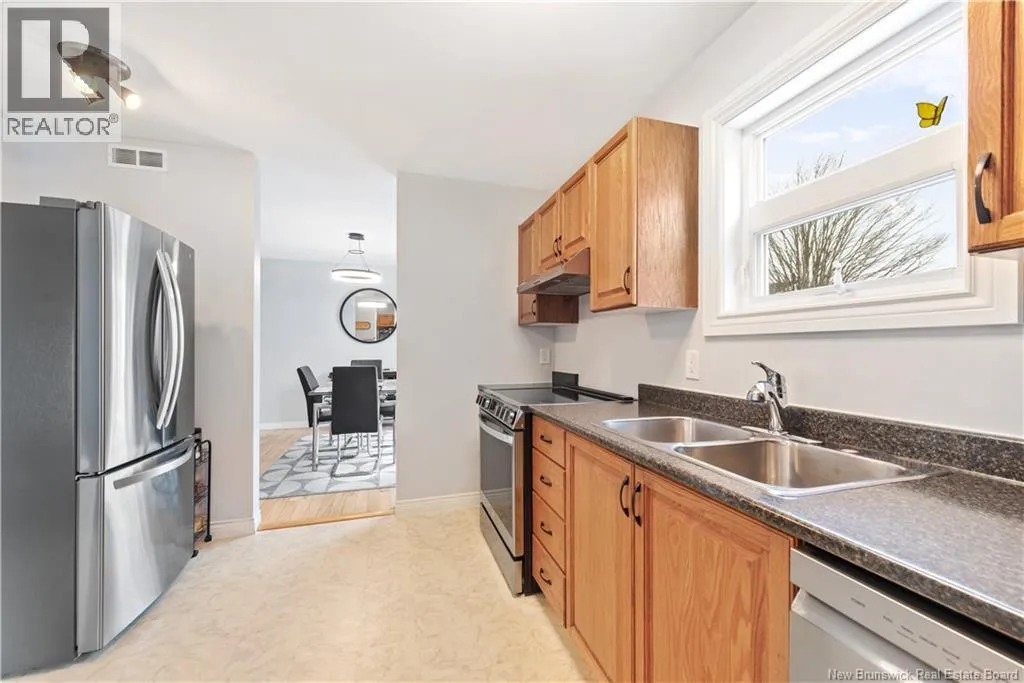 Bridlewood runs off Evergreen or Shannon Dr Immaculate and well-maintained two-storey home with a large detached garage, located in the sought-after North Moncton area. The main floor offers a bright living room with hardwood floors, a kitchen with updated appliances, a separate dining room, also with hardwood flooring and patio door leading to the back deck, and a welcoming front foyer. The second floor features three bedrooms (all with hardwood flooring) and a nicely sized full bathroom. The lower level includes a comfortable family room, a fourth (non-conforming) bedroom, a convenient two-piece bath, and a laundry area. Recent updates include three Daikin mini-split heat pumps installed in 2024, fresh paint throughout, and updated light fixtures. Outside, enjoy an extra-large paved driveway, a 20 x 26 ft detached garage, ideal for vehicles, storage, or a workshop, a lovely fenced backyard (majority of fence new in 2025), and a front porch finished with low-maintenance composite decking. Within walking distance to Evergreen Park School and close to shopping and amenities. Fridge, stove, dishwasher, washer, and dryer included. (Appliances are new within 2 years) This is a wonderful home in a fantastic neighborhood. *Quick closing available. (id:27476)
